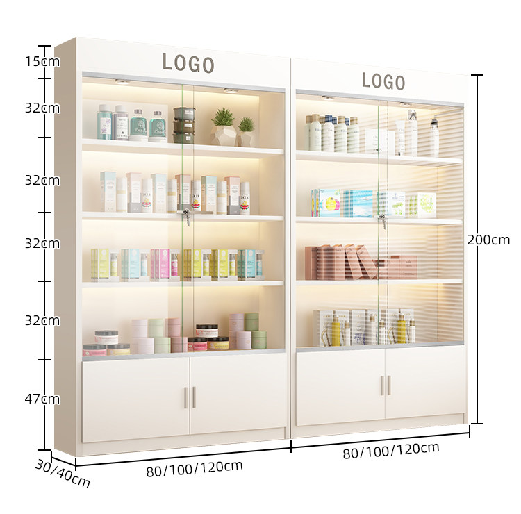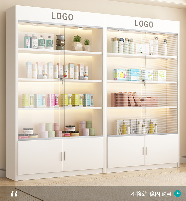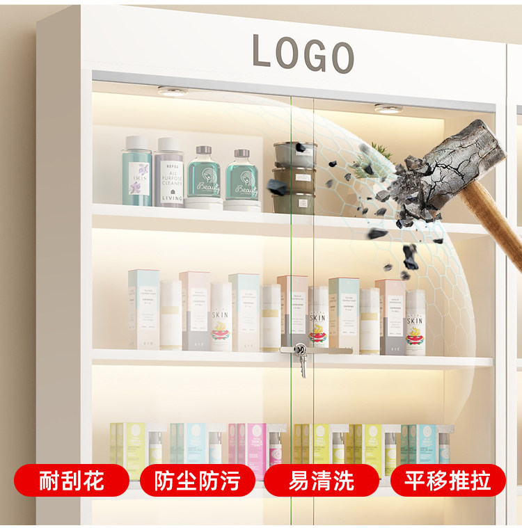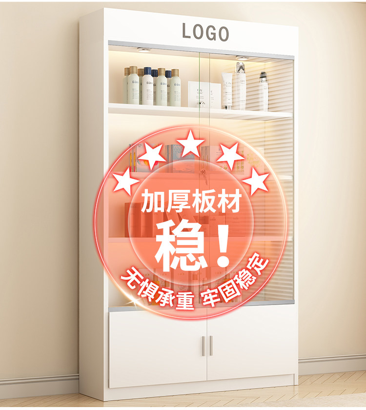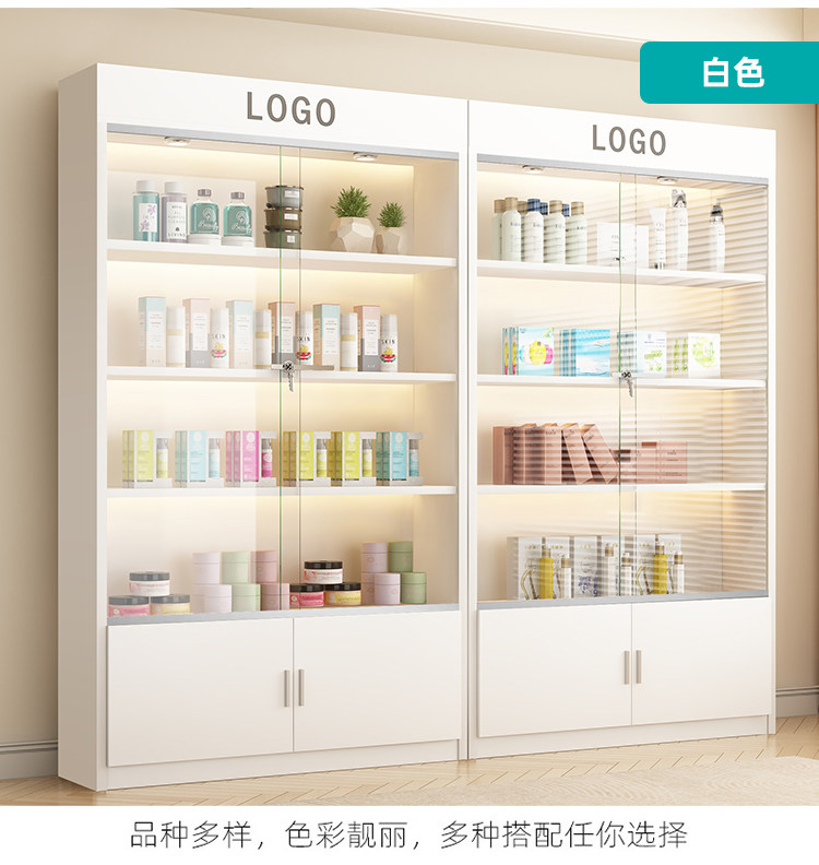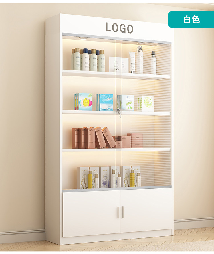 Vitrina para manicura y maquillaje, estante de exhibición para cosméticos, puerta de vidrio, estante de almacenamiento multicapa, vitrina para salón de belleza
