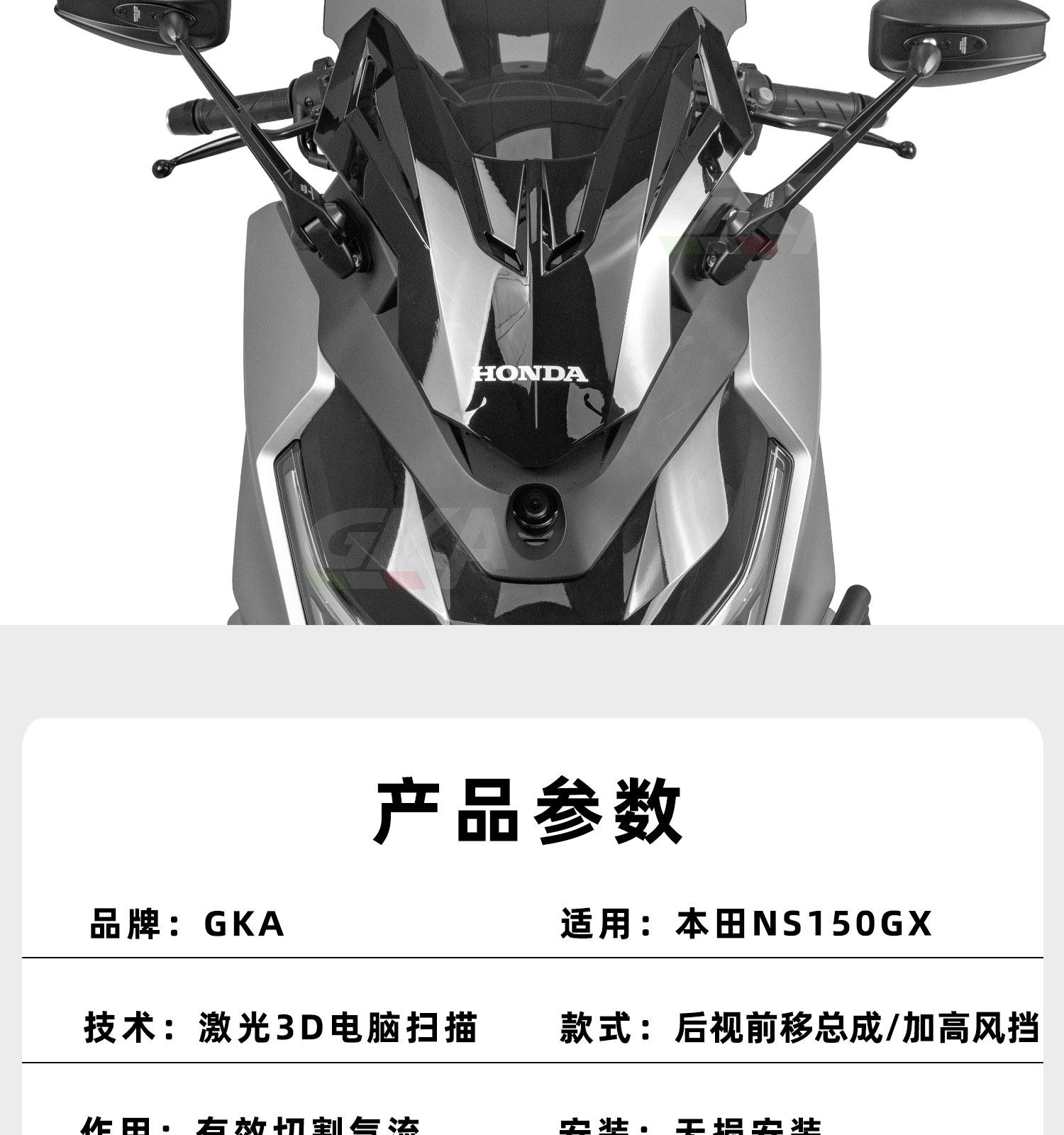 GKA подходит для Honda NS150GX, модифицированного зеркала заднего вида в передней части и усиленного лобового стекла.