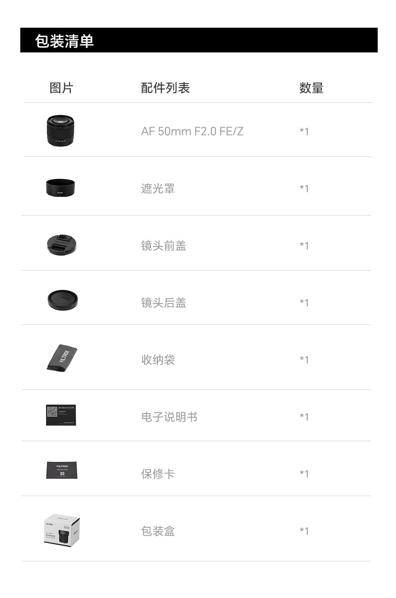 唯卓仕AF 50mm F2.0全画幅定焦镜头适用E/Z卡口微单相机自动对焦