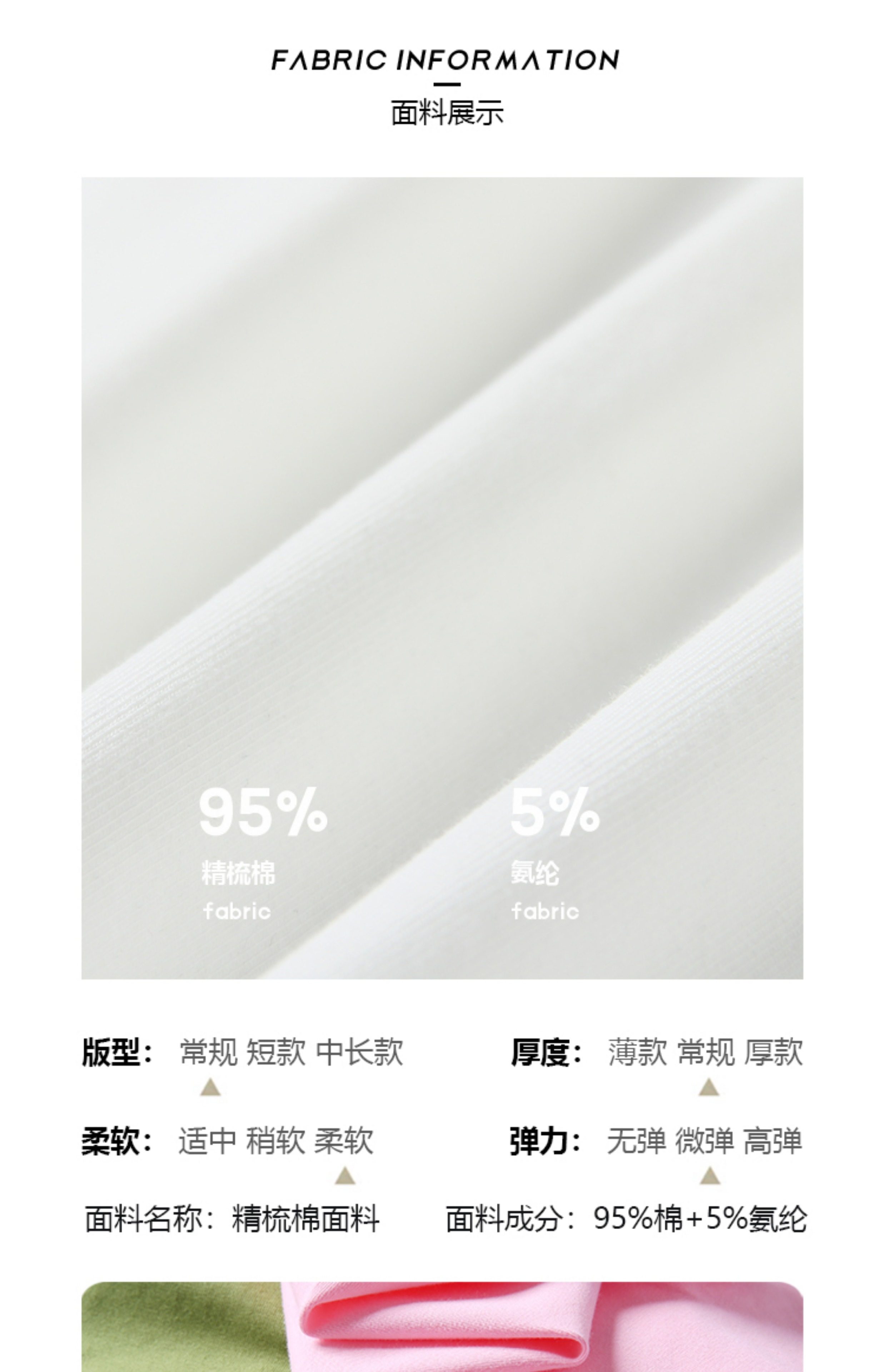 材质成分 棉95% 聚氨酯弹性纤维(氨纶)5%