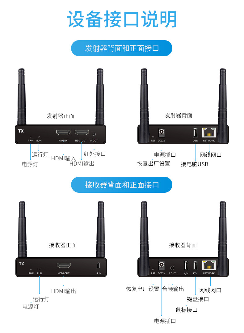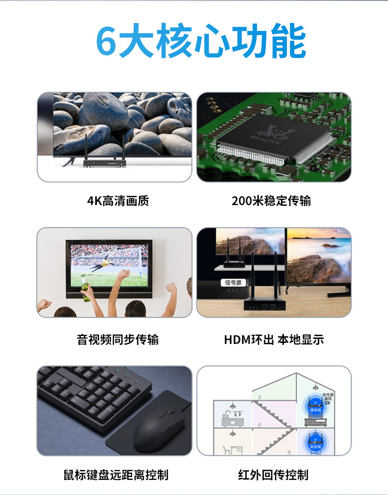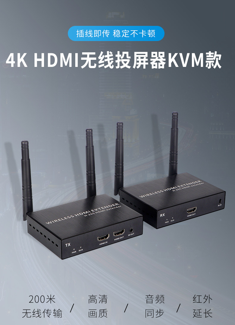 Proyector de pantalla inalámbrico HDMI sincronización de audio y vídeo KVM extensor 4K transmisor de 200 metros control de ratón y teclado