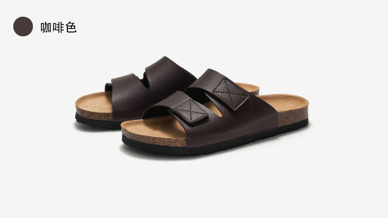 Paul's New Spring and Summer Men's Cork Slippers, Korean Style Men's Sandals, Velcro Birkenstock Beach Shoes