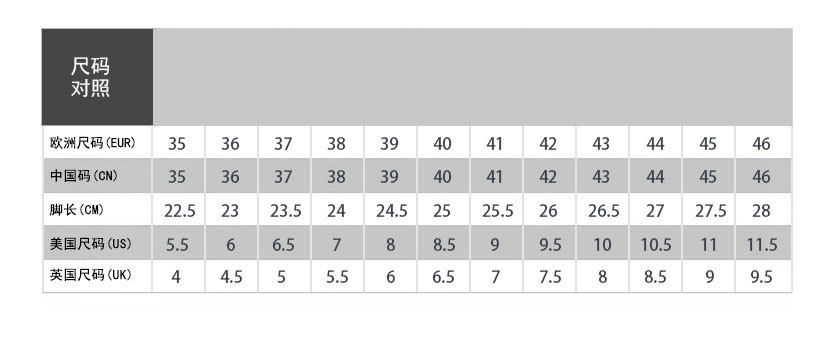 China (cm) 36 - 37 38 - 39 40 - 42 43 - 44 45 - 47