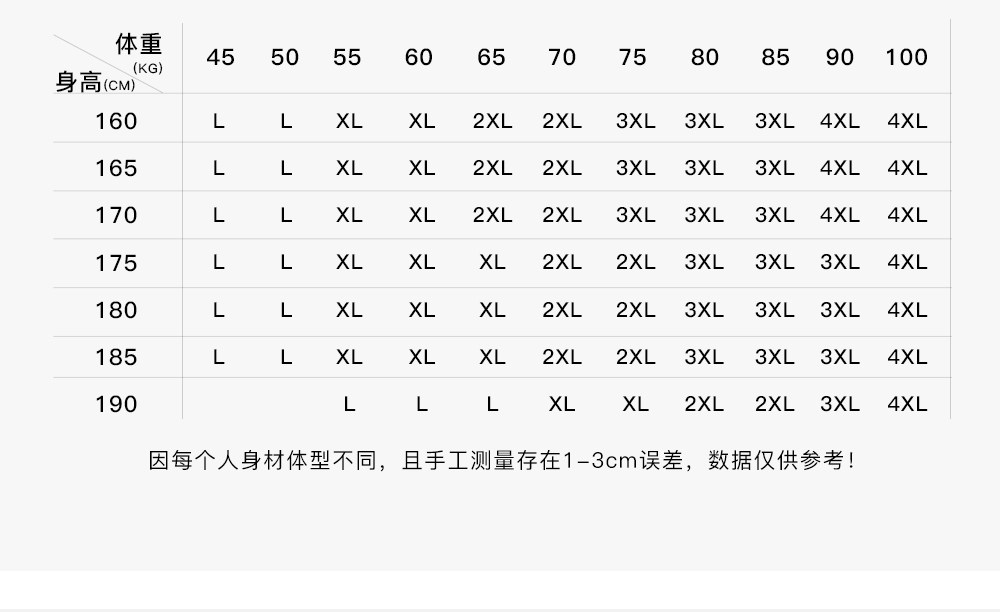 China (cm) 165 / 88-90 170 / 96-98 175 / 108-110 180 / 118-122 185 / 126-130