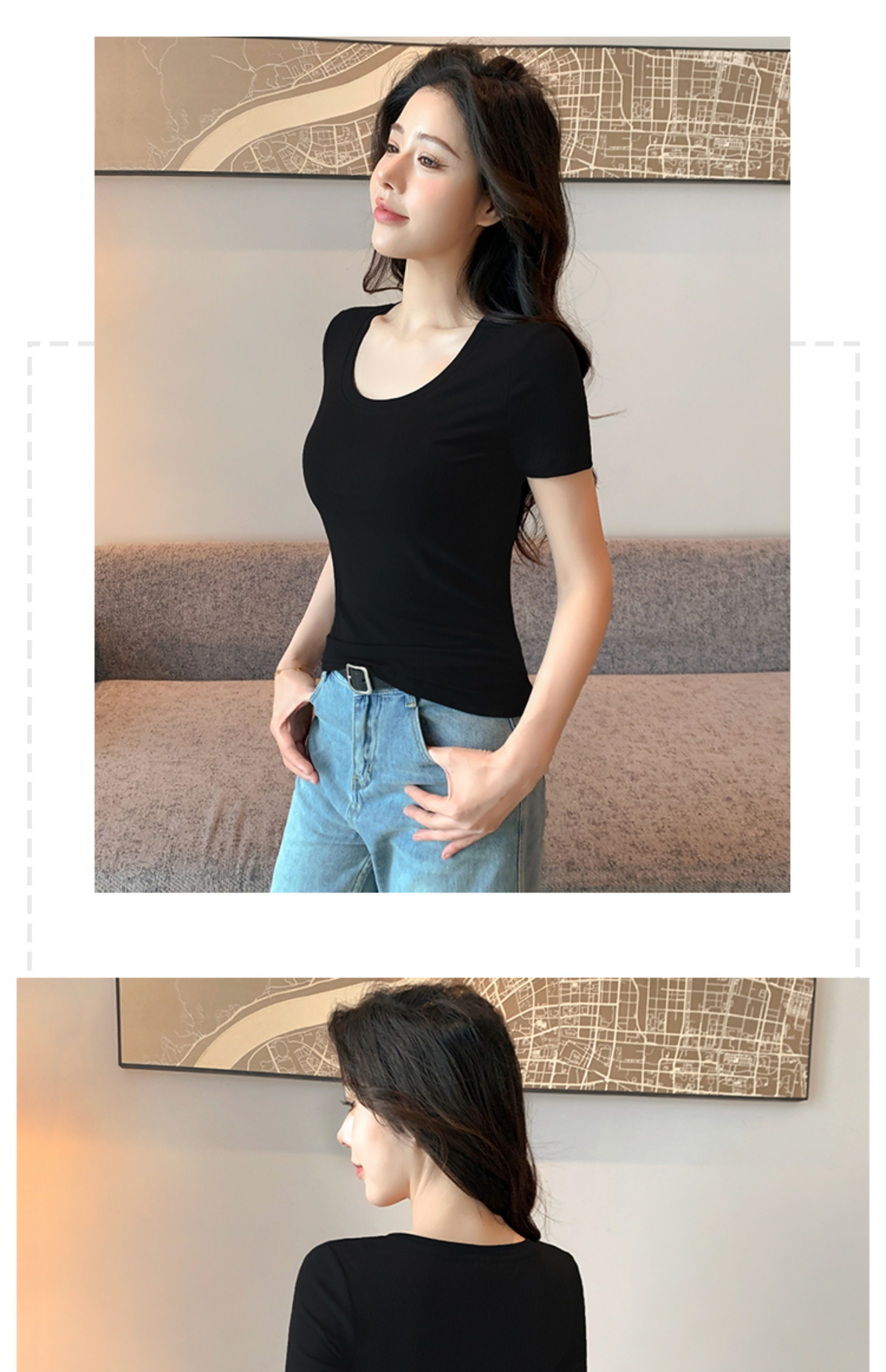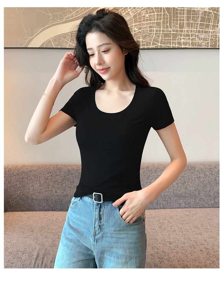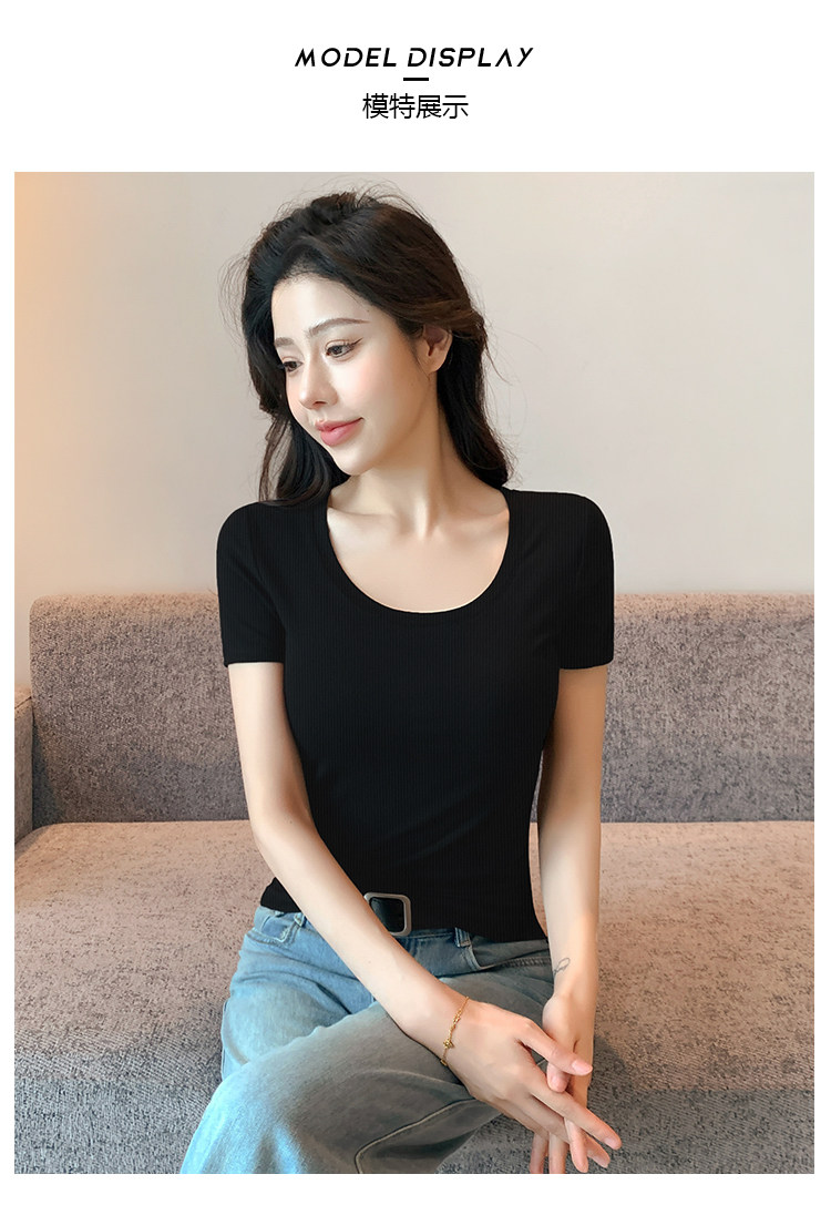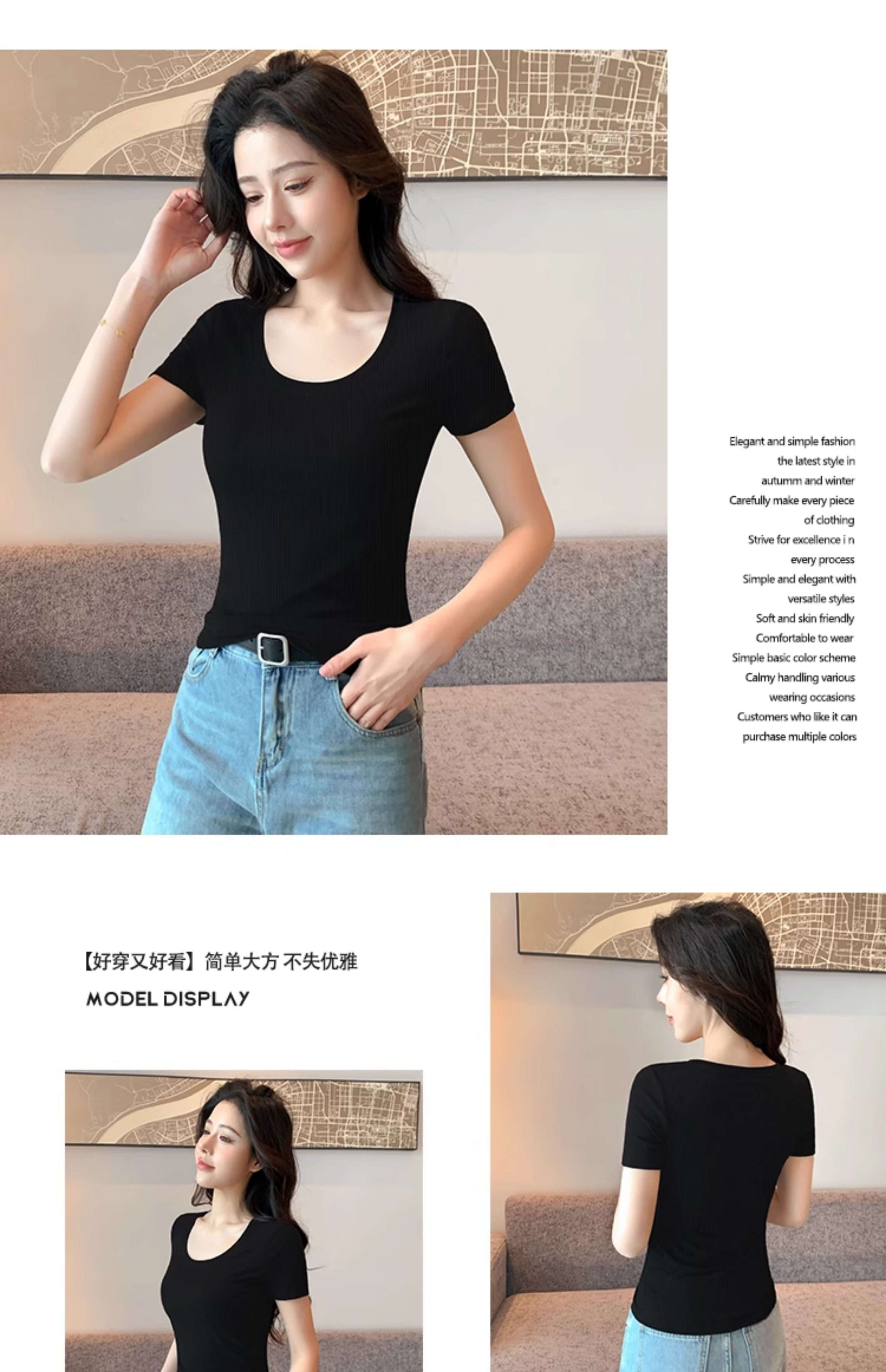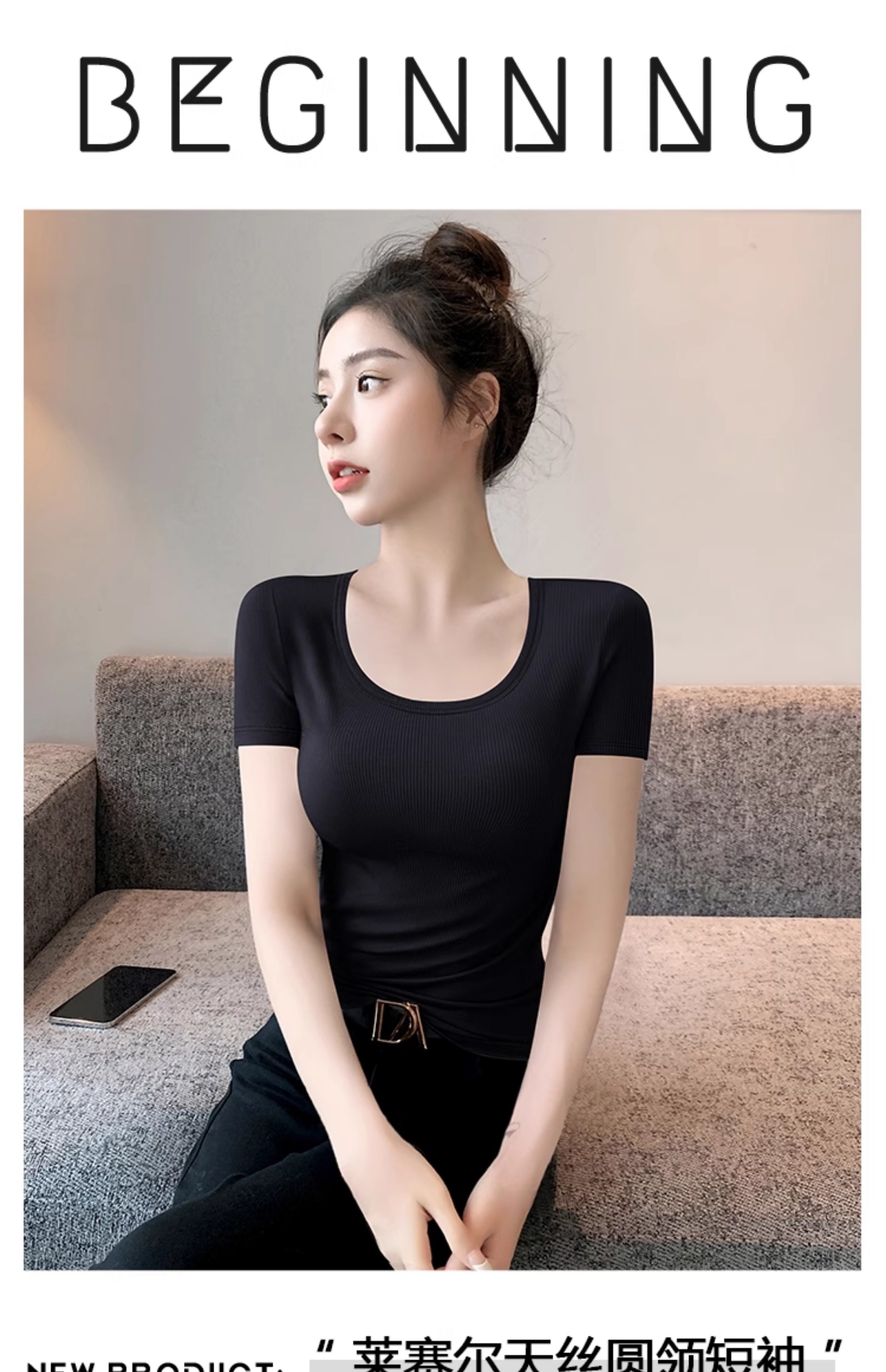 莱赛尔圆领短袖t恤女2026新款夏季修身黑色正肩体恤紧身天丝上衣
