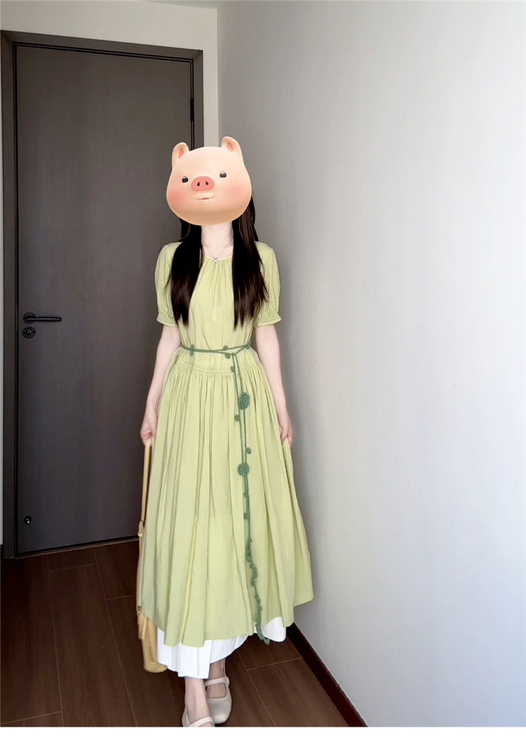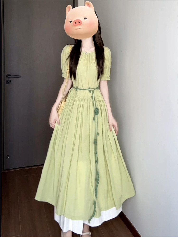 颜色分类 【绿色】森系绿色裙子/教资考试/夏日通勤/超好看独特漂亮/简单大方得体/小众不撞款/收腰/微胖/短袖连衣裙/叠穿长裙/气质高级感/显瘦百搭