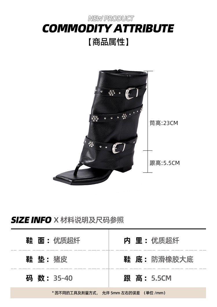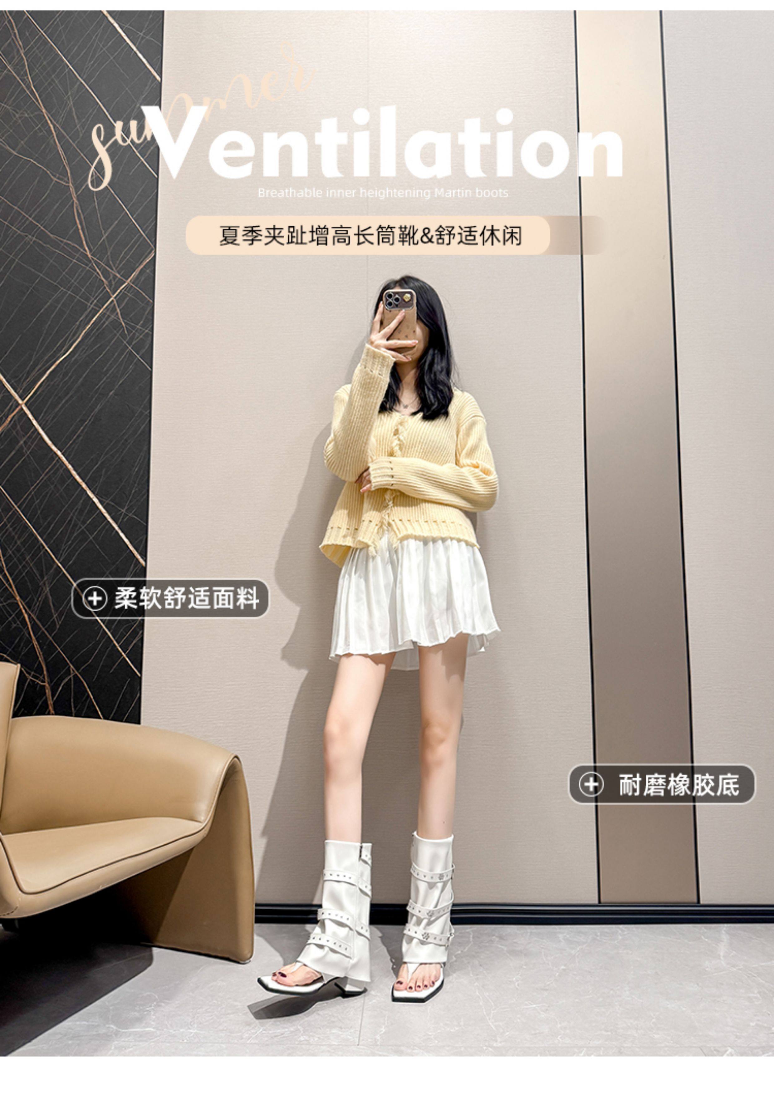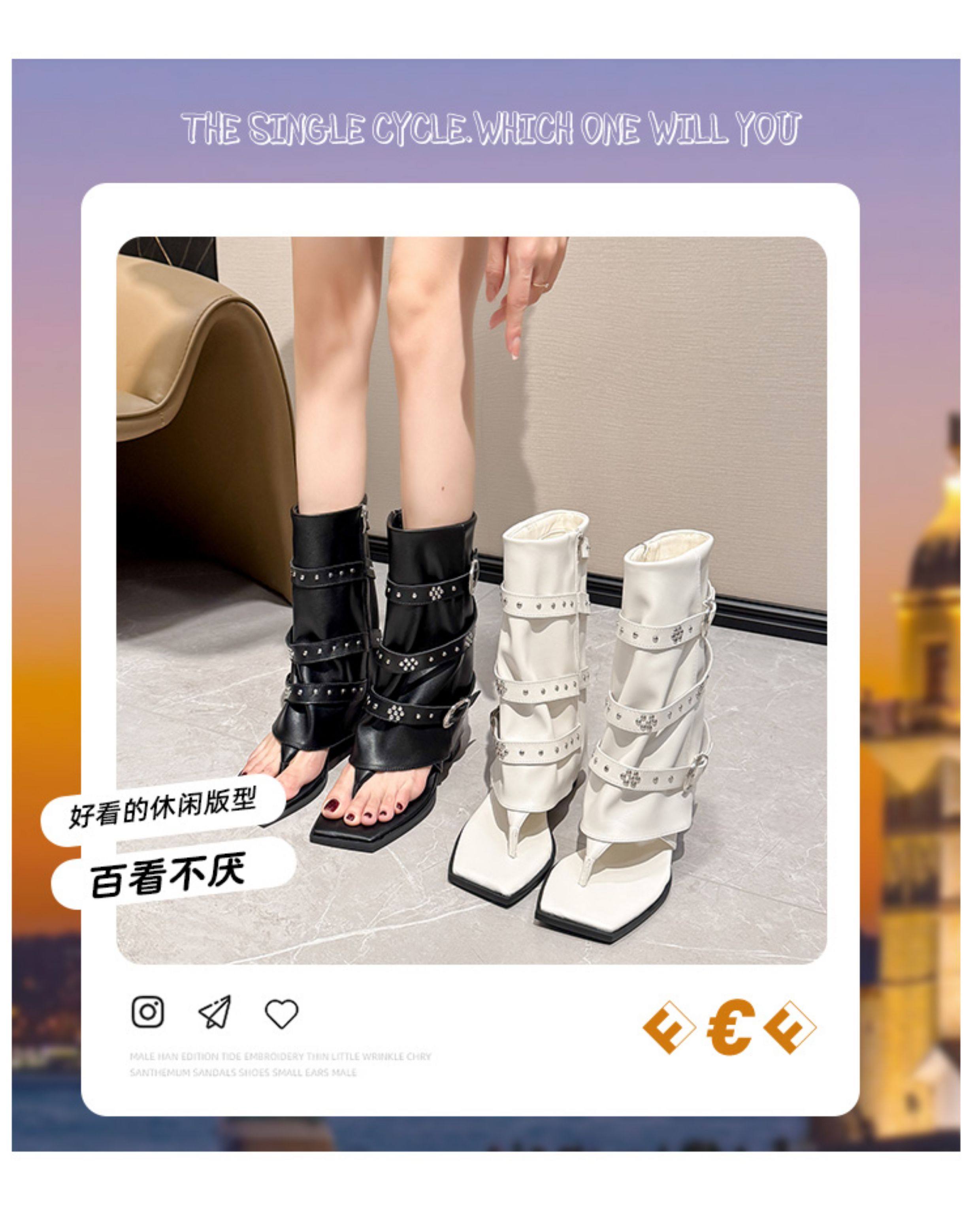 朋克风白色夹趾人字凉靴女夏季新款粗跟辣妹裤管靴新疆牛仔靴凉鞋