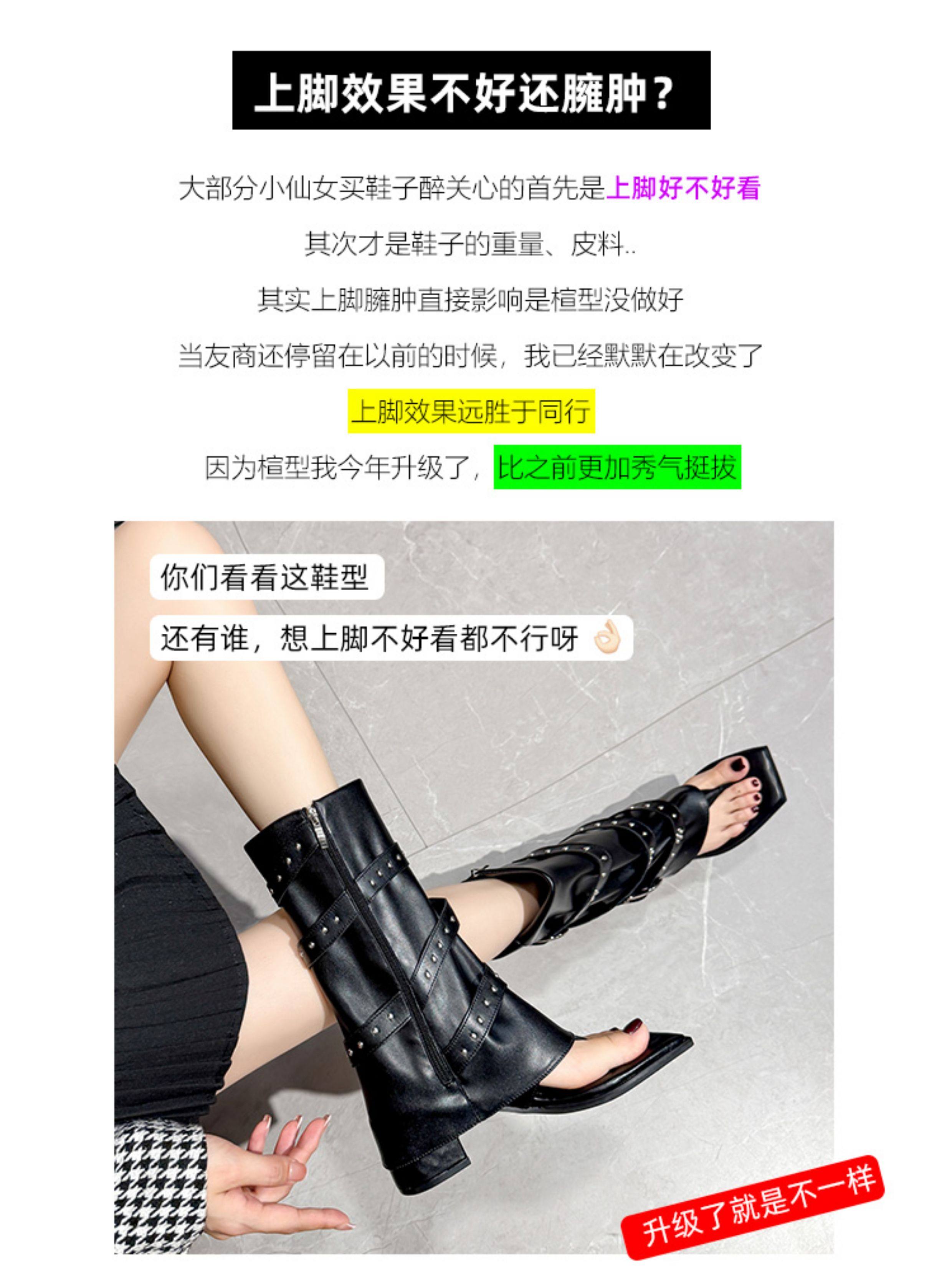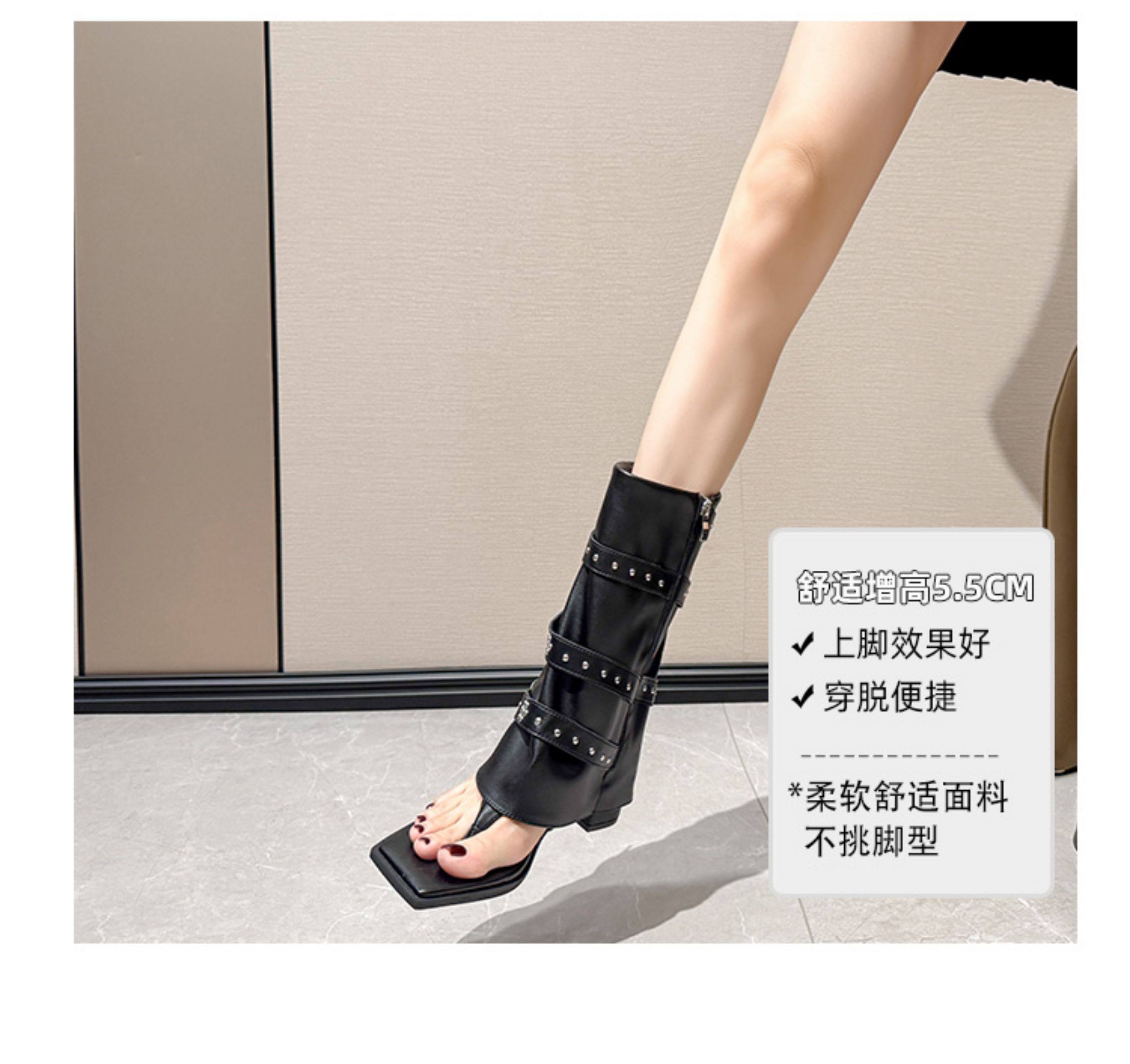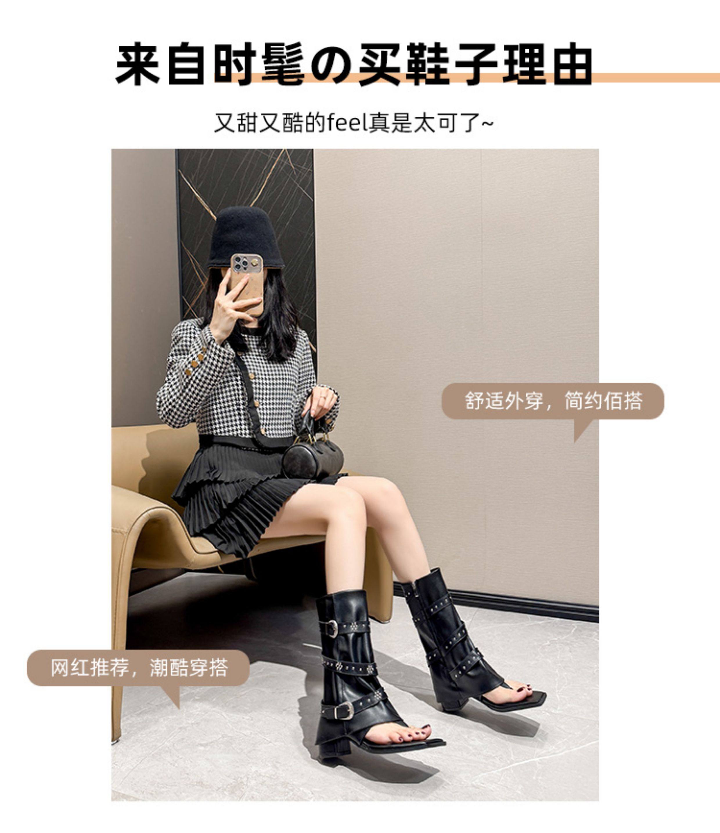 朋克风白色夹趾人字凉靴女夏季新款粗跟辣妹裤管靴新疆牛仔靴凉鞋