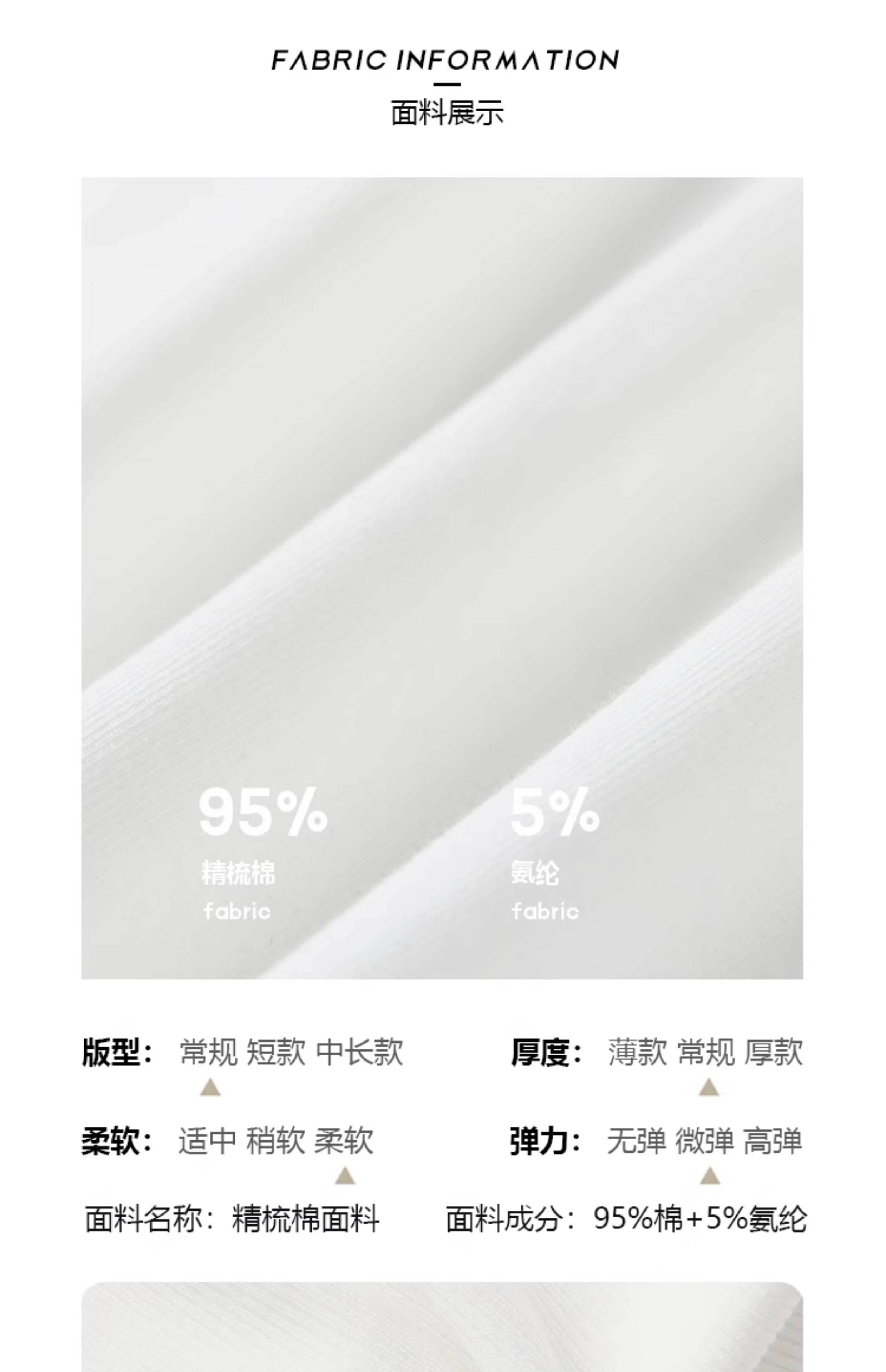 材质成分 棉95% 聚氨酯弹性纤维(氨纶)5%