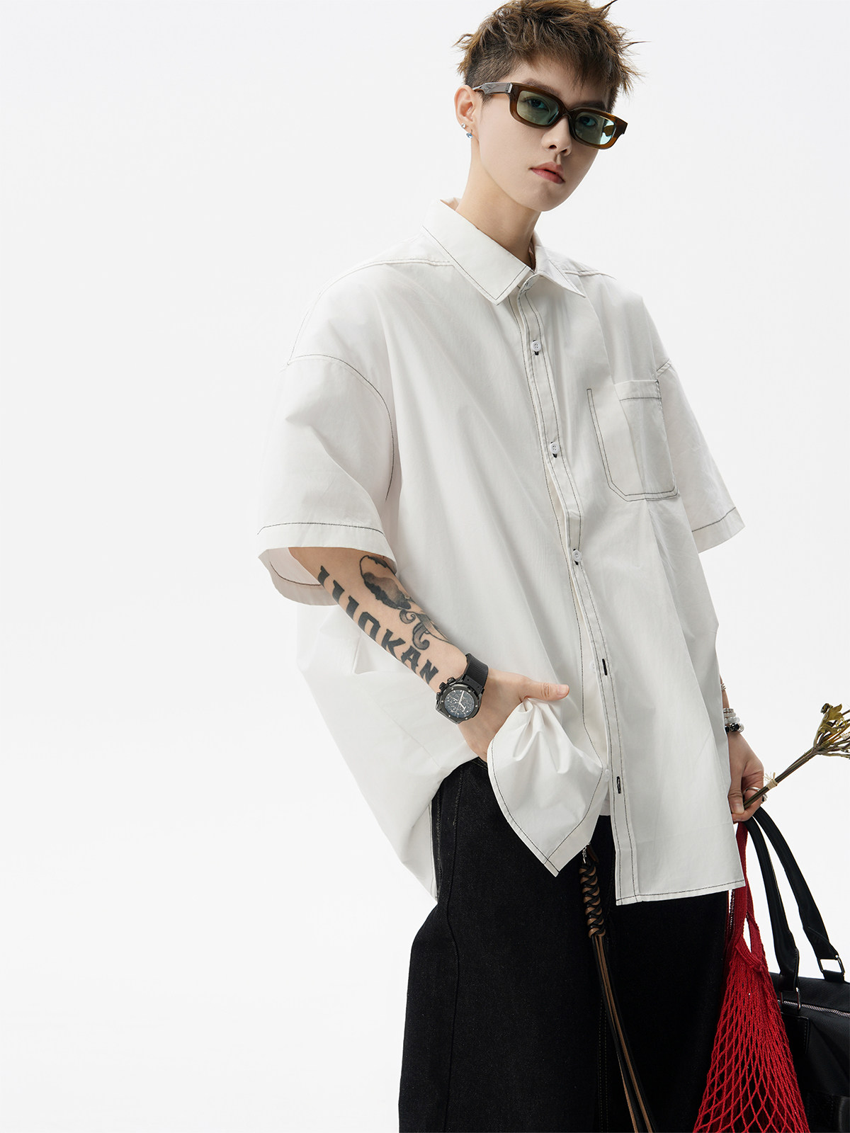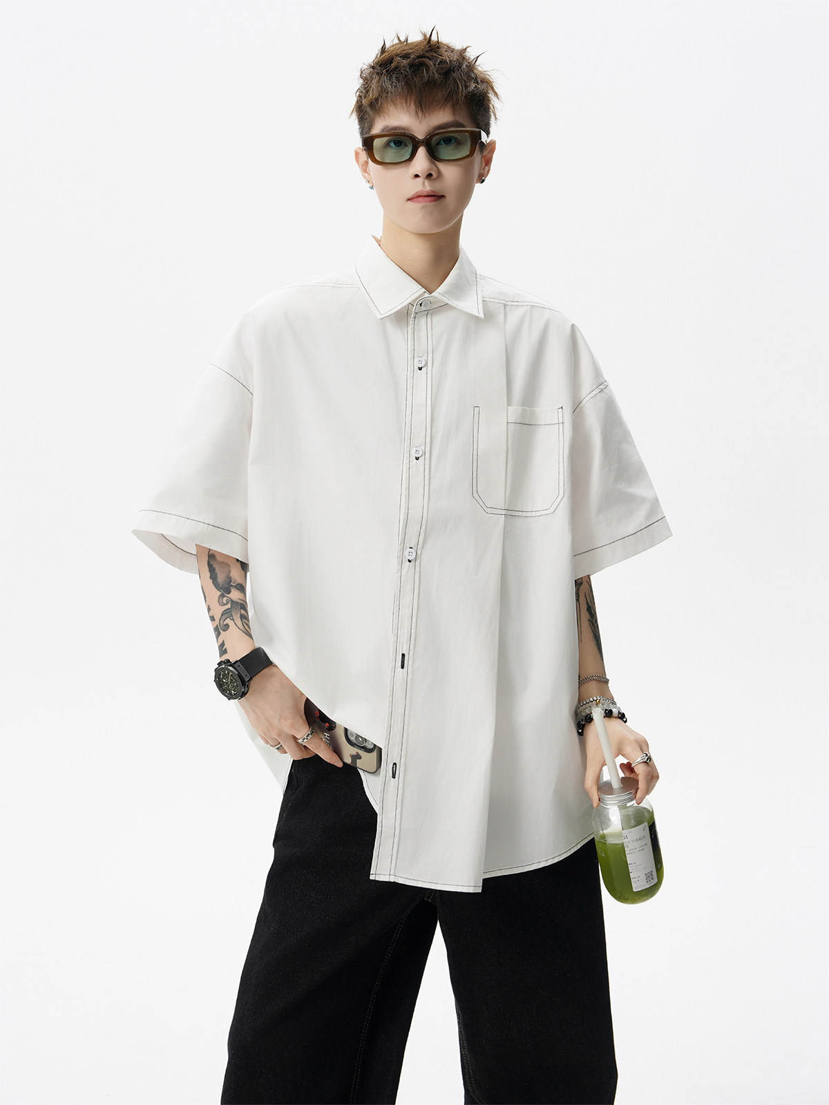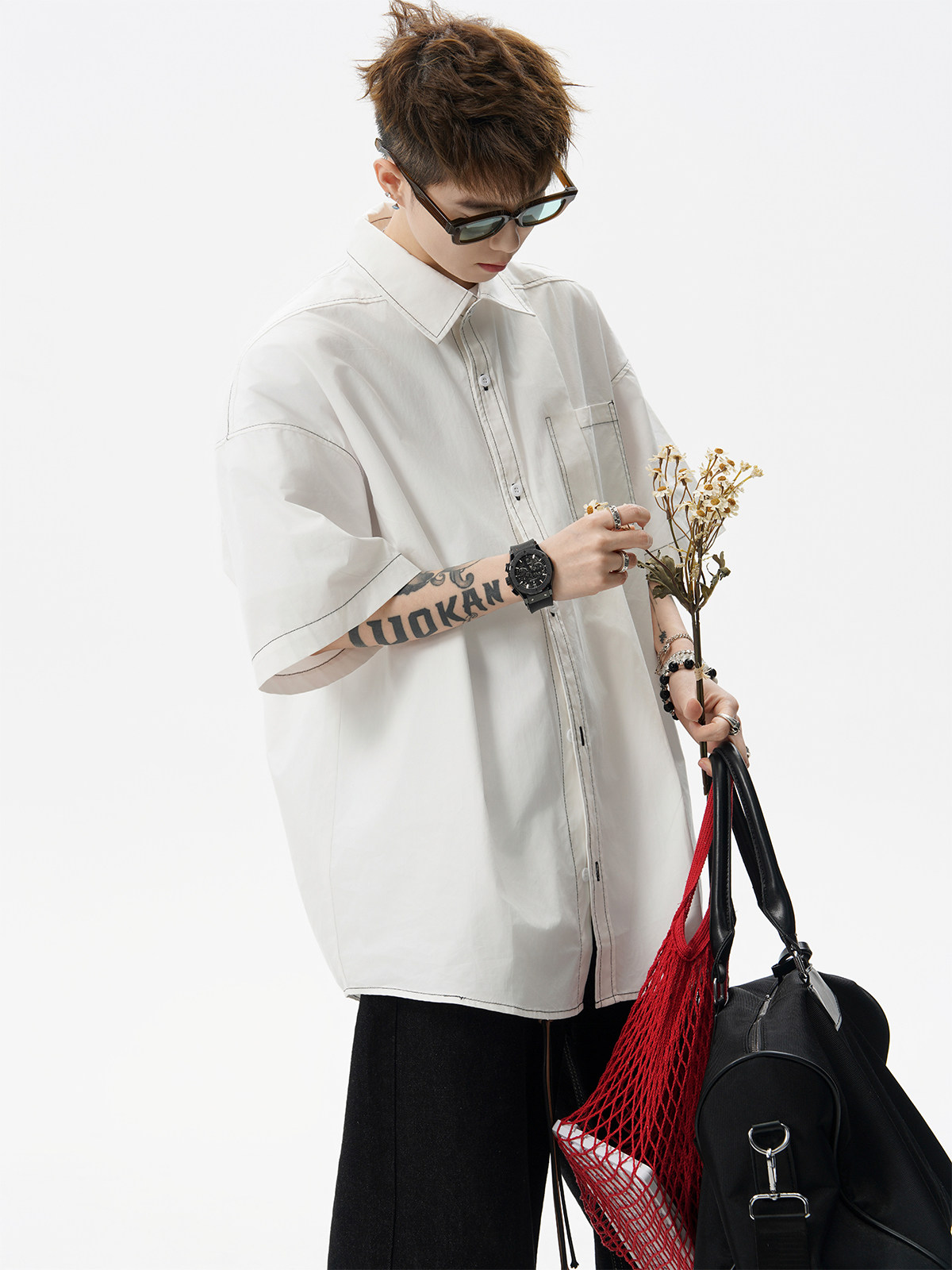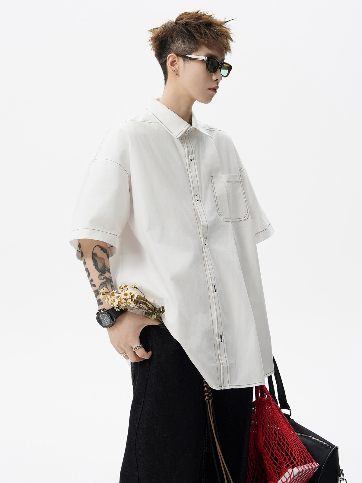 Camisa blanca japonesa cleanfit para hombre, marca de moda de verano para adolescentes, tops informales, chaqueta de camisa de diseño cosido
