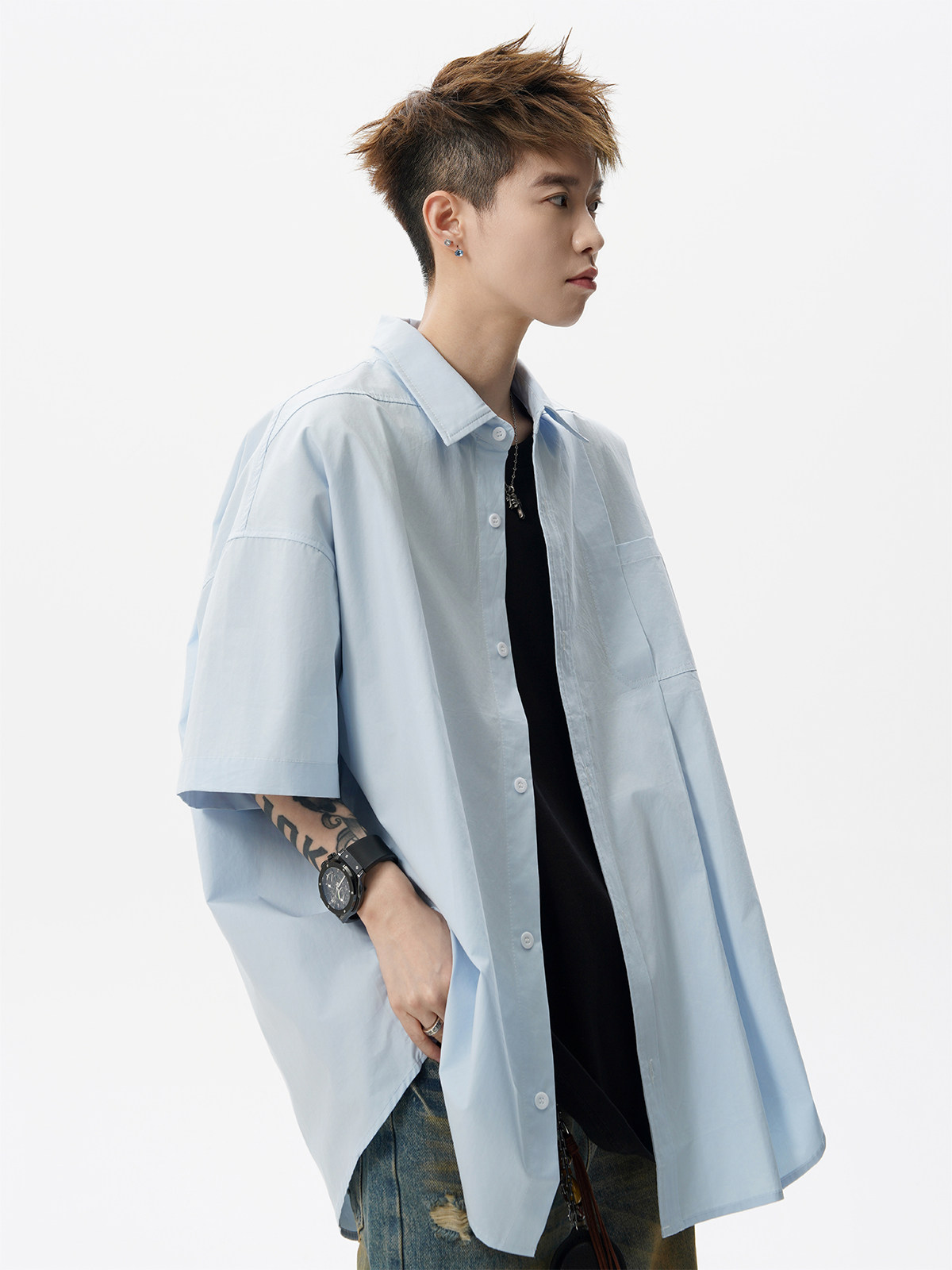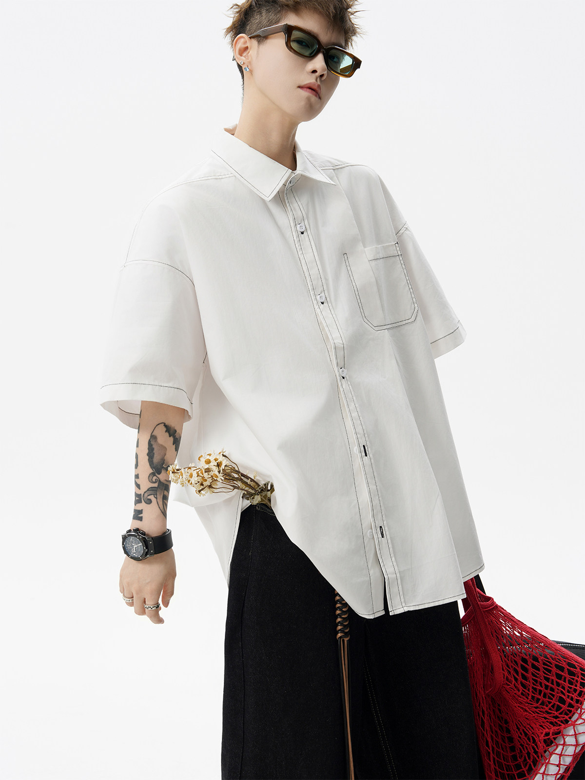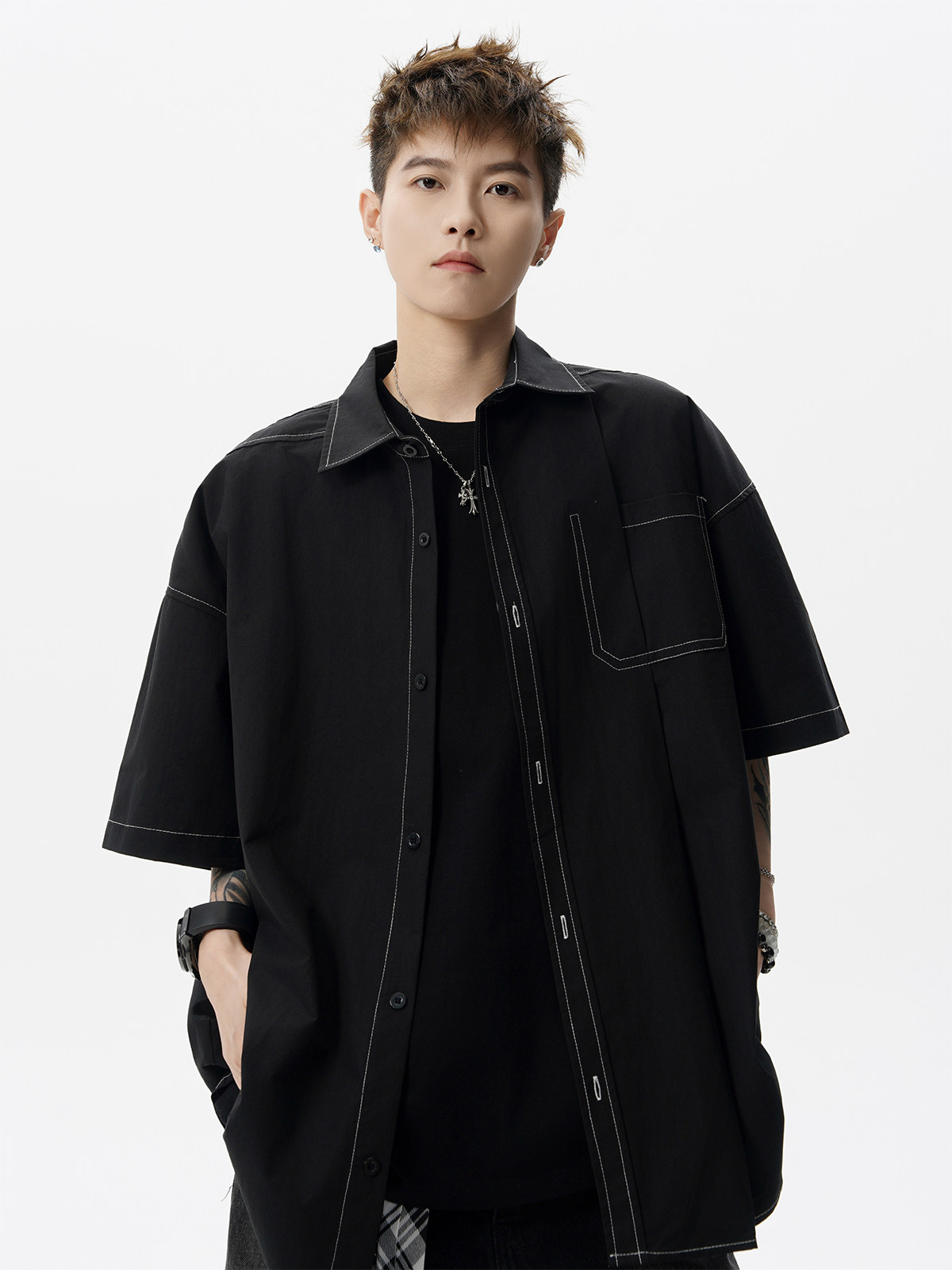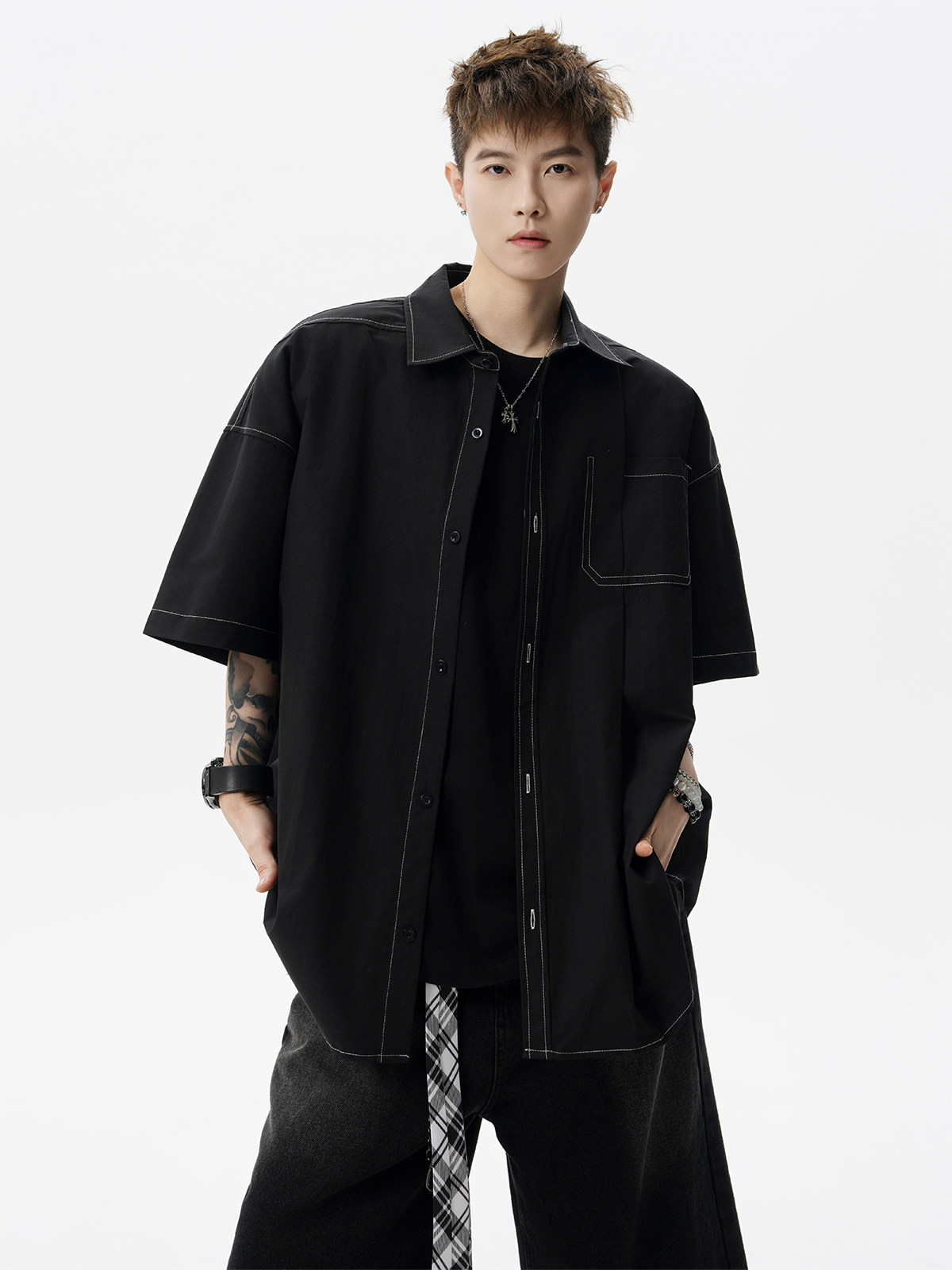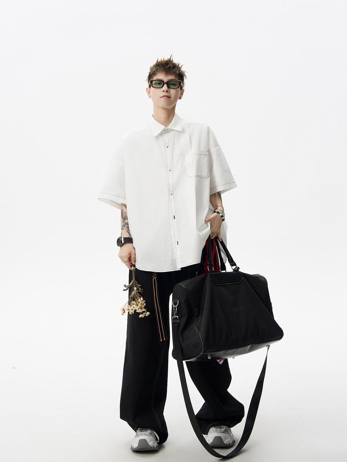 Camisa blanca japonesa cleanfit para hombre, marca de moda de verano para adolescentes, tops informales, chaqueta de camisa de diseño cosido