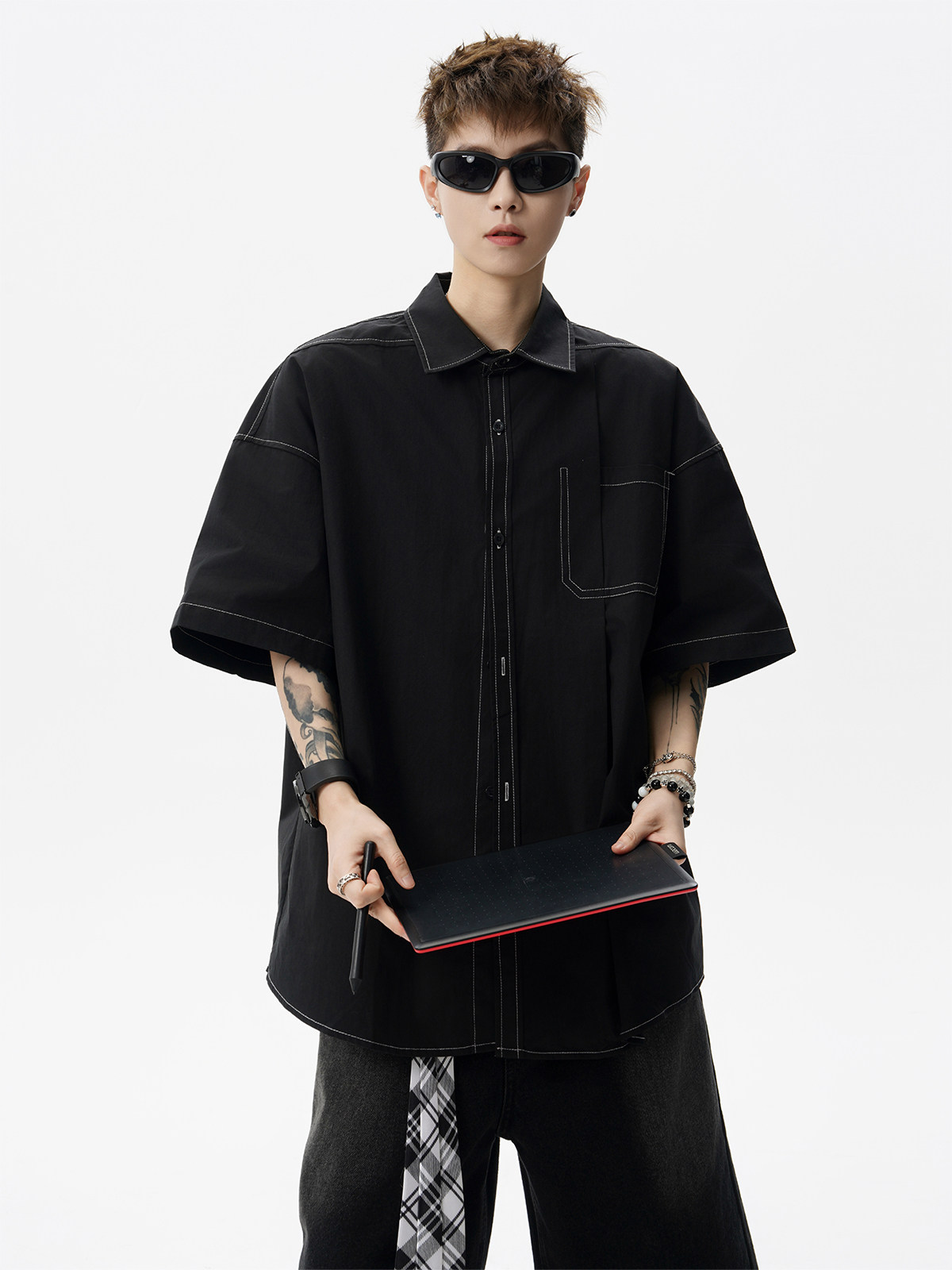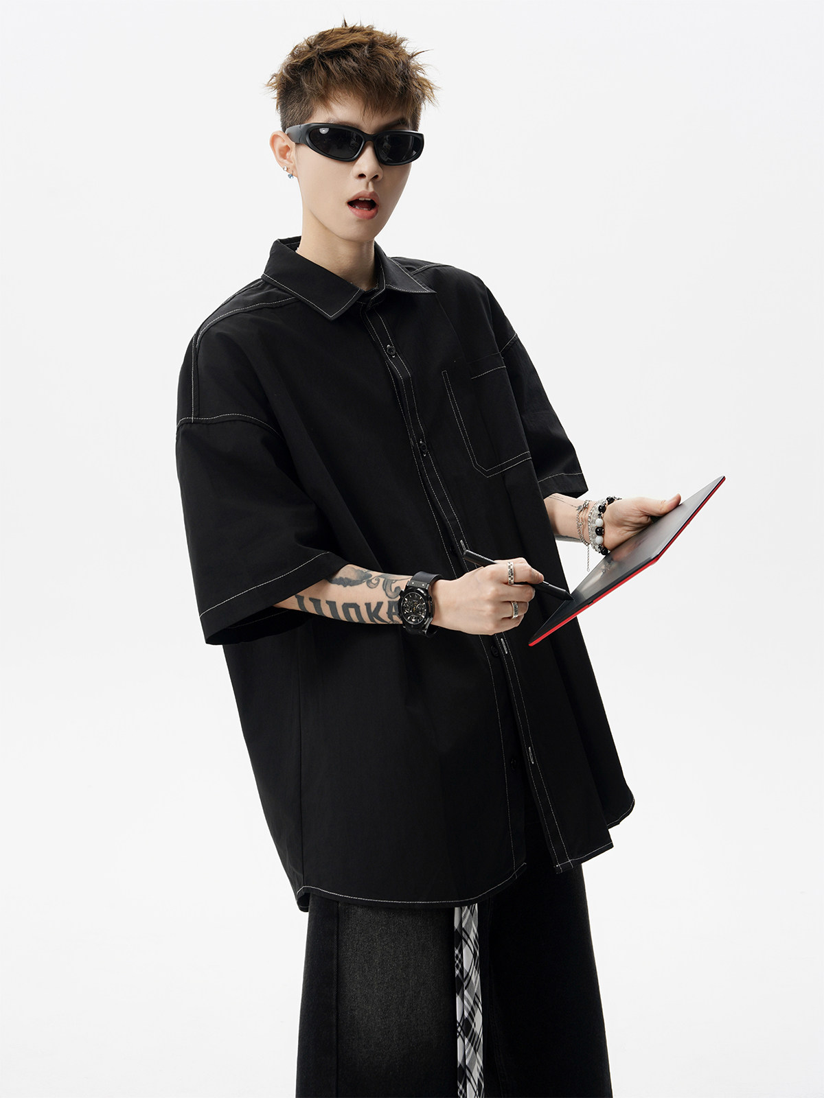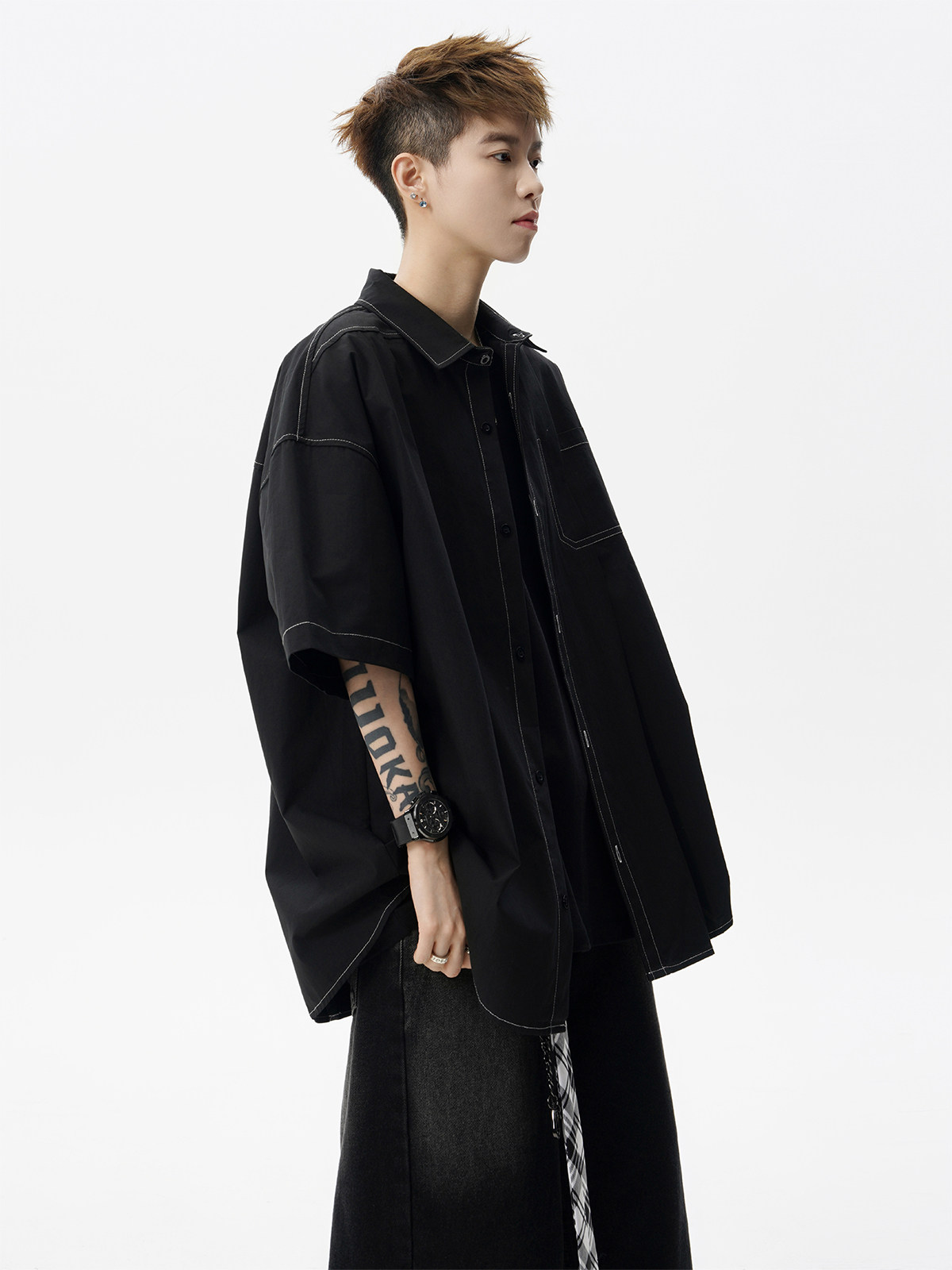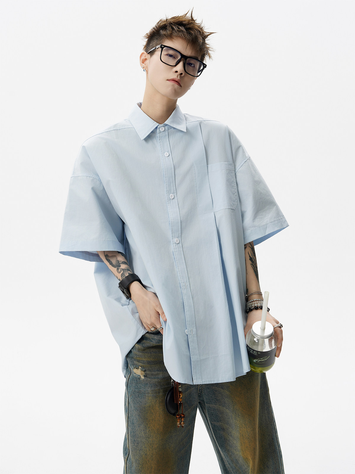 Camisa blanca japonesa cleanfit para hombre, marca de moda de verano para adolescentes, tops informales, chaqueta de camisa de diseño cosido