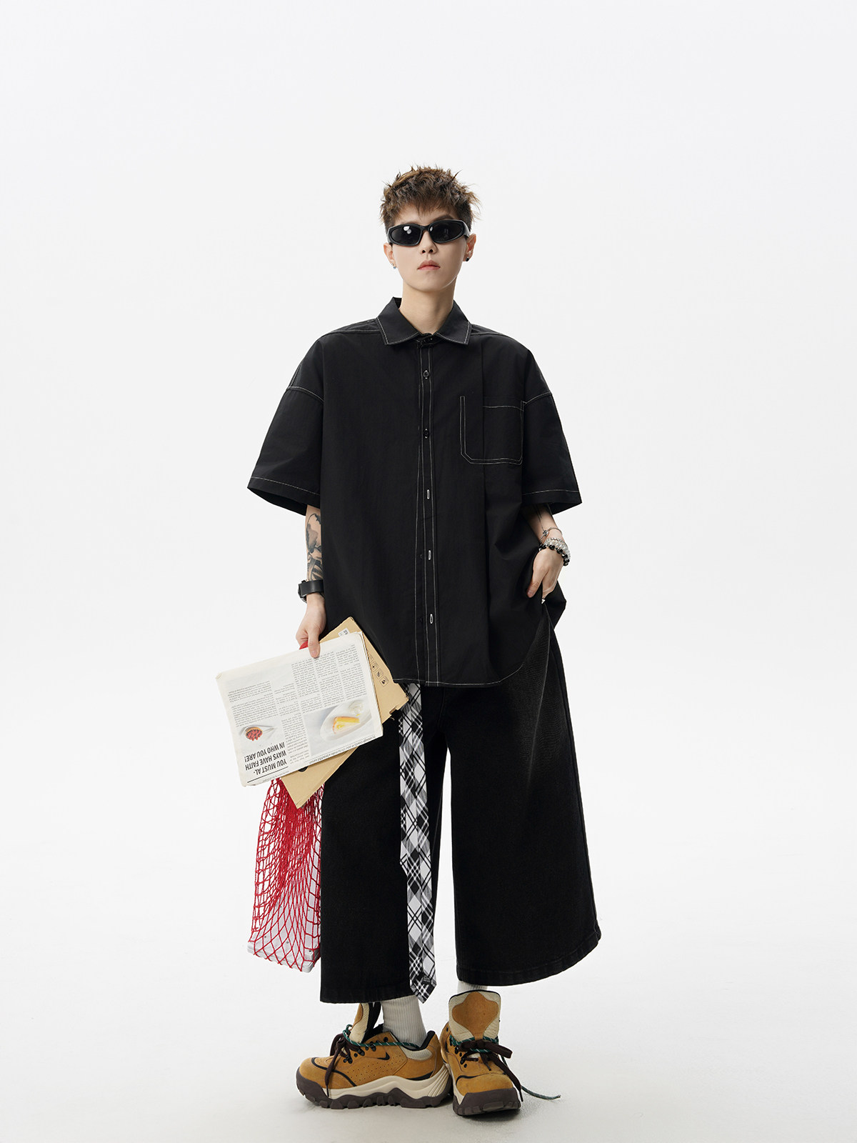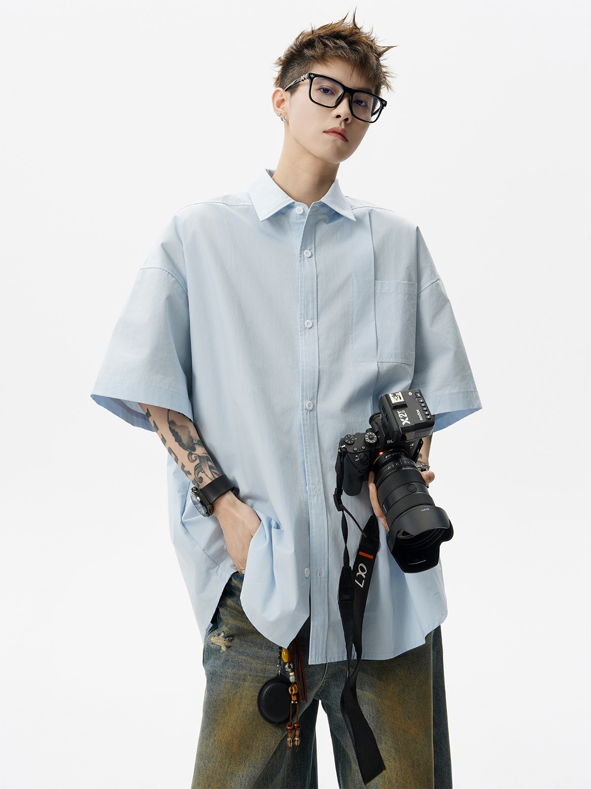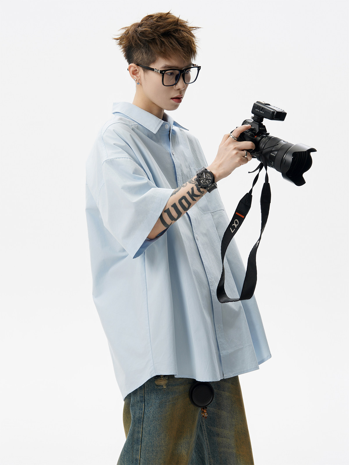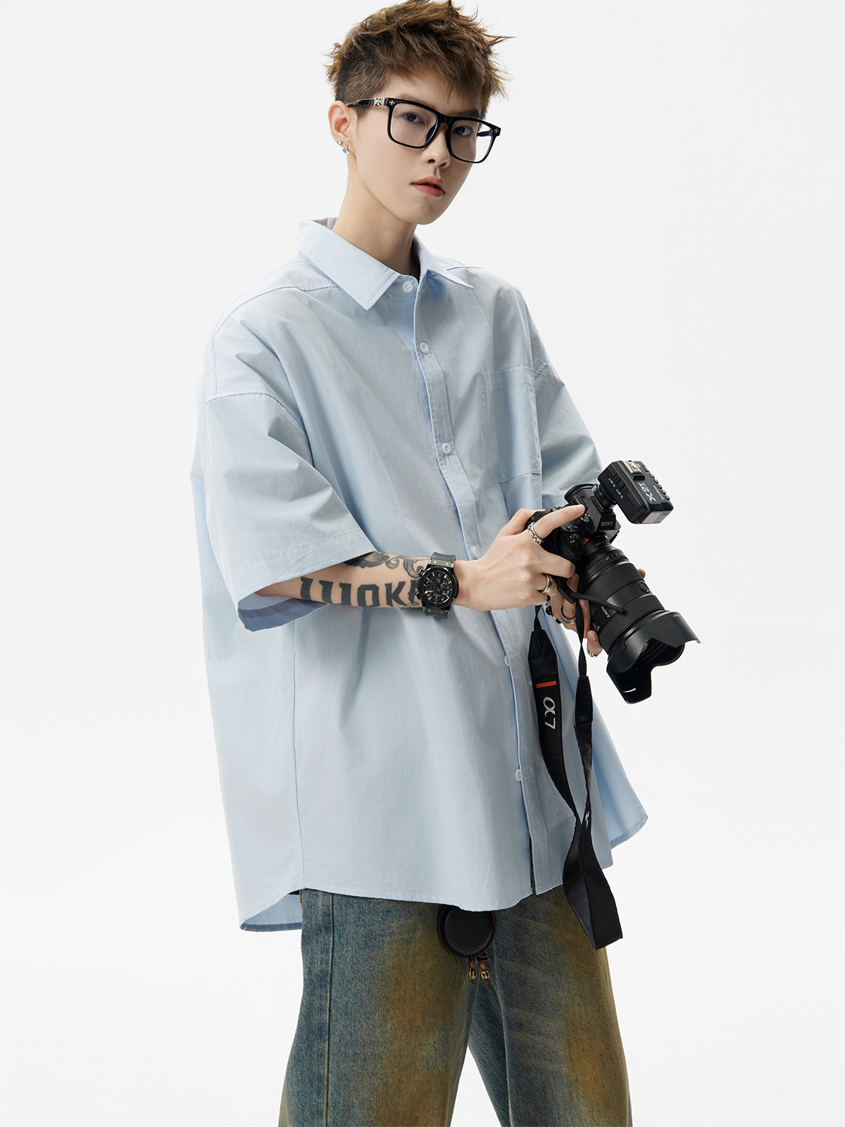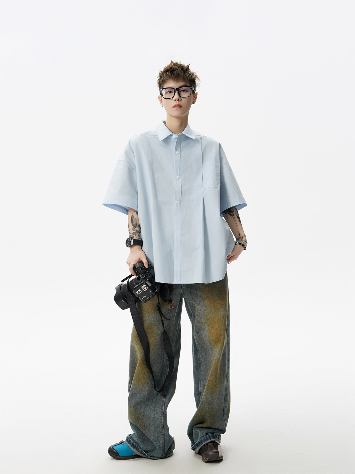 Camisa blanca japonesa cleanfit para hombre, marca de moda de verano para adolescentes, tops informales, chaqueta de camisa de diseño cosido
