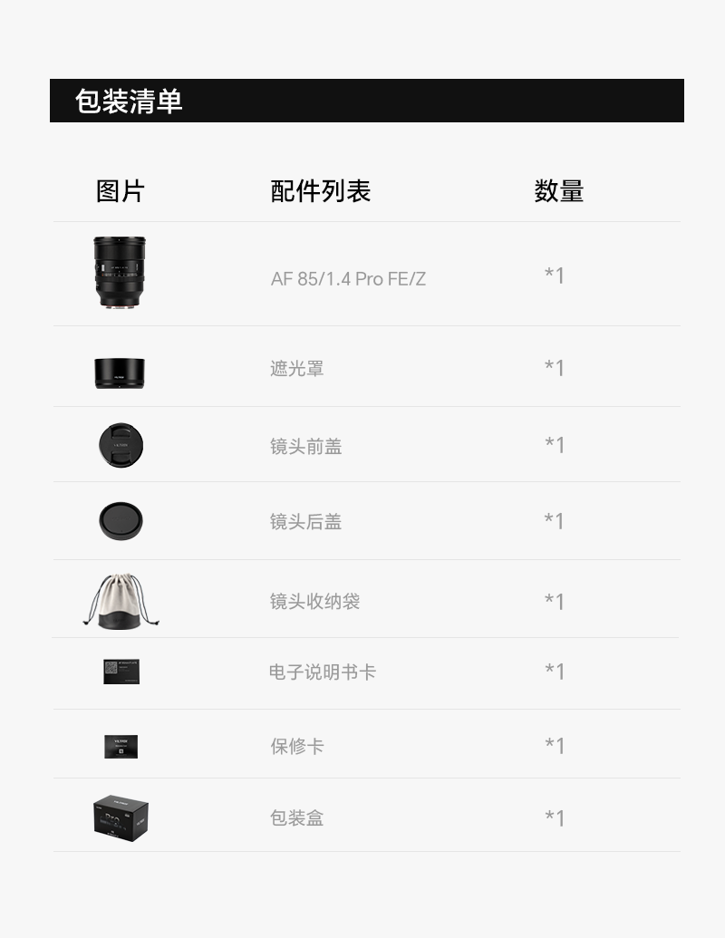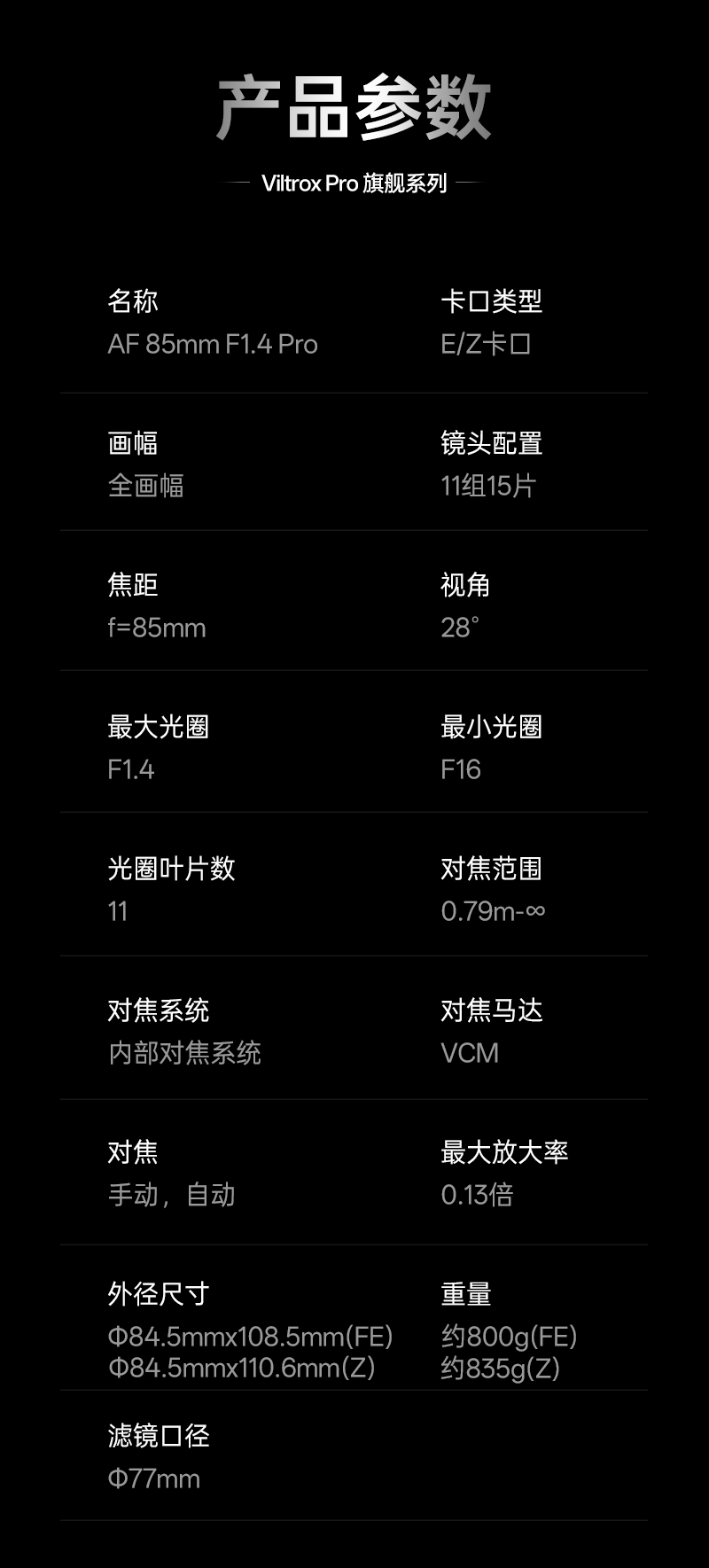 唯卓仕AF 85mm F1.4 Pro镜头全画幅微单FE/Z相机自动对焦大光圈