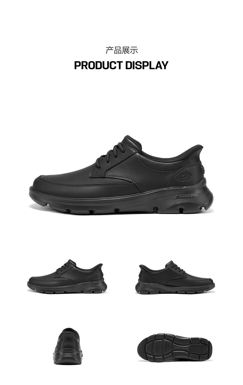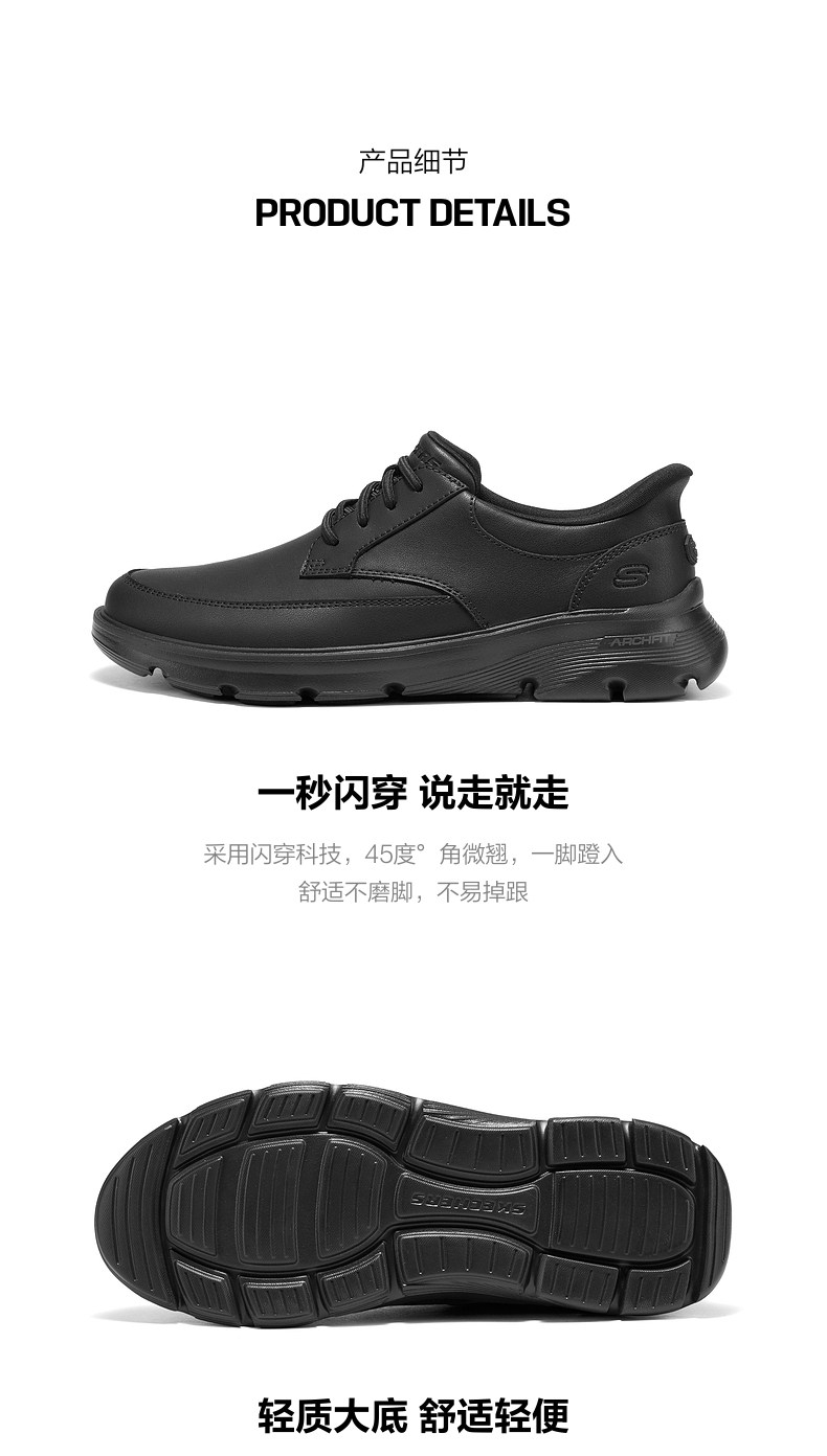 斯凯奇闪穿鞋|一脚蹬商务鞋时尚男鞋足弓支撑男士皮鞋春季新款