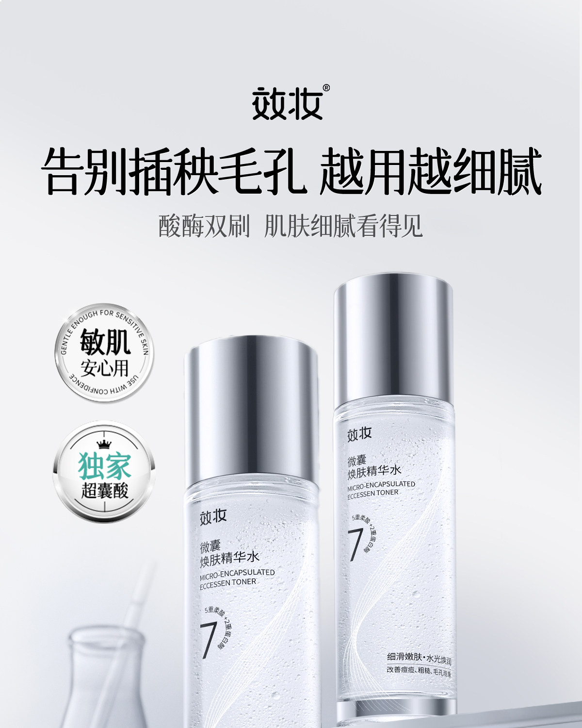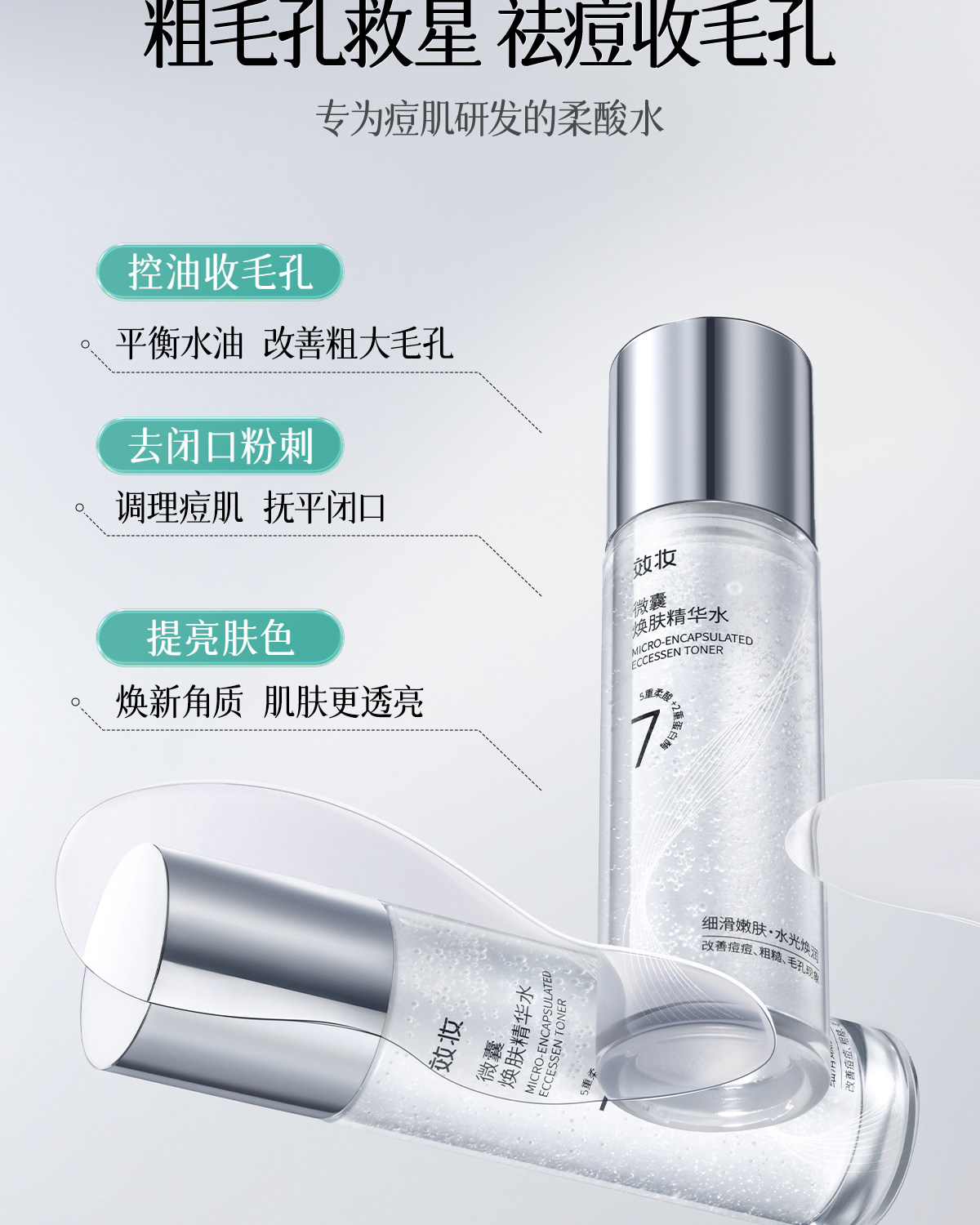 效妆微囊精华水收缩毛孔闭口祛痘淡化痘印补水保湿去黄提拉爽肤水