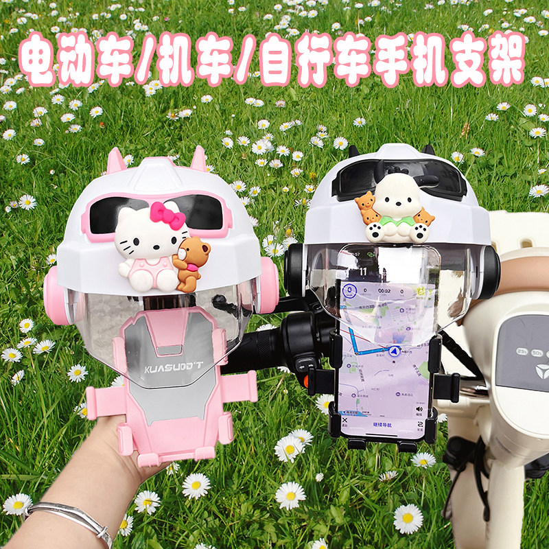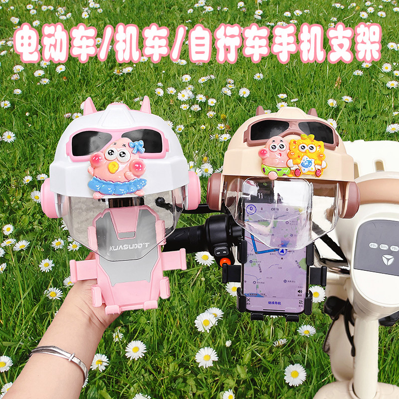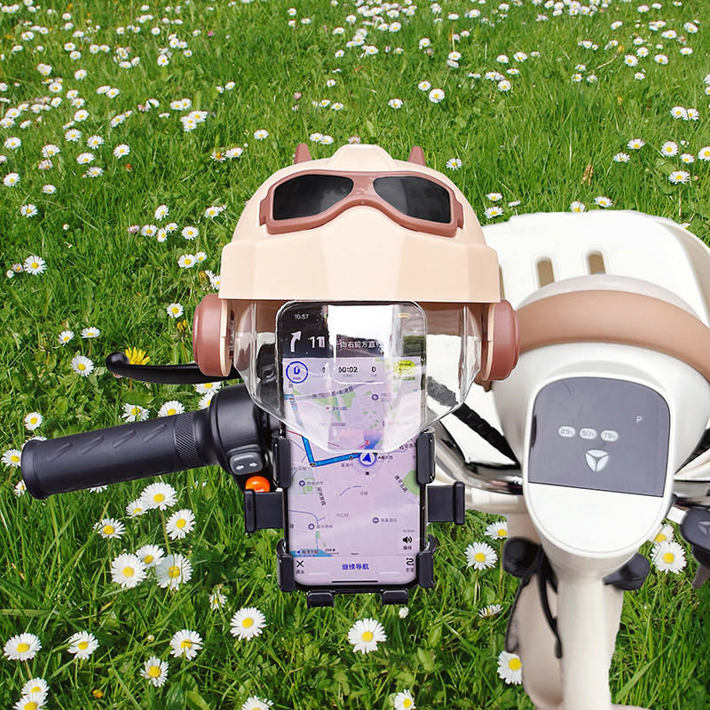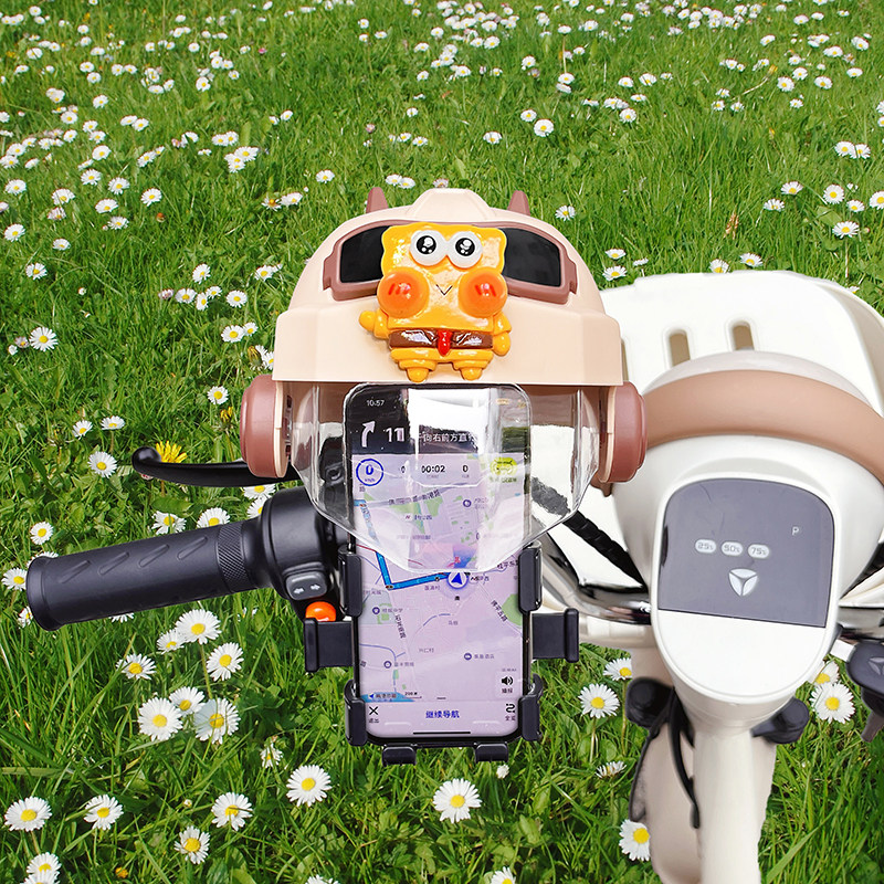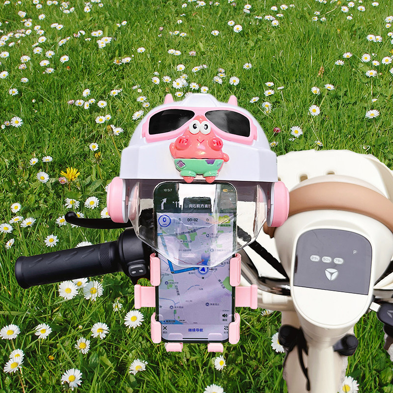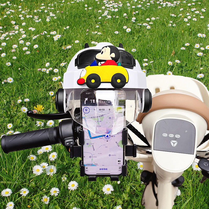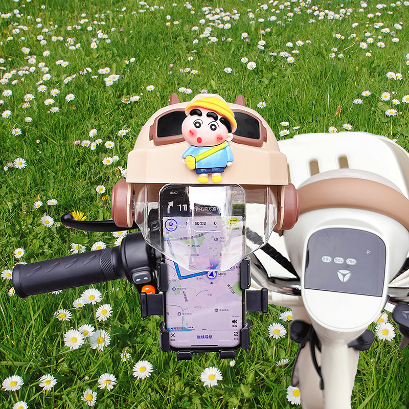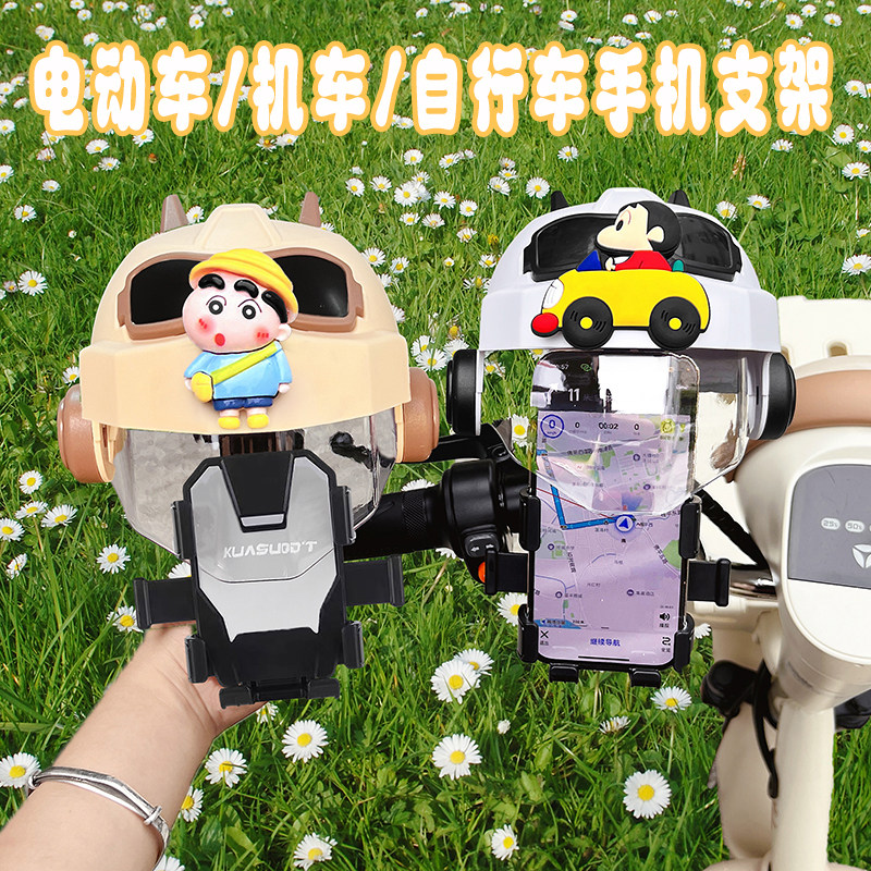 电动车手机支架2025新款可爱卡通蜡笔小新电瓶车防晒小头盔导航架