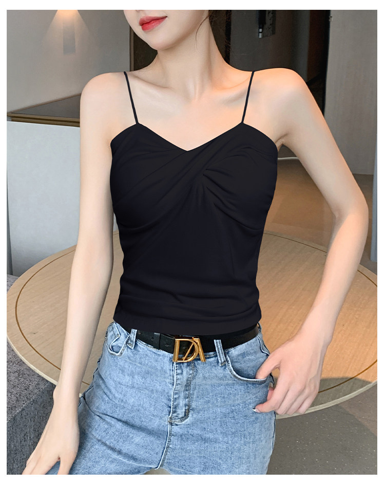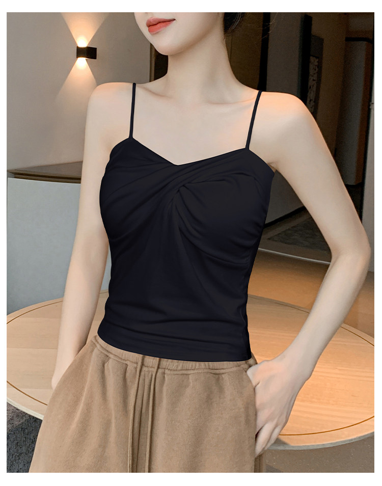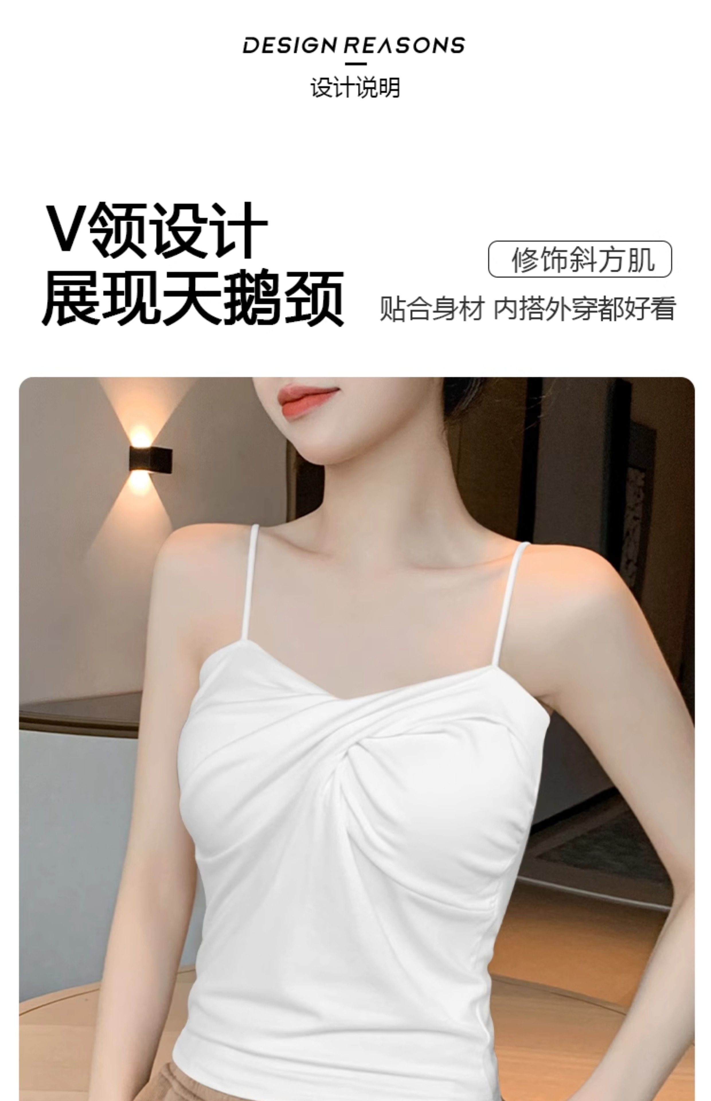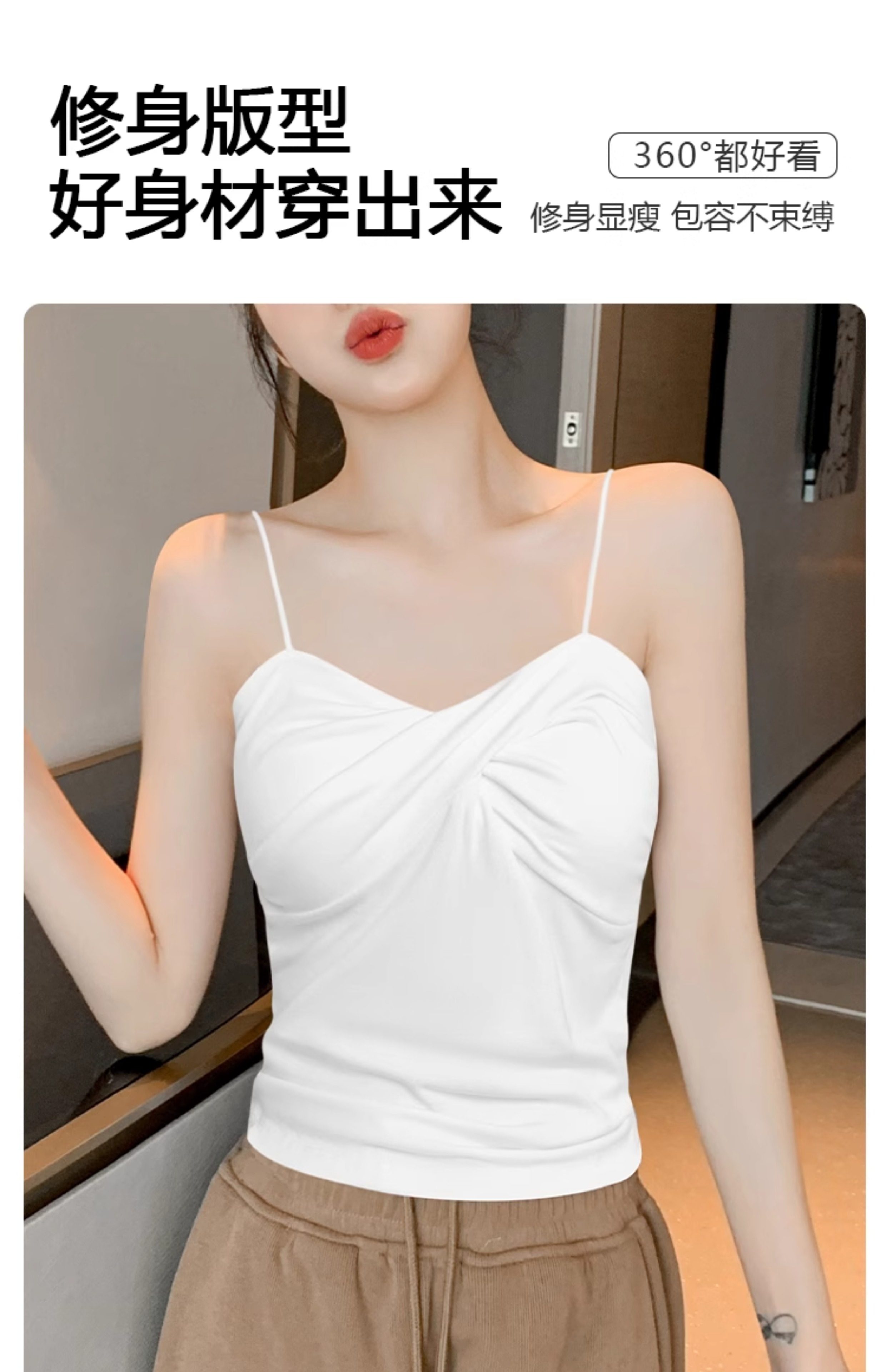 Black Camisole with Chest Pads for Women, 2026 New Style, Beautiful Back Design, Integrated Base Layer, Can Be Worn Outside, Stylish Top for Summer