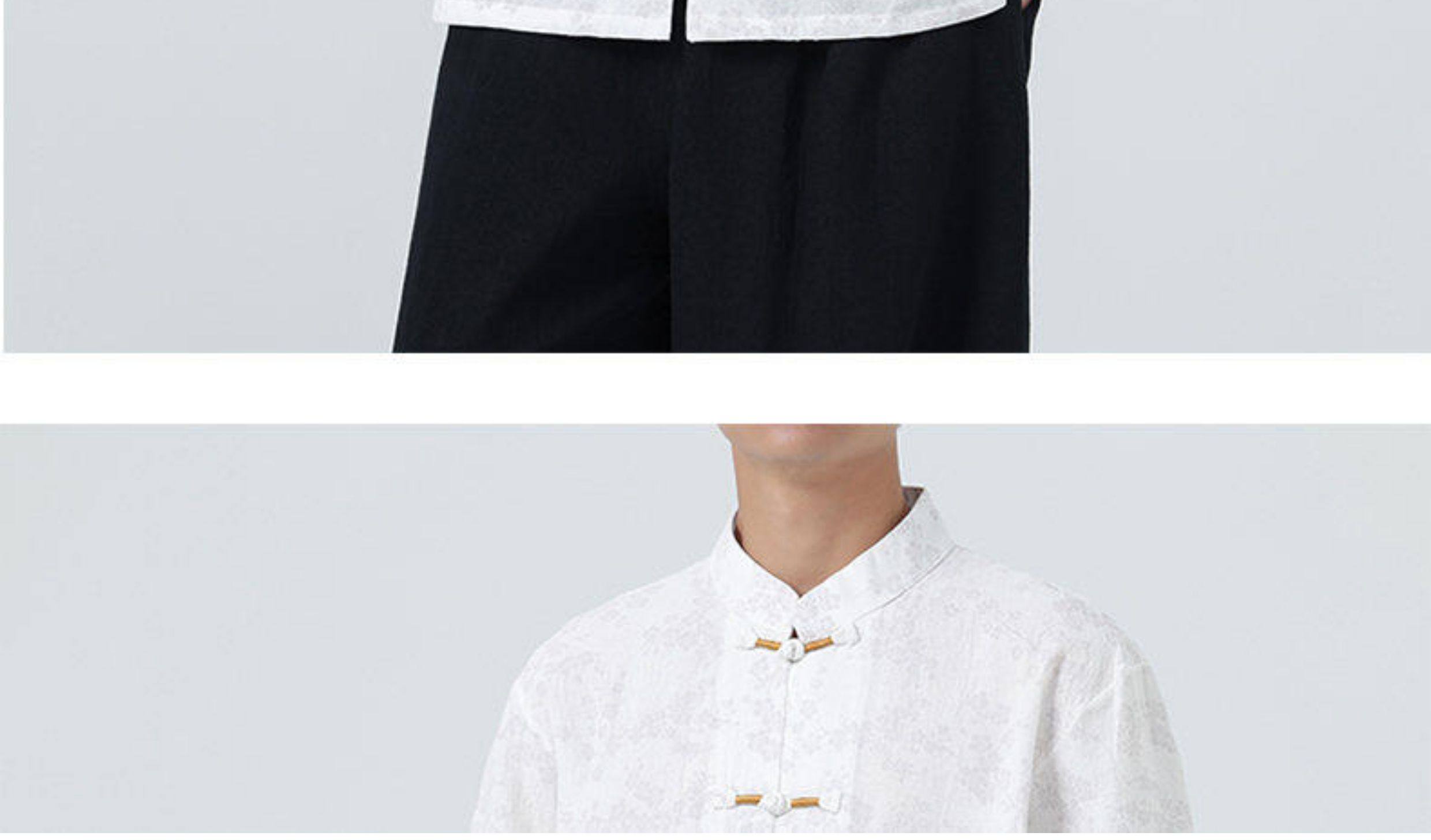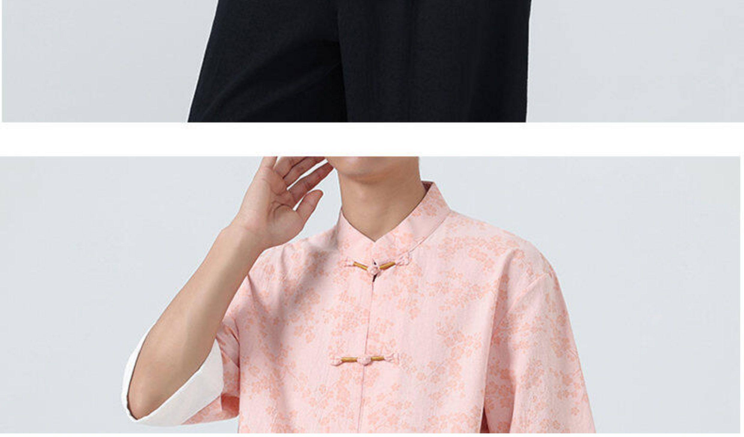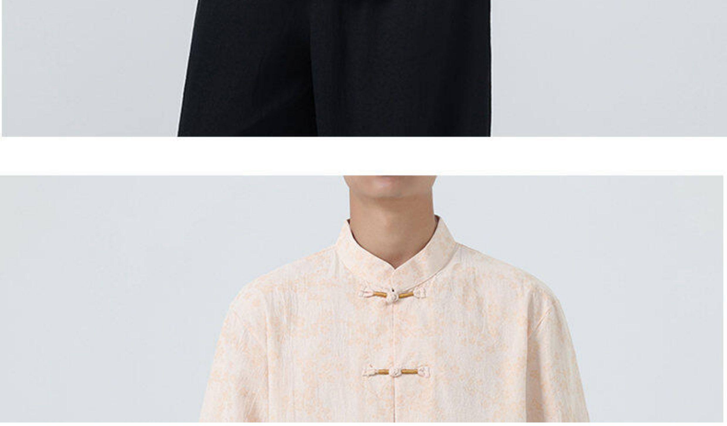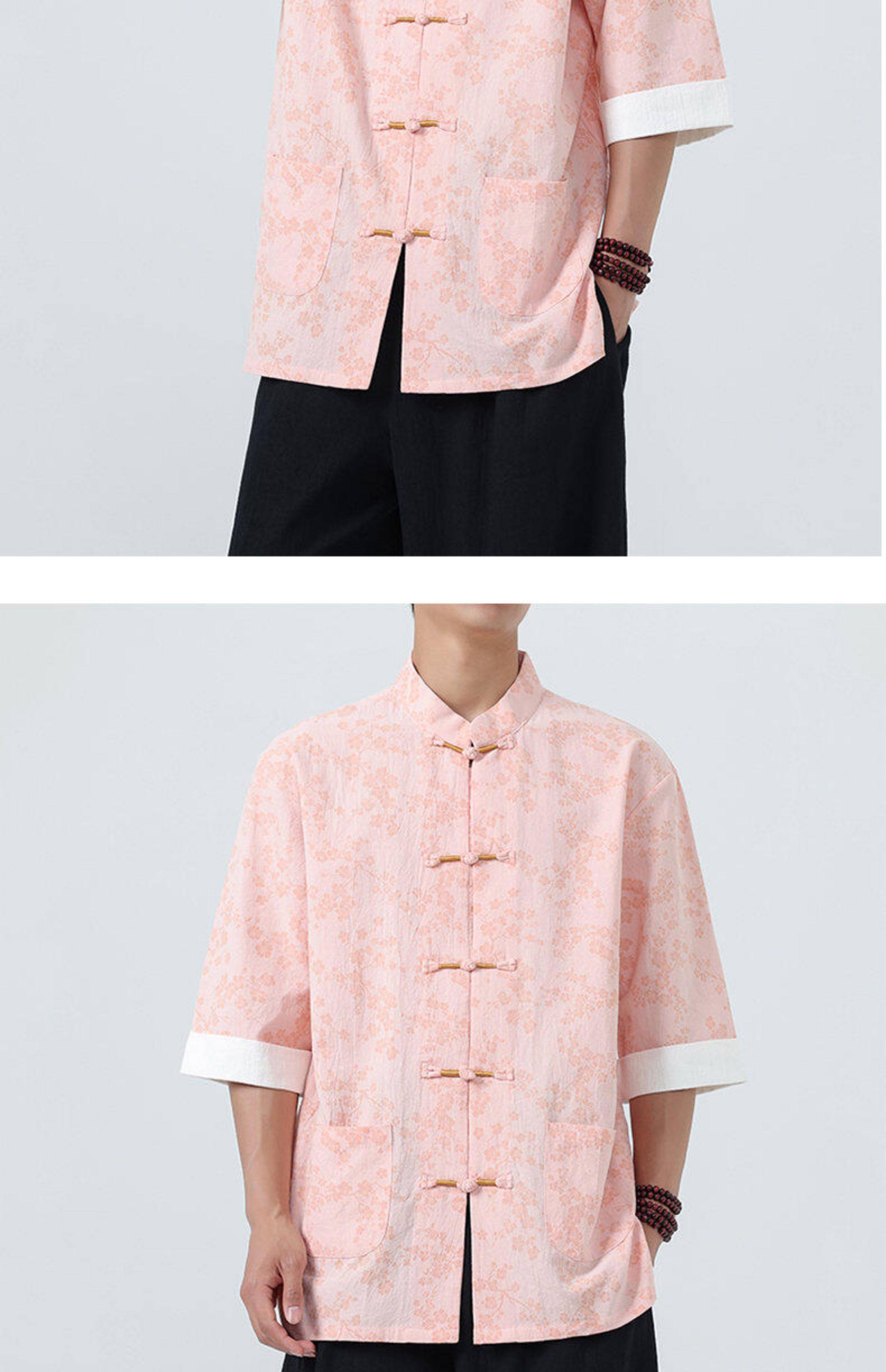 Мужская летняя рубашка в китайском стиле из хлопка и льна, с рукавом до локтя, свободного кроя, в стиле ретро, с воротником-стойкой, на пуговицах, с принтом, в стиле тан-костюм, топ с рукавом до локтя