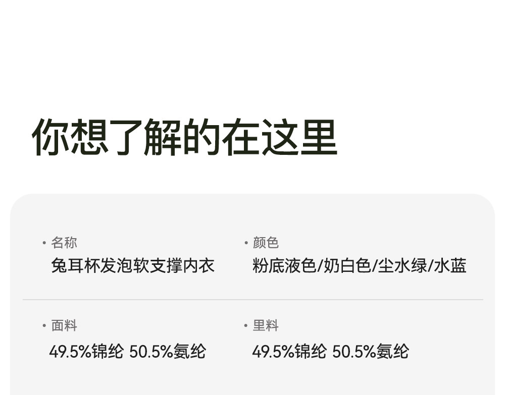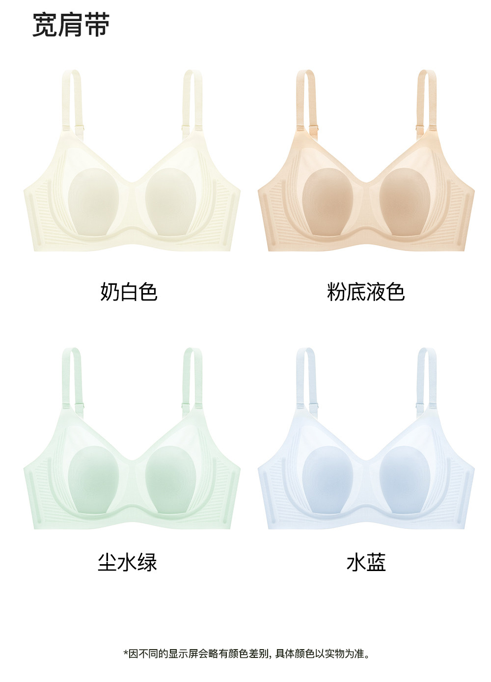 颜色分类 本店2025年复购老客300万+ 品质值得信任,↓ ABC杯 轻薄透气 聚拢防下垂↓.,【细肩带】粉底液✅穿白T不透.,【细肩带】奶白色-聚拢防下垂.,【细肩带】尘水绿-聚拢防下垂.,【细肩带】水蓝色-聚拢防下垂.,【宽肩带】粉底液✅穿白T不透.,【宽肩带】奶白色.,【宽肩带】尘水绿.,【宽肩带】水蓝色.,↓BCD杯 大胸显小 承托有型↓,【大胸显小】奶白色.,【大胸显小】薄荷绿,【大胸显小】灰粉色,【大胸显小】奶咖色,【大胸显小】黑灰色