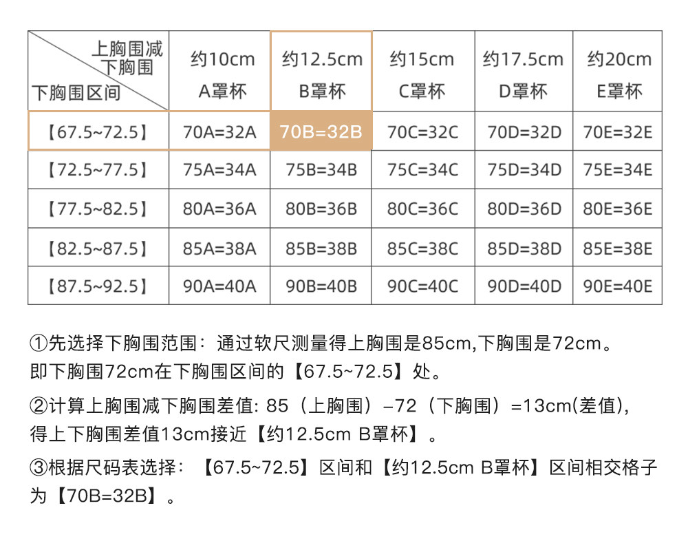 尺码 XL,L,M,S,M( 75B/75C/75D),L 80B/80C/80D,XL 85B/85C/85D