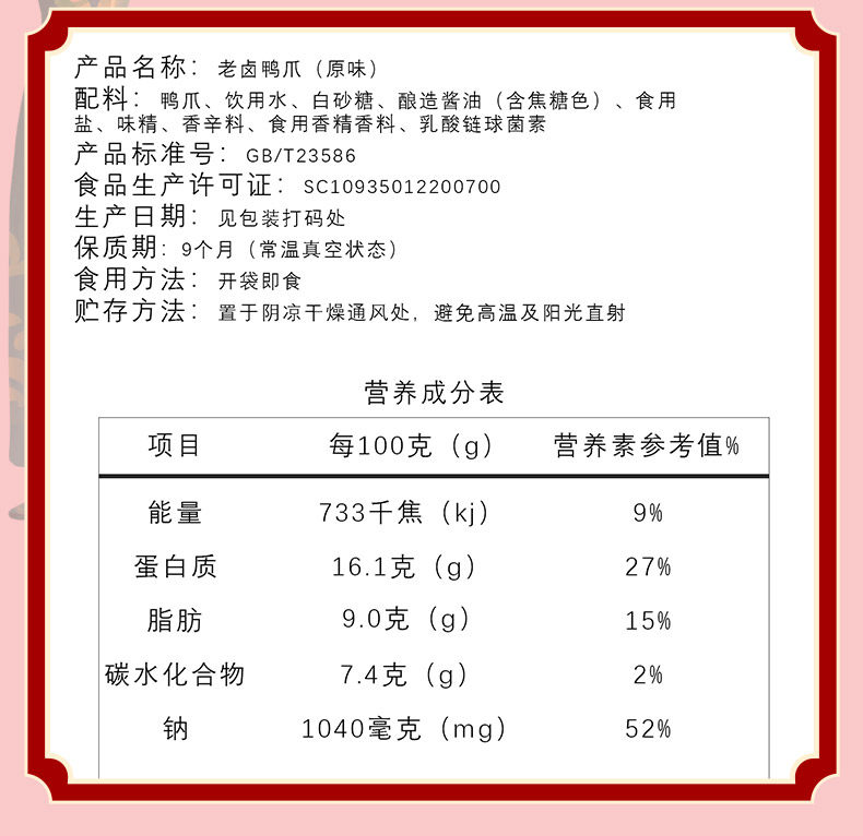品名 老卤鸭爪(原味)