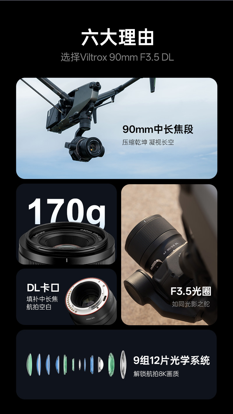 Weizhuoshi Af 90mm F3.5 Dl Lens with Autofocus Is Suitable for Dji Inspire 3/Ronin 4D