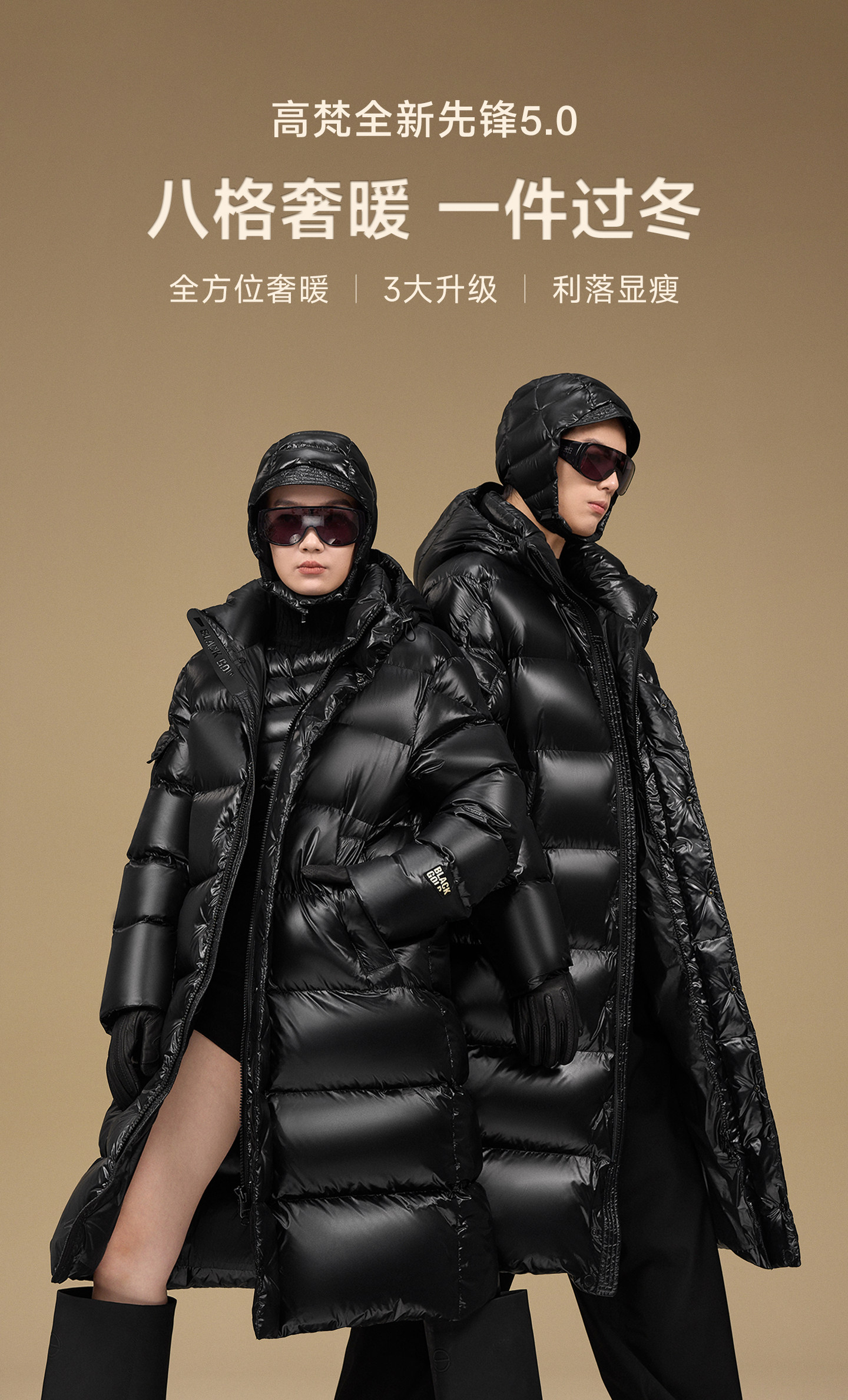 [Same Style as Wei Zheming] Gaofan Black Gold 5.0 Pioneer Eight-Grid Goose down Jacket 2025 Winter Couple's Long down Jacket