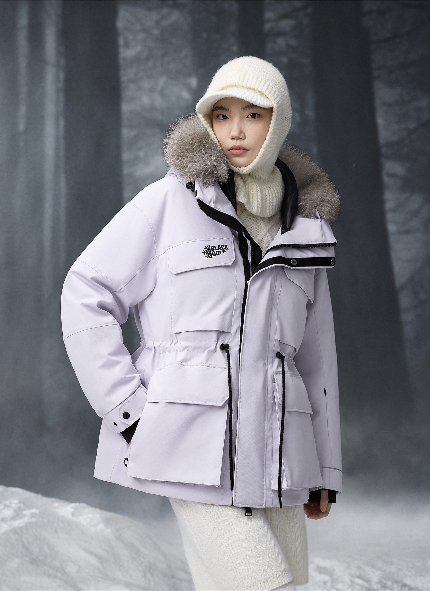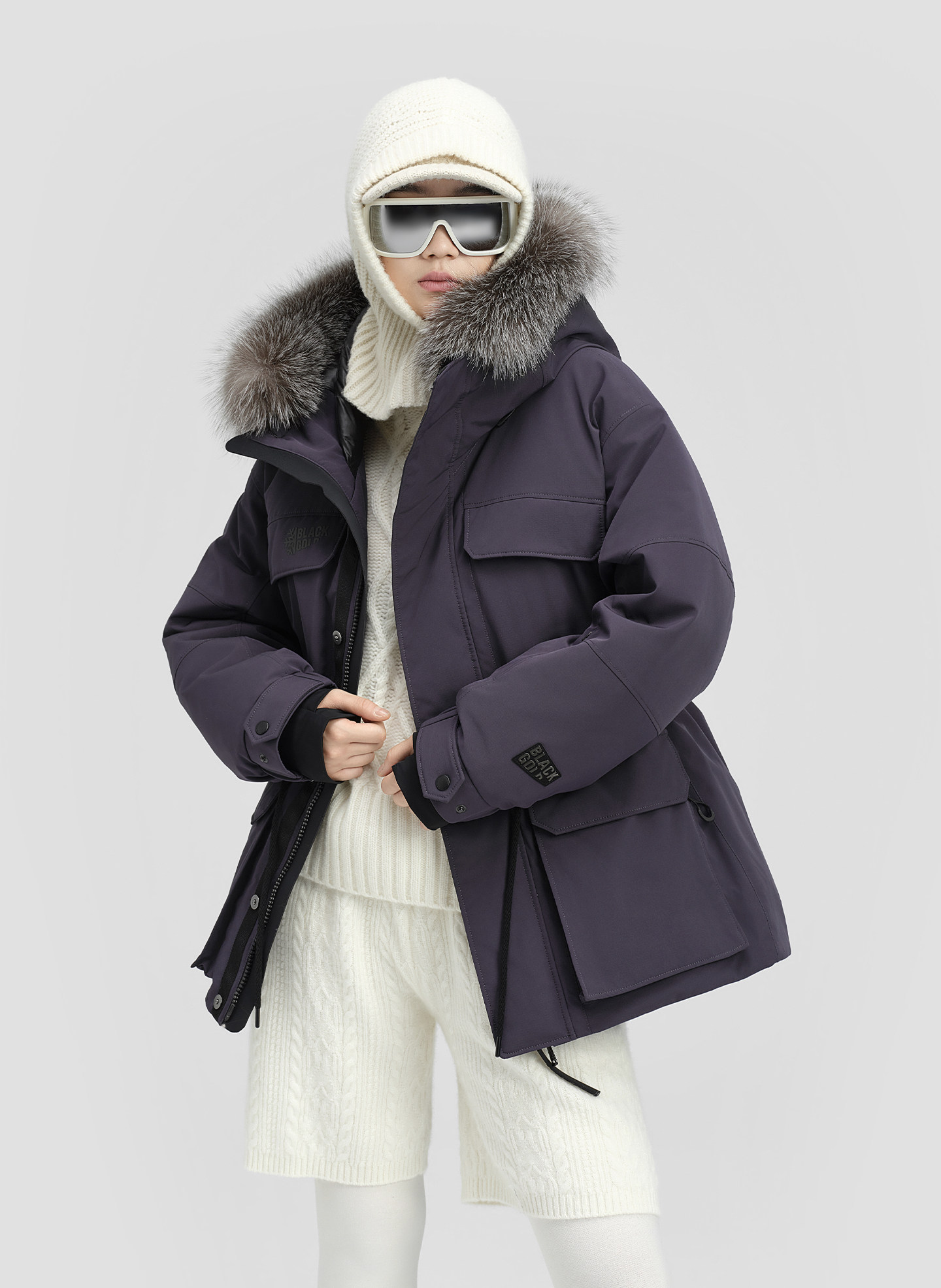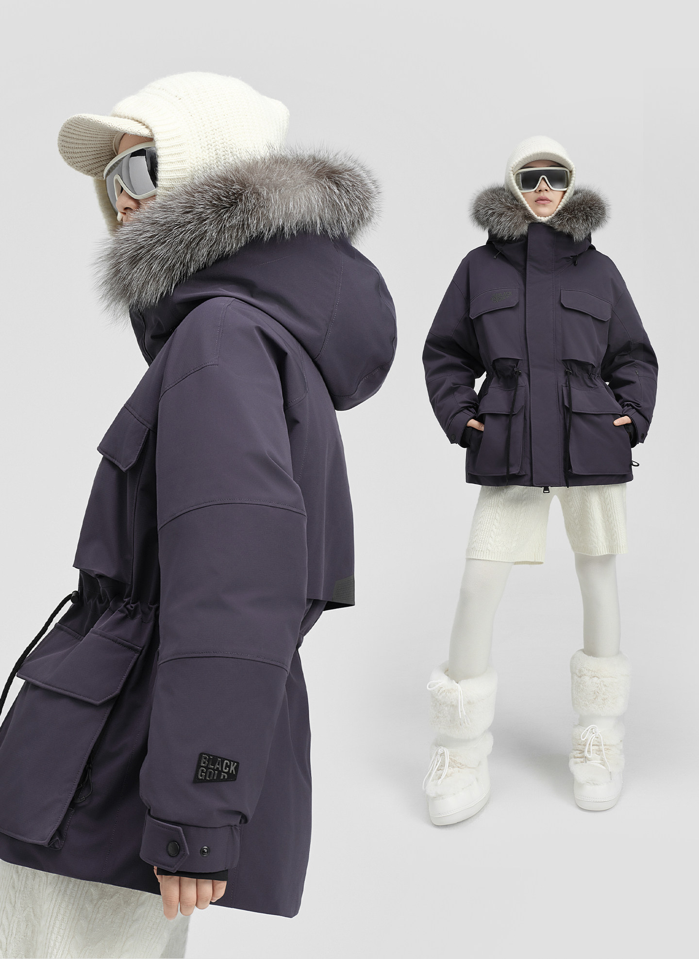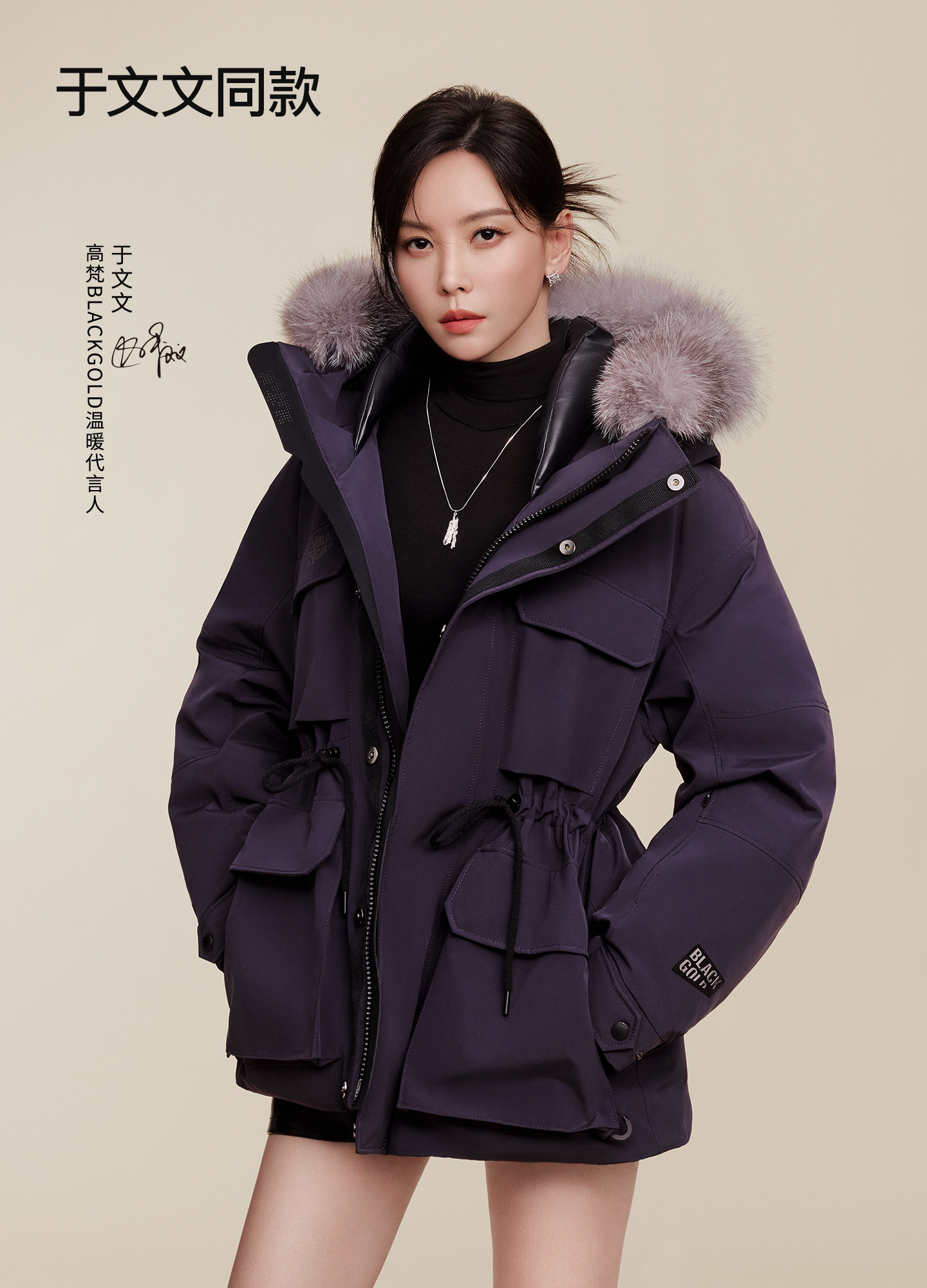 Пуховик Gaofan Black Gold Goose Down Jacket Snow Shell 5.0 в стиле Юй Вэньвэнь, женское зимнее уличное пальто 2025 года, фиолетовое, с утяжкой на талии.