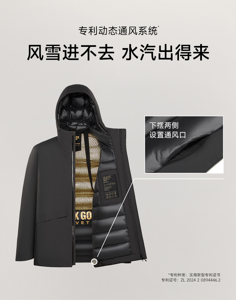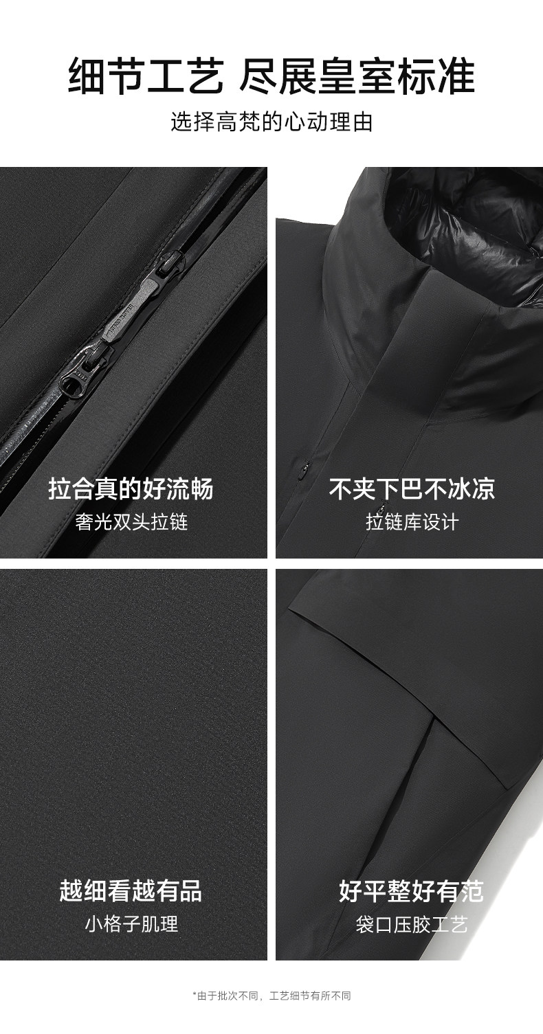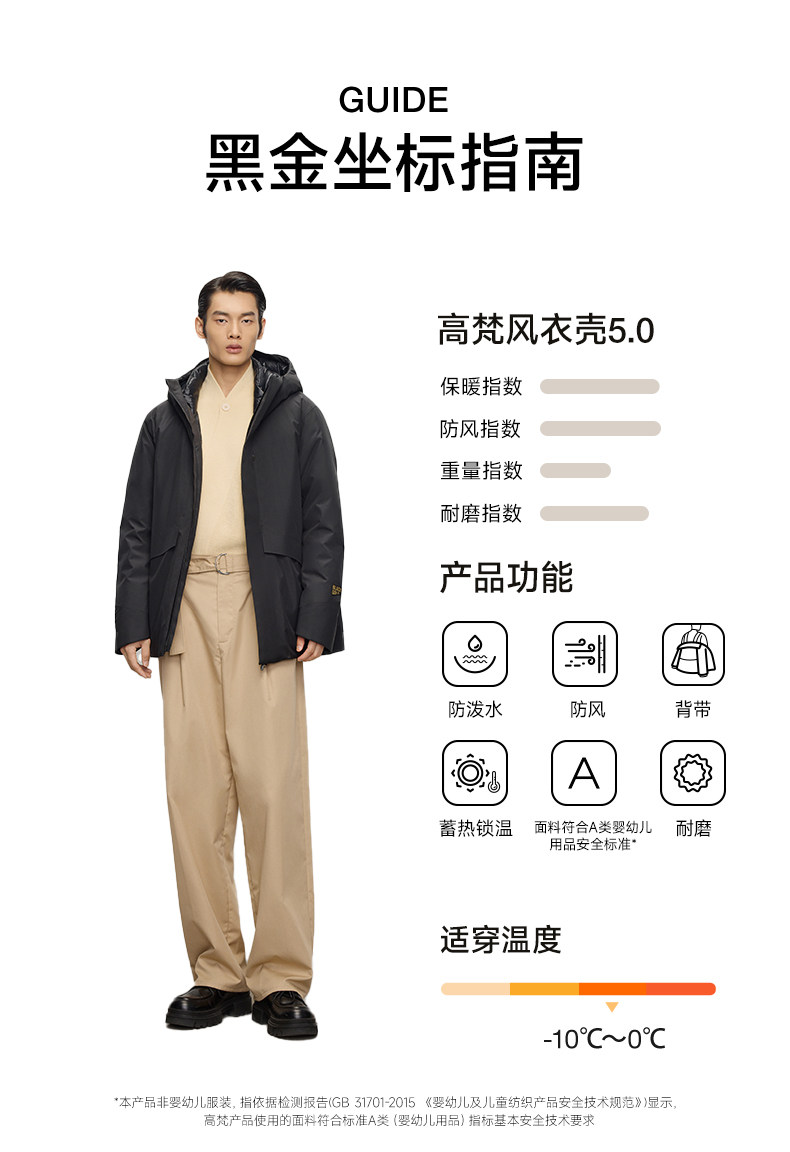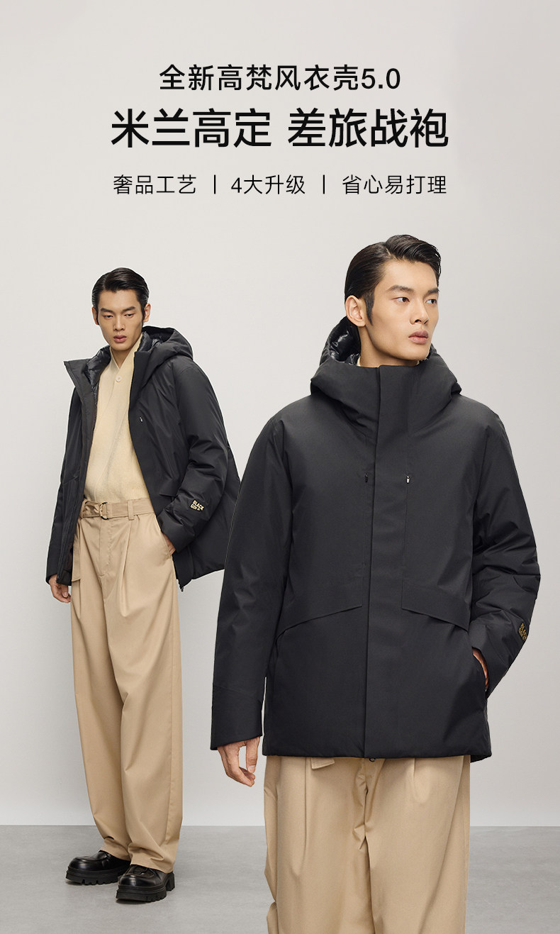 【高梵黑金鹅绒服】风衣壳5.0男户外2025年冬季5分连帽黑色外套
