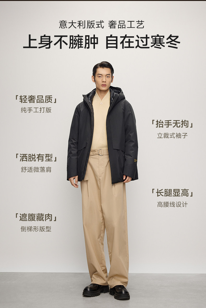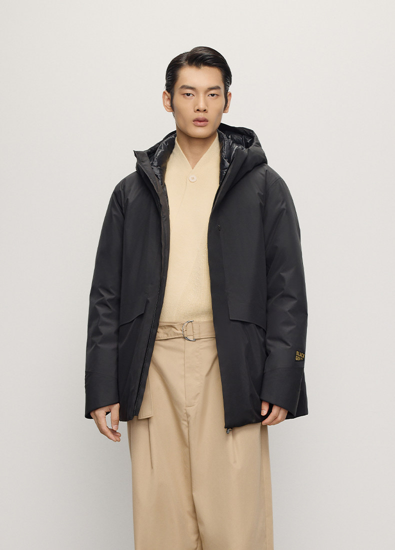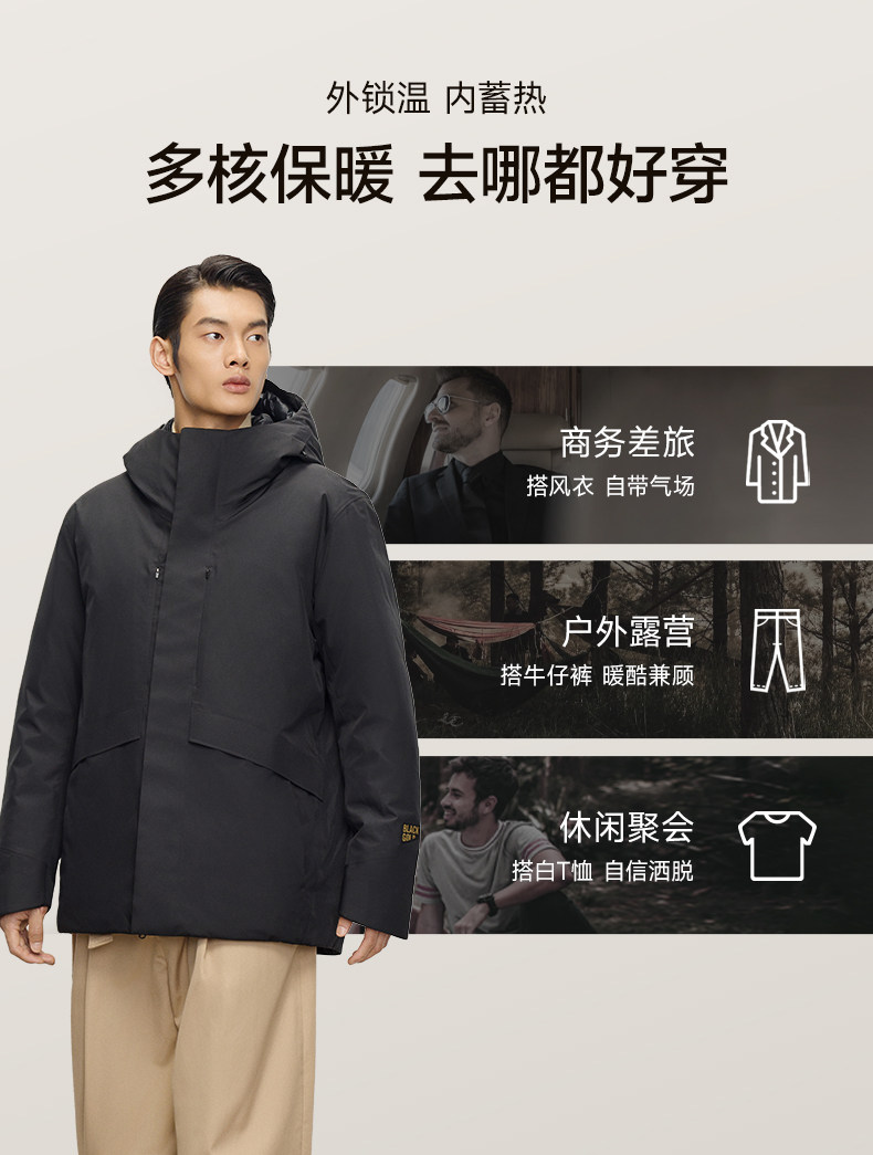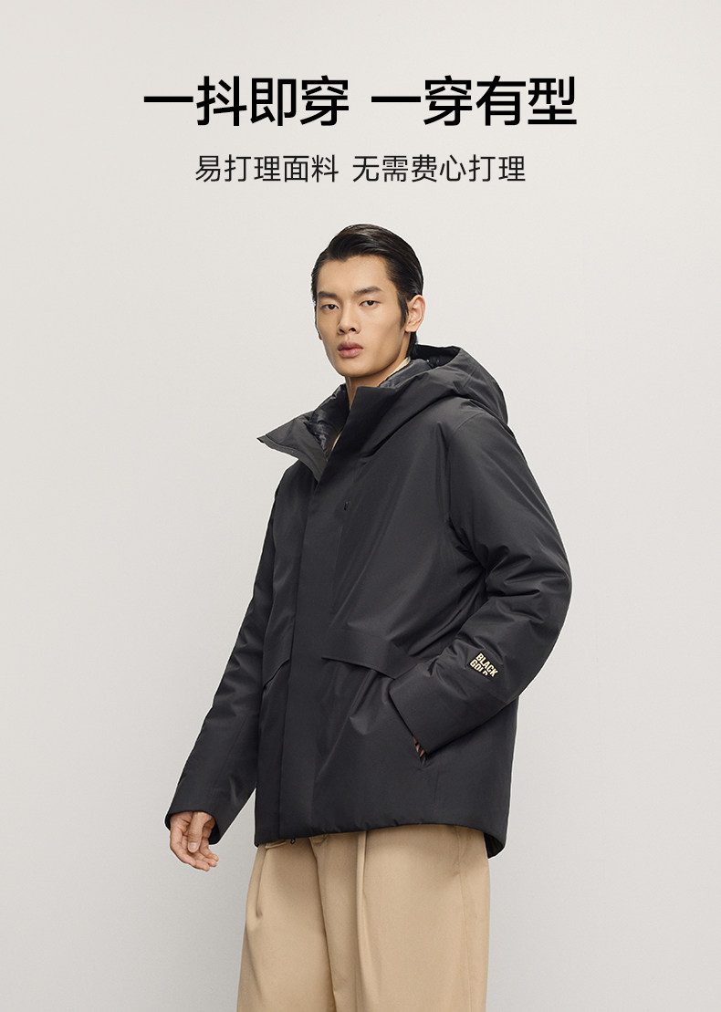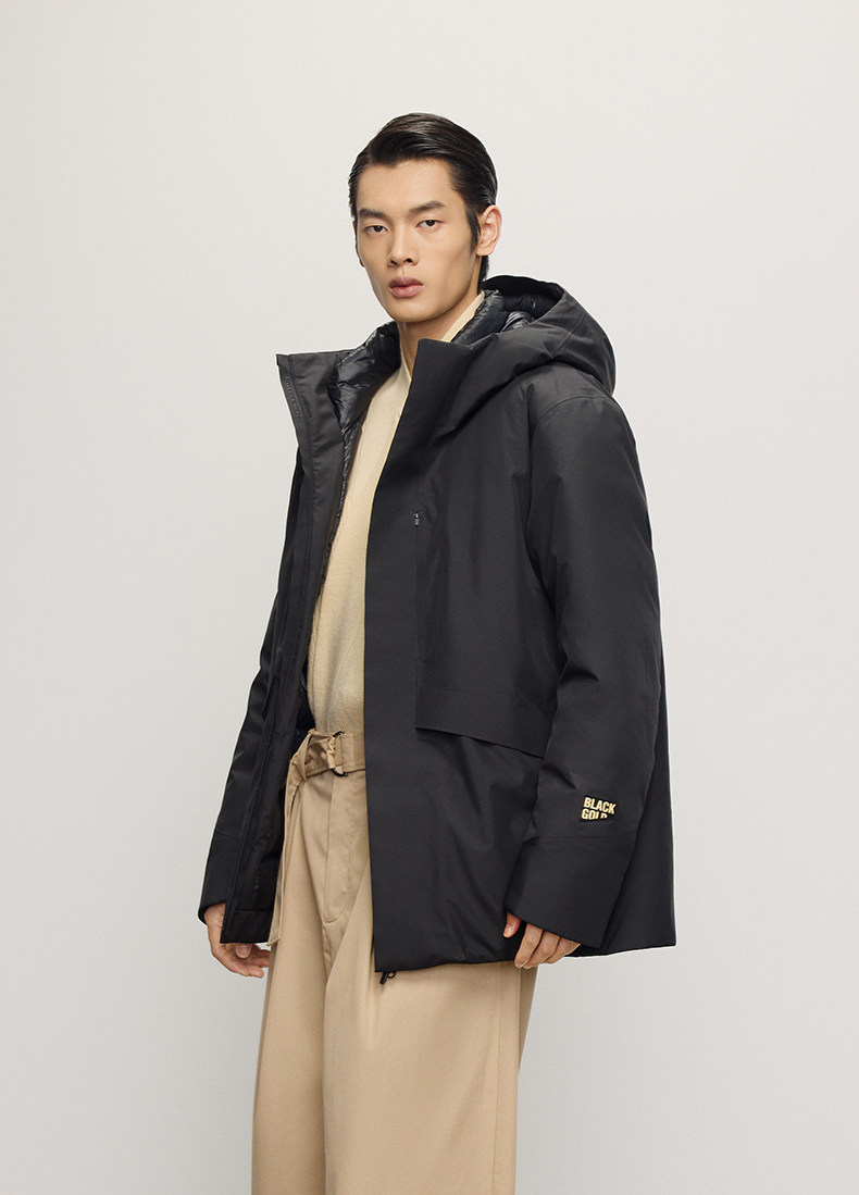 【高梵黑金鹅绒服】风衣壳5.0男户外2025年冬季5分连帽黑色外套