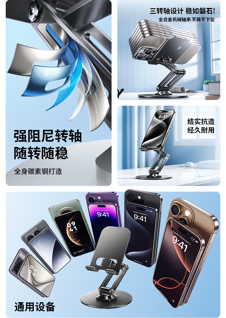 Clasificación de colores Modelo estándar con rotación de 360°, estable una vez colocado, apto para teléfonos móviles y tabletas.,Rotación mejorada de 360 grados, estable una vez colocada, universal para teléfonos móviles y tabletas, rotación de tres etapas para aumentar,Modelo insignia, negro espacial, acero al carbono, rotación de 360 grados, universal para tabletas y teléfonos móviles, rotación de tres etapas para realzar,Flagship Moonlight Silver Acero al carbono Rotación 360 Universal para tabletas y teléfonos móviles Rotación Altura de tres etapas,Modelo magnético, negro espacial, imán potente N52, rotación de 360 grados, universal para tabletas y teléfonos móviles, rotación de tres etapas para realzar,Modelo magnético Moonlight Silver N52 imán fuerte rotación de 360 grados universal para tabletas y teléfonos móviles rotación de tres etapas para realzar
