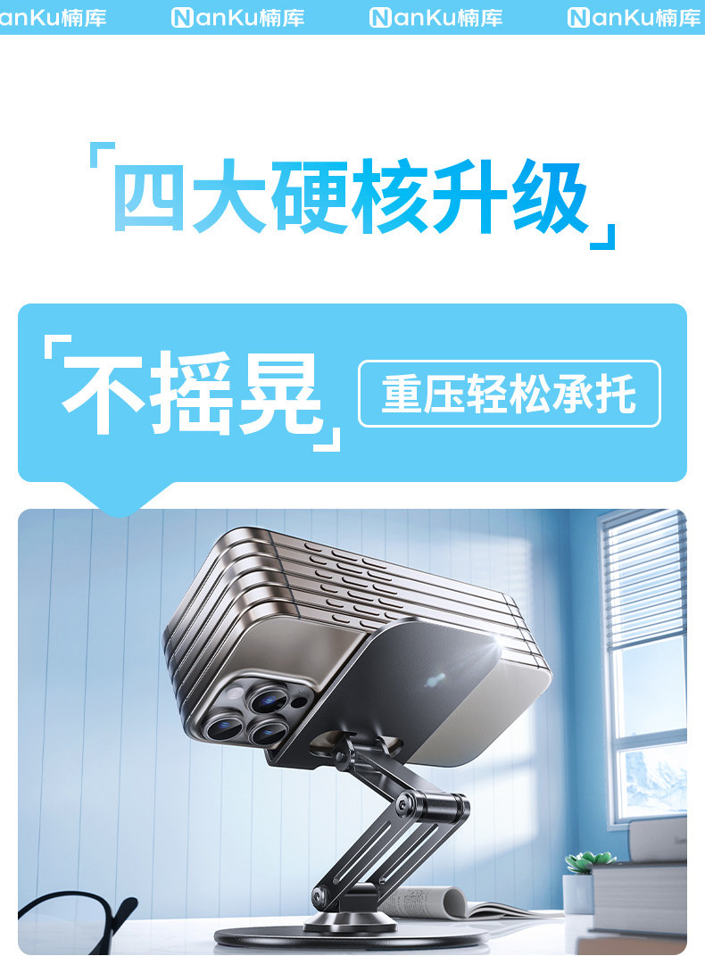720 Rotación Nanku soporte para teléfono móvil tableta de escritorio iPad pollo comiendo aleación de aluminio especial acero al carbono metal soporte perezoso soporte portátil plegable ajustable elevación disparo base de enfriamiento