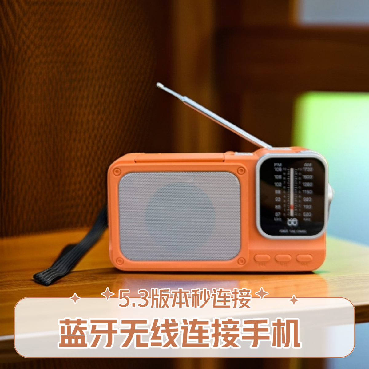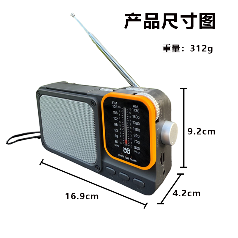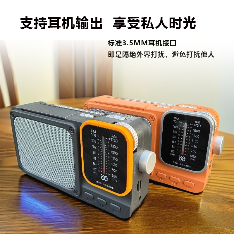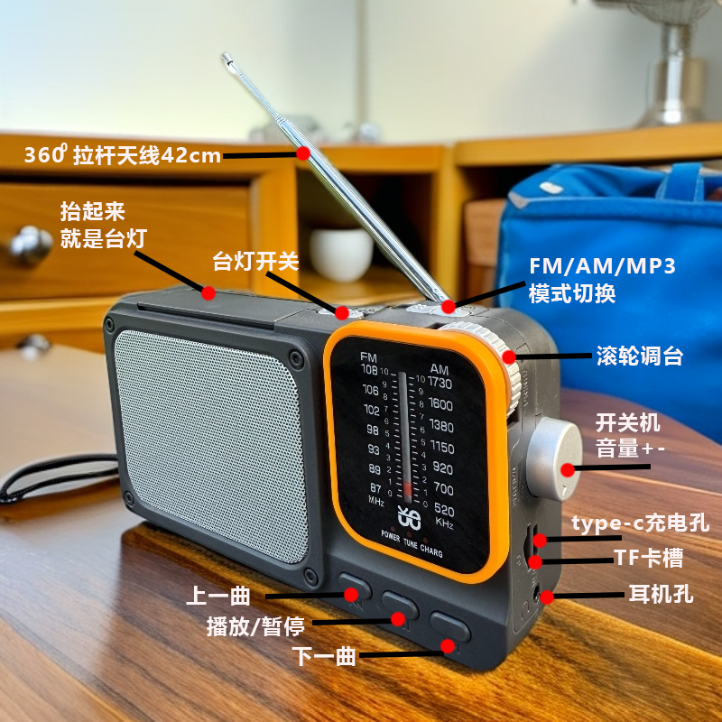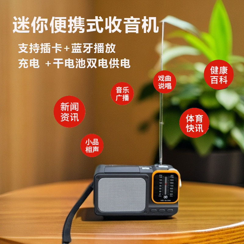 指针式收音机老年人半导体蓝牙插卡MP3播放器带LED照明灯户外应急