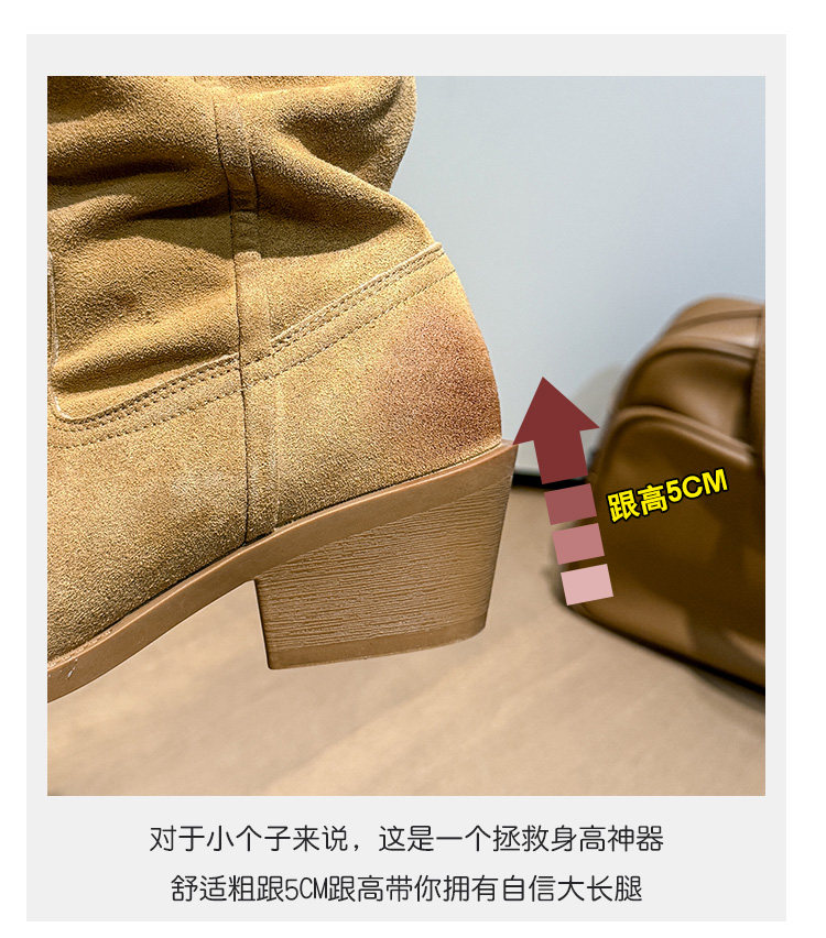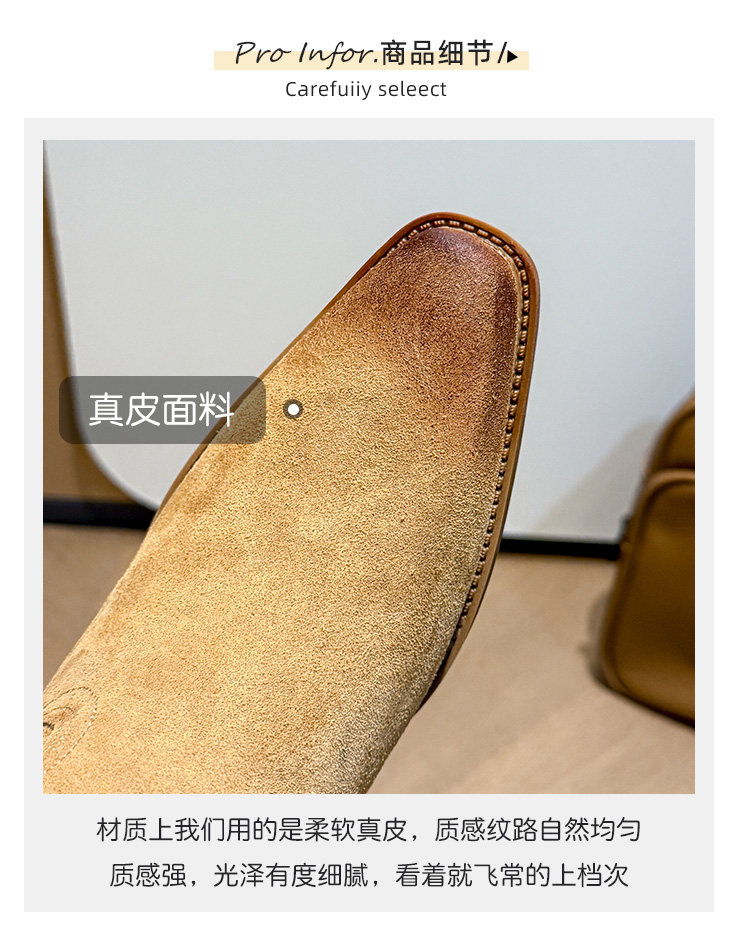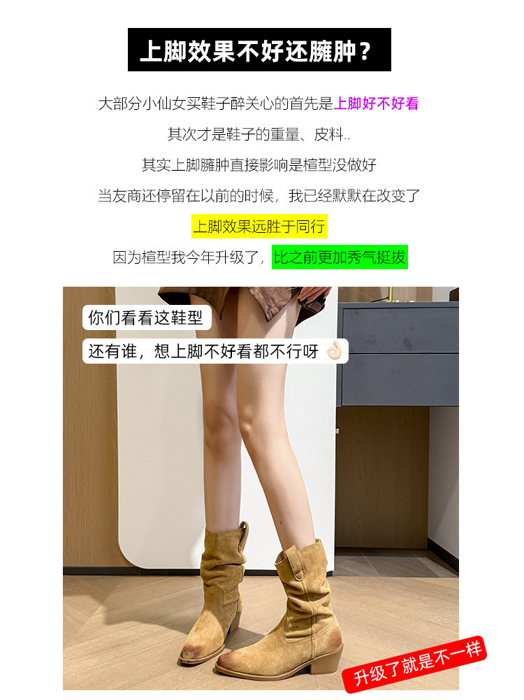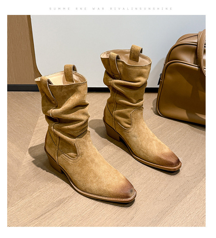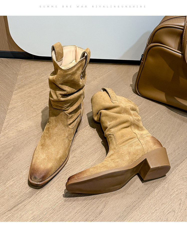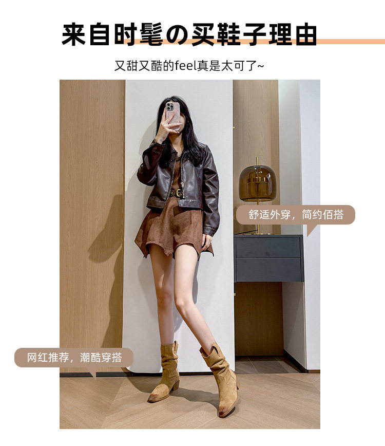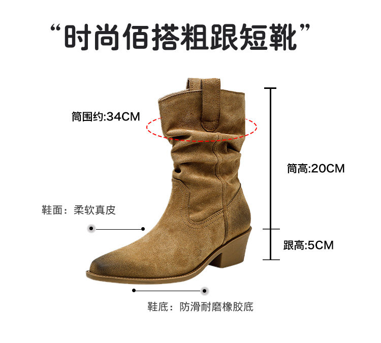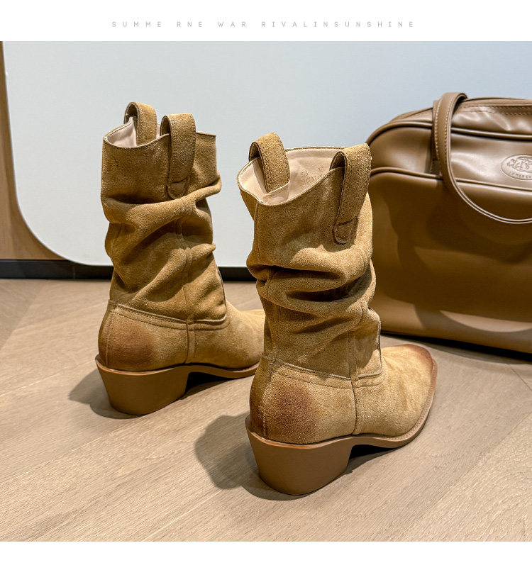 真皮擦色做旧西部牛仔靴女2025秋冬新款爆款褶皱堆堆靴超火短靴子