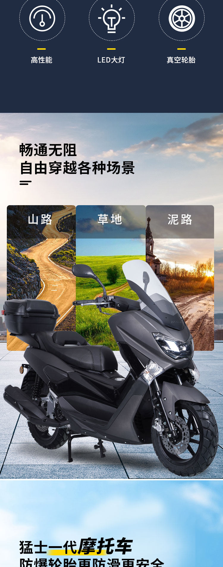 150CC燃油踏板车摩托车电喷可上牌越野机车长途车省油有劲大摩托