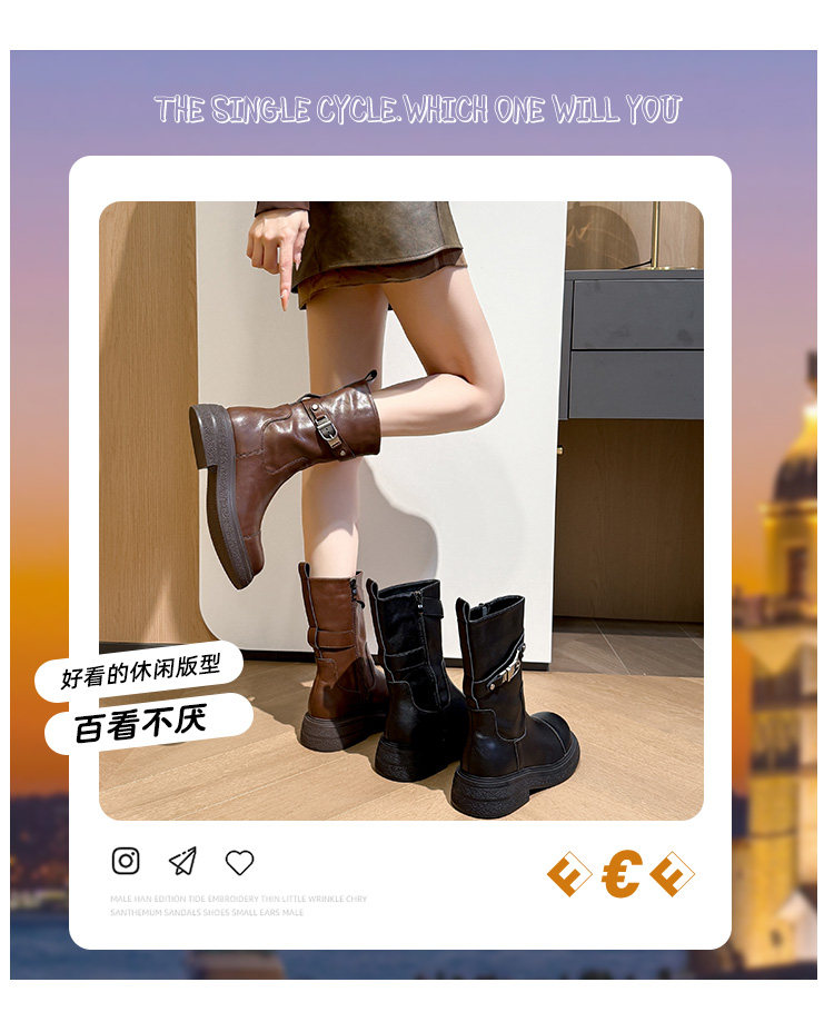 Ботинки женские из натуральной кожи, на толстой подошве, с пряжкой, в британском стиле, средней высоты, новинка 2025 года, весенне-осенние, ретро-мартинсы, короткие ботинки.