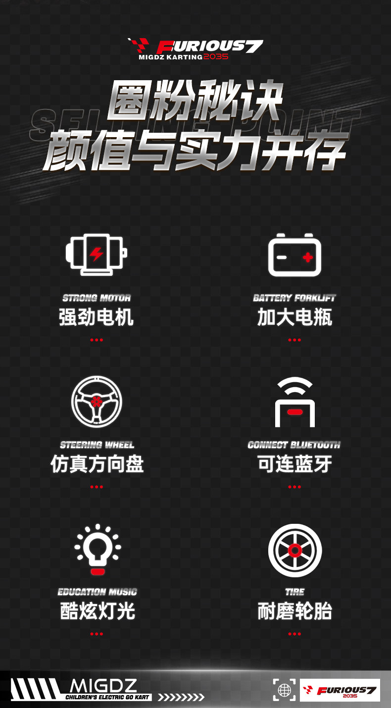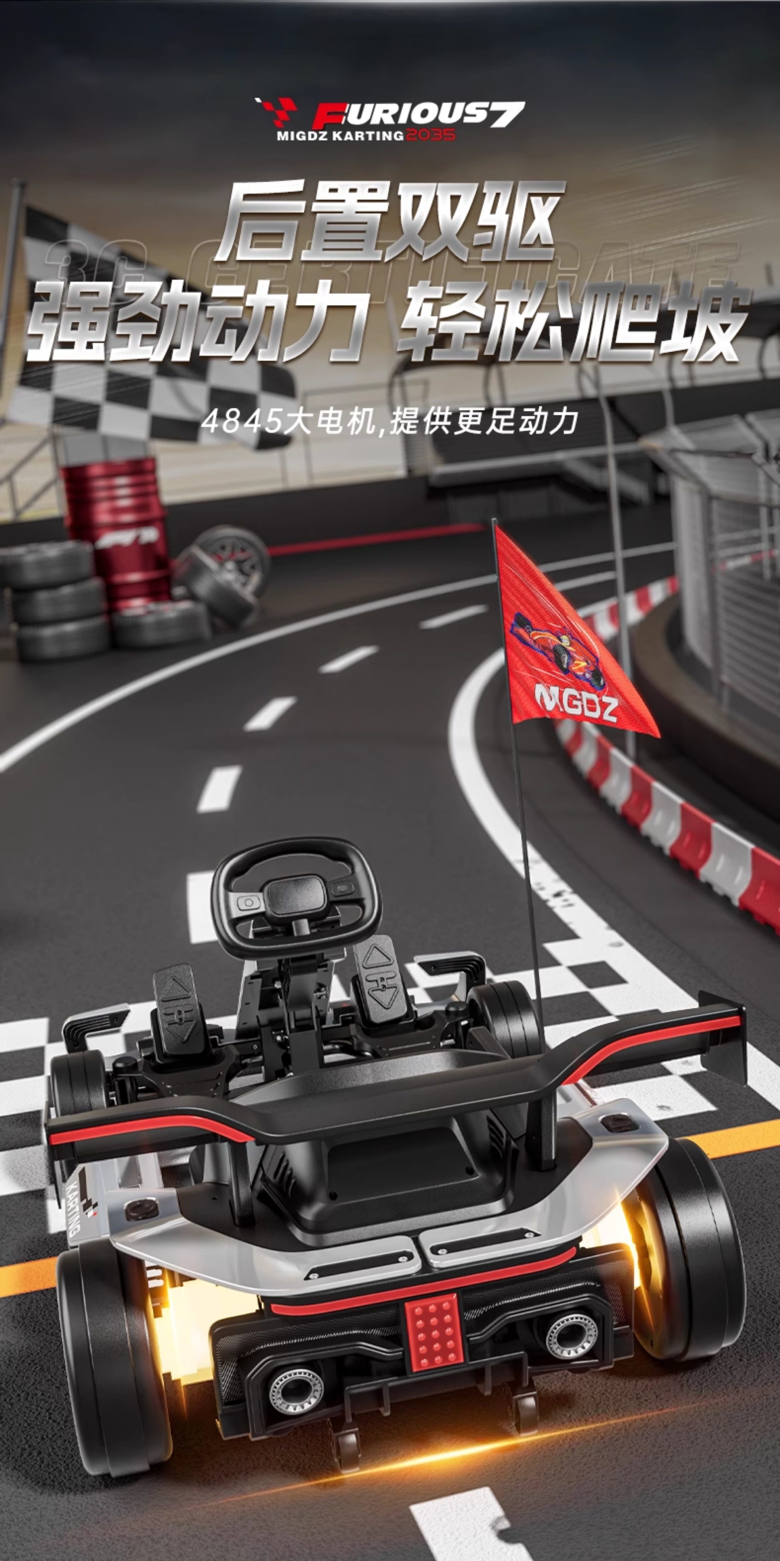 驱动类型 4845静音钢管电机/24V14A电瓶+助力方向盘+蓝牙音乐