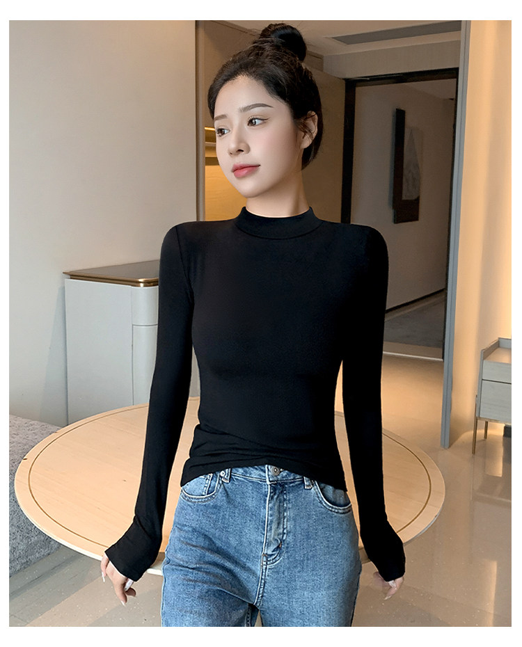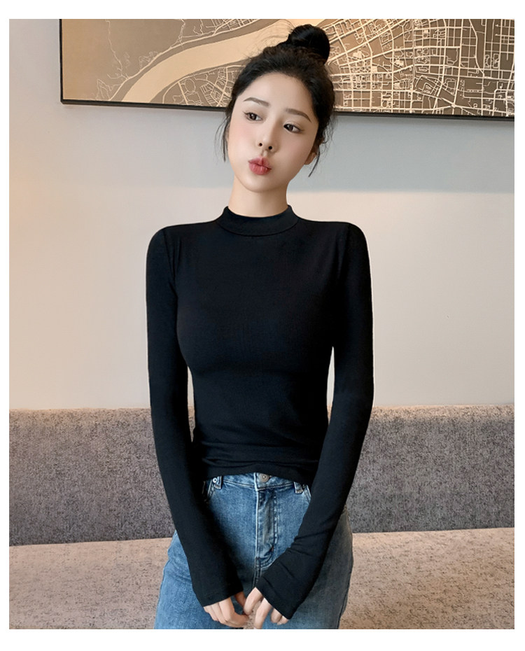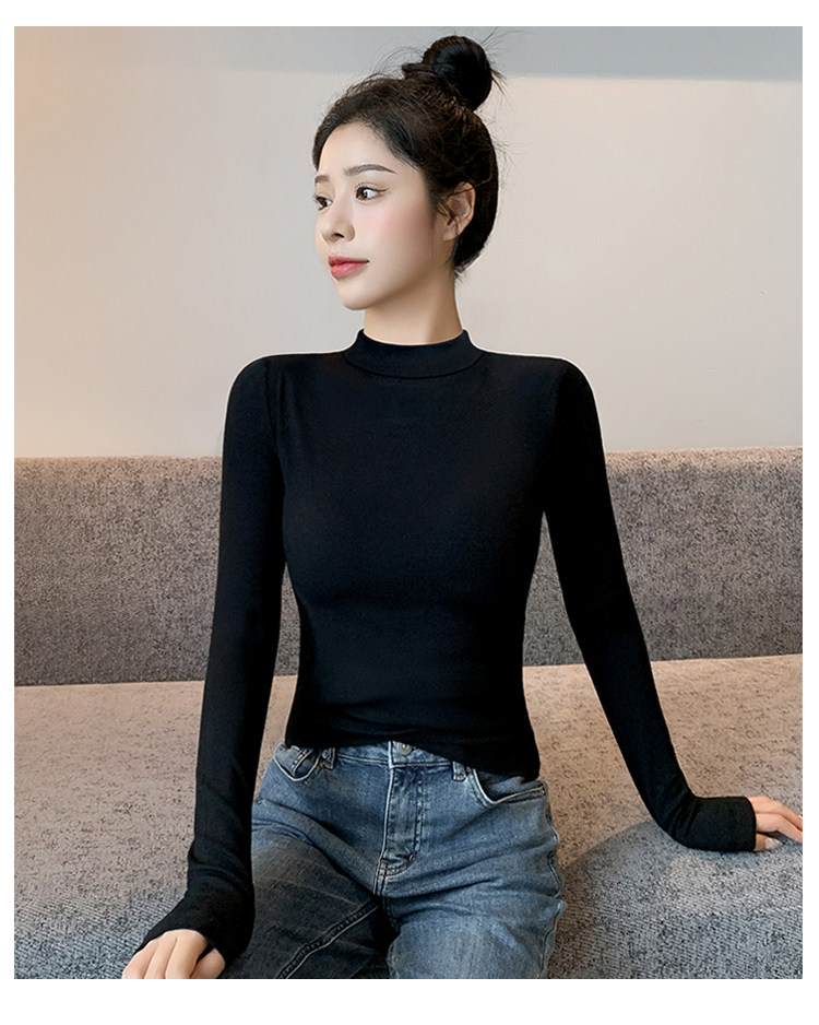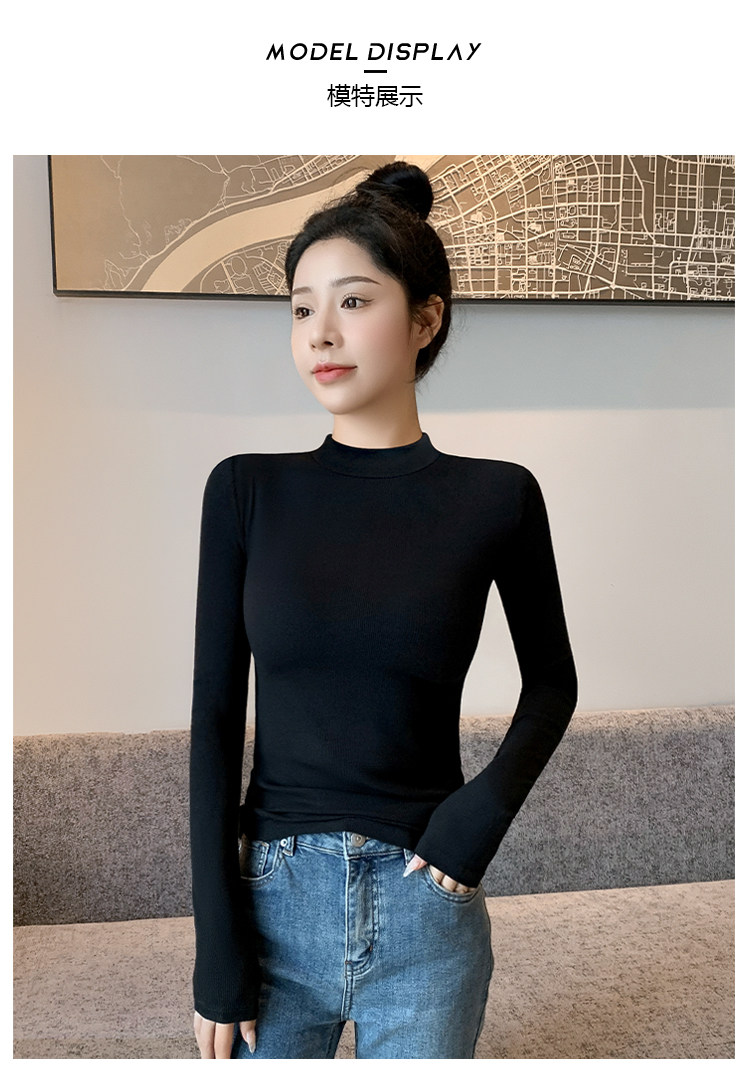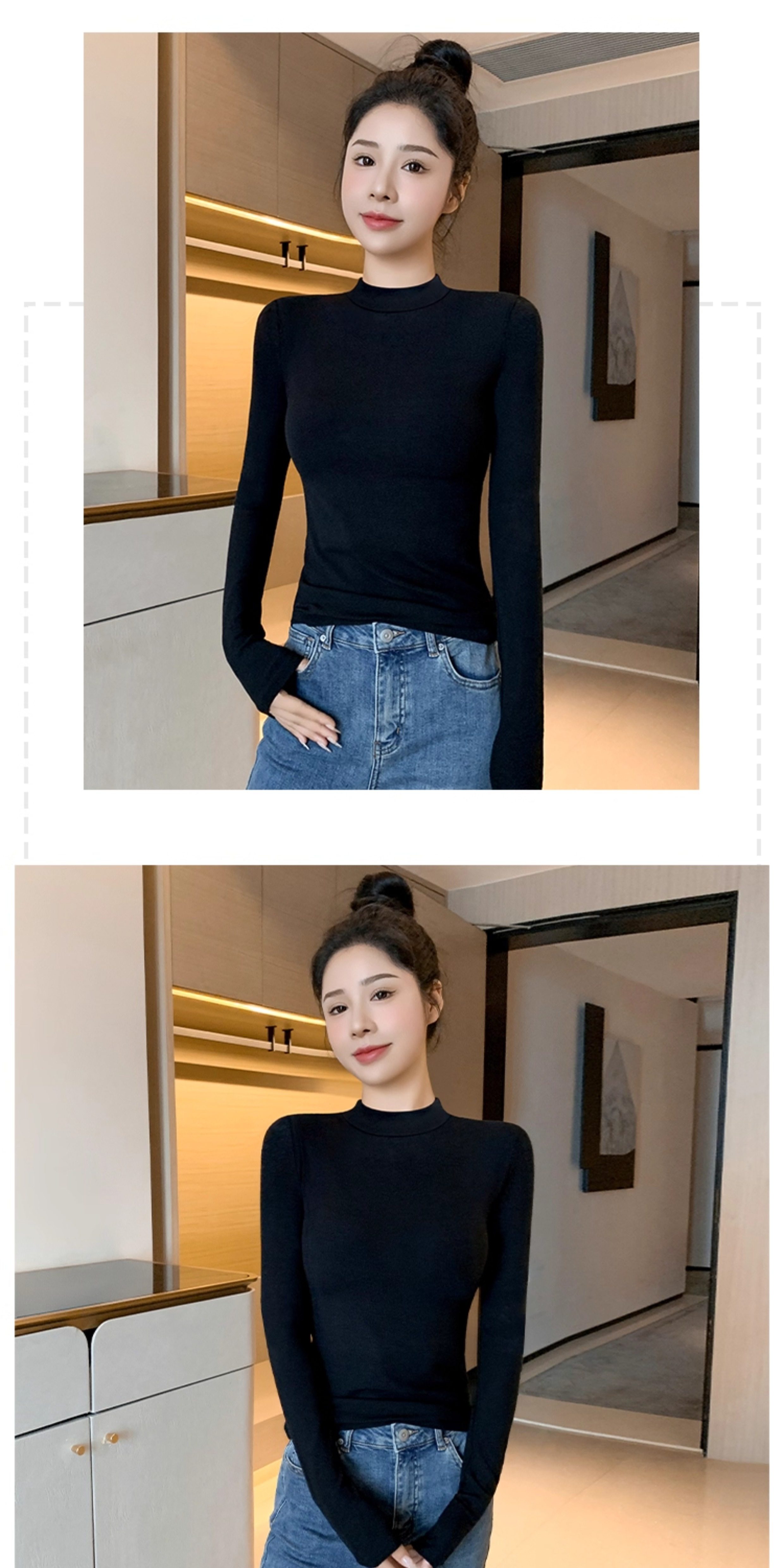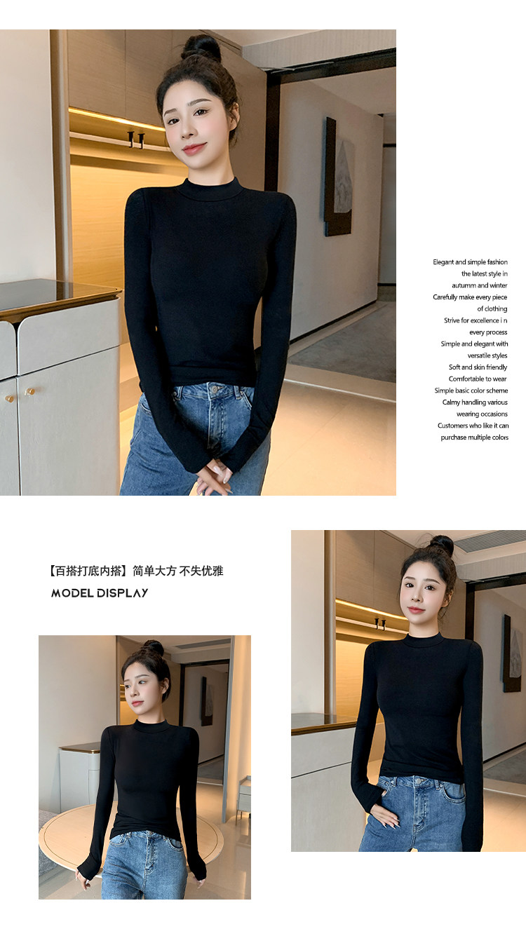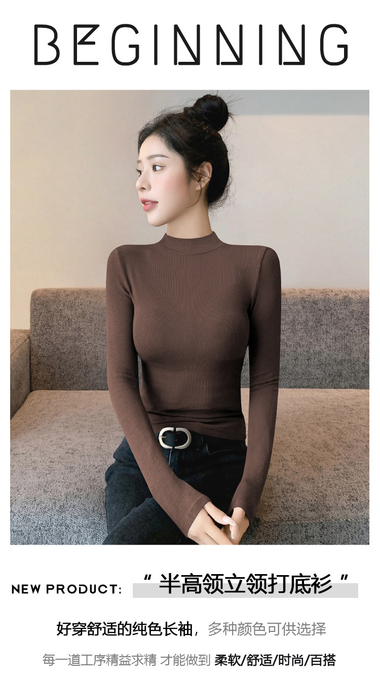 Brown half turtleneck bottoming shirt for women 2025 new spring and autumn knitted bottoming inner mid-collar tight-fitting stand-up collar top