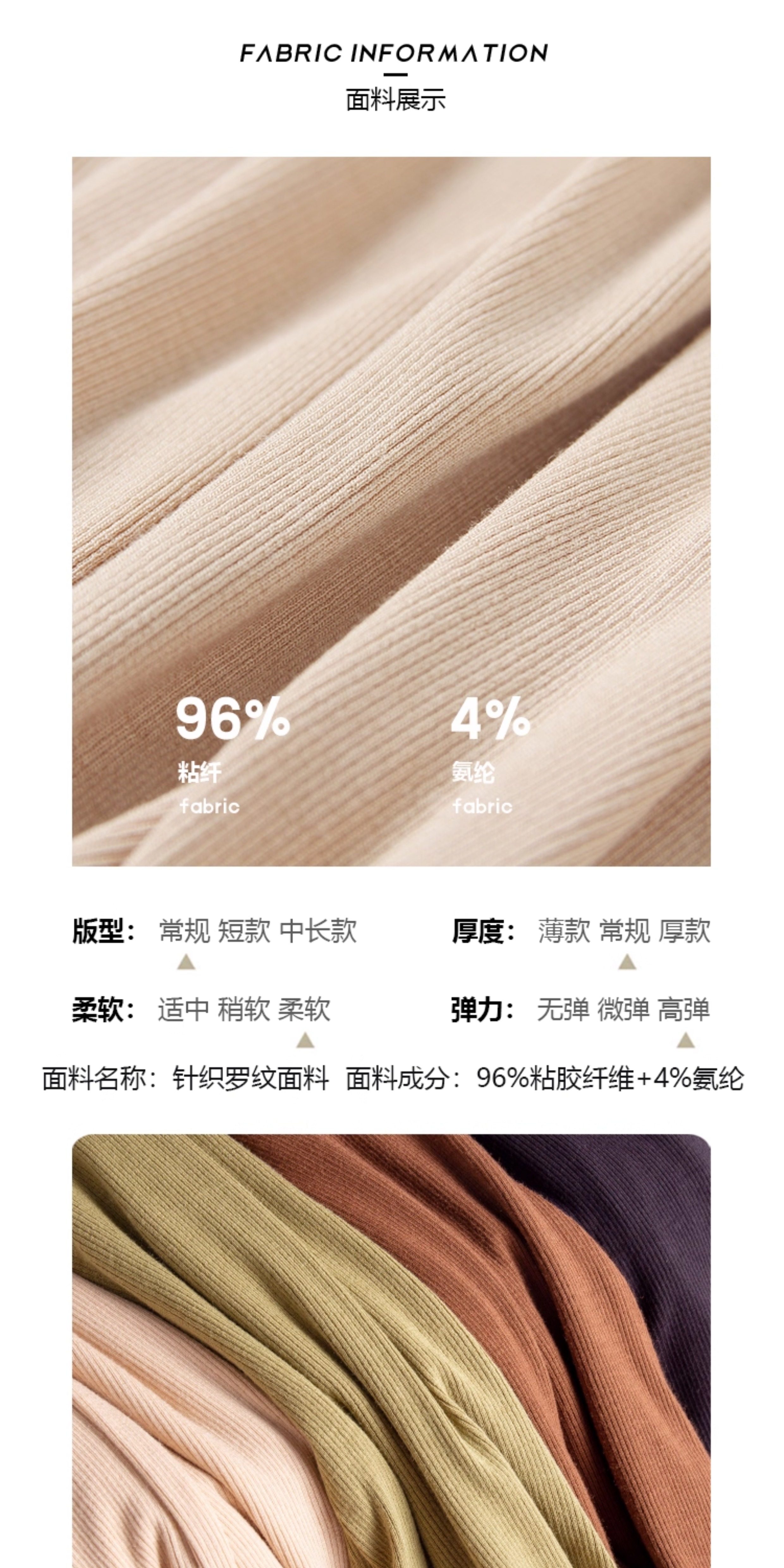 Material ingredients Viscose fiber (viscose fiber) 96.0% polyurethane elastic fiber (spandex) 4.0%