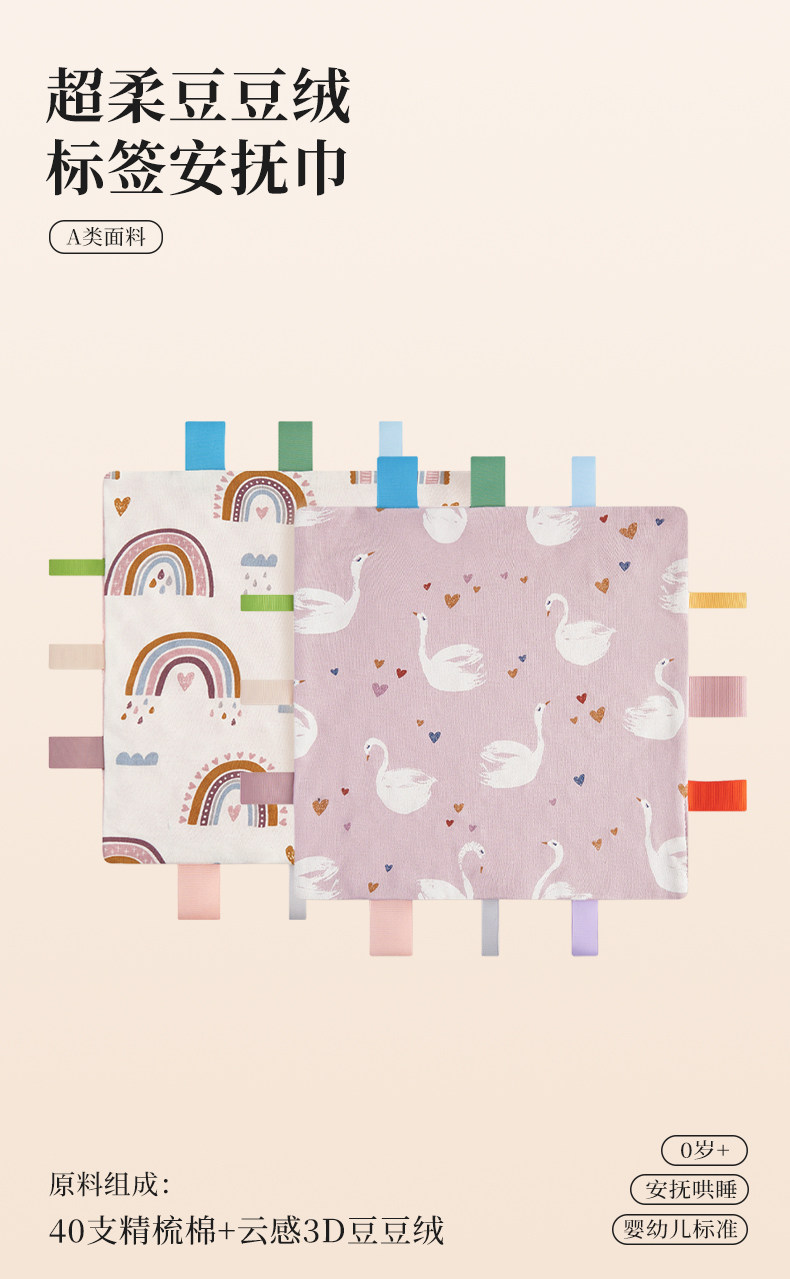 Baby Comfort Blanket Abebe A-Class, Safe for Oral Use and Chewable, Labeled Baby Sleep Soothing Toy