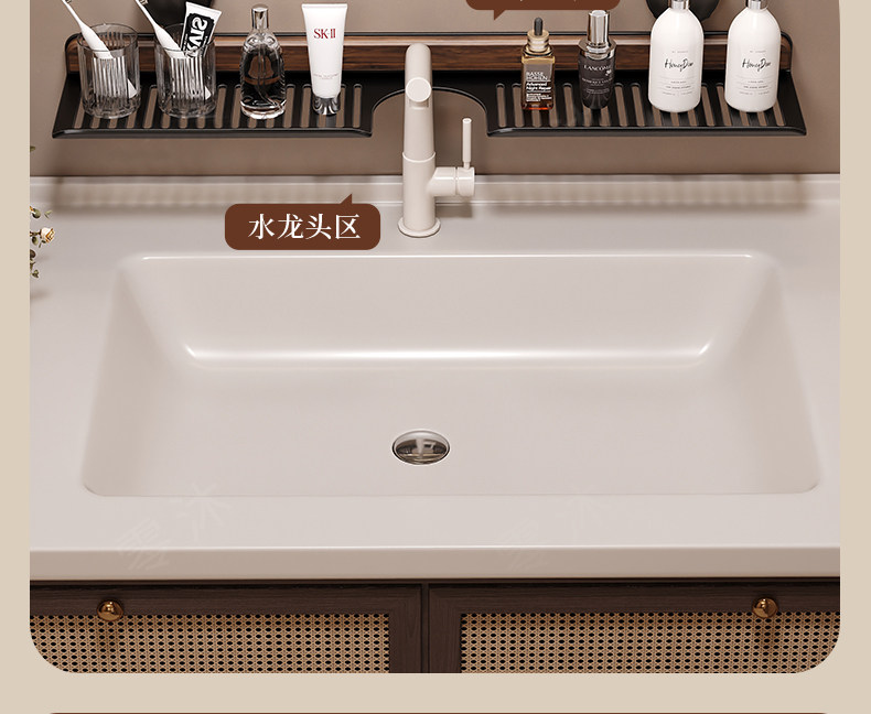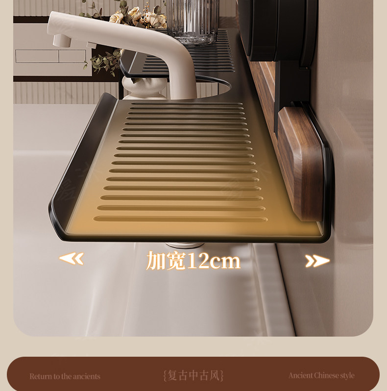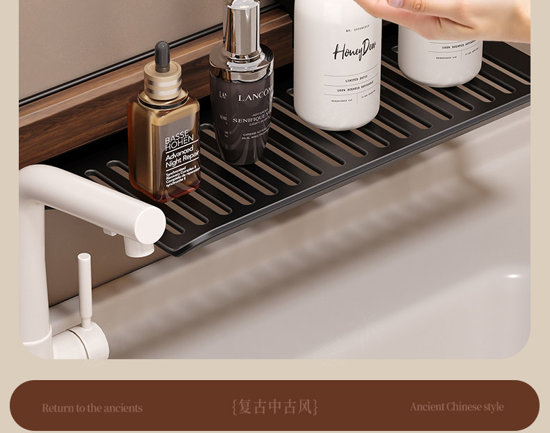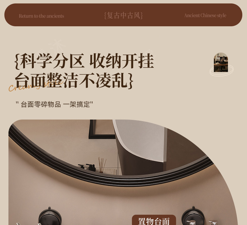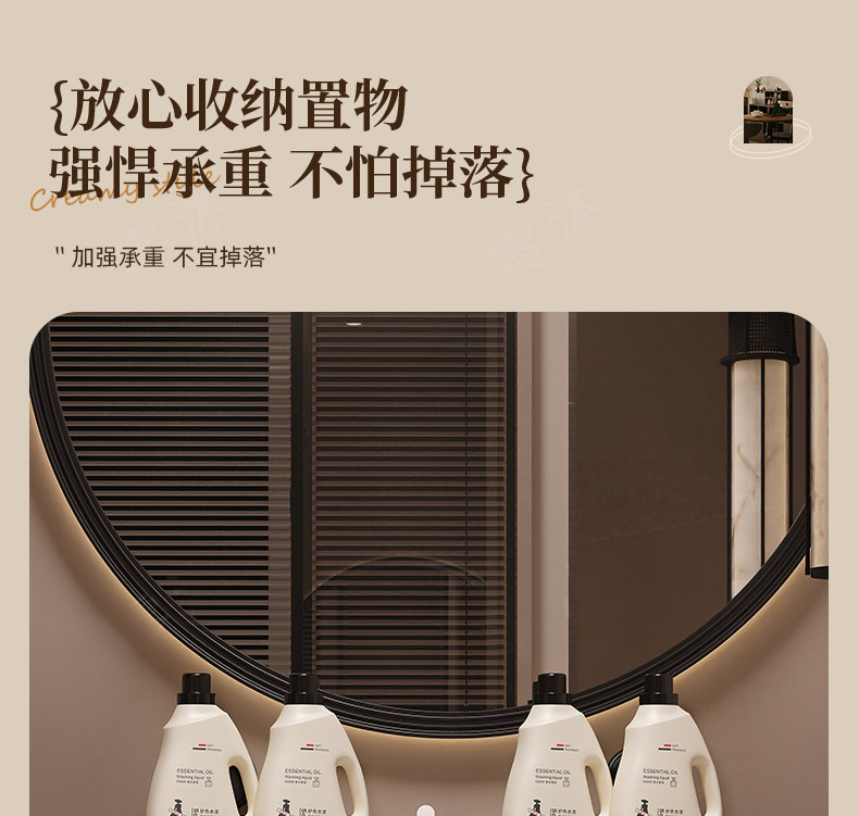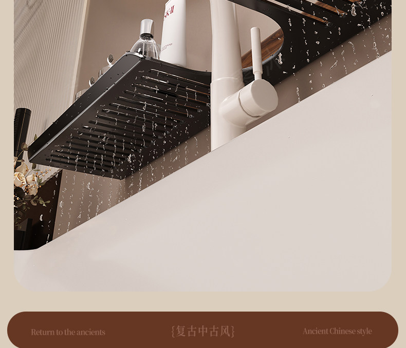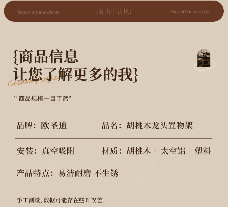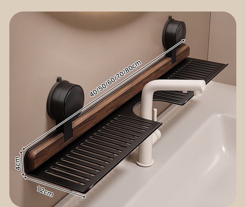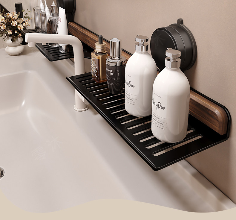 Suction Cup Washbasin Storage Rack Walnut Wood Washstand Bathroom Mirror Front Faucet Bathroom Storage Rack No Drilling Required