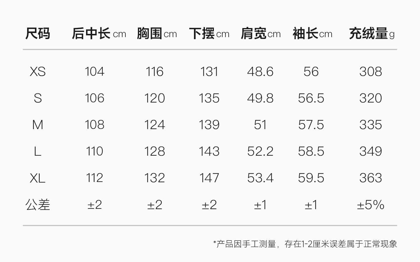 Down Filling Amount 300g and Above