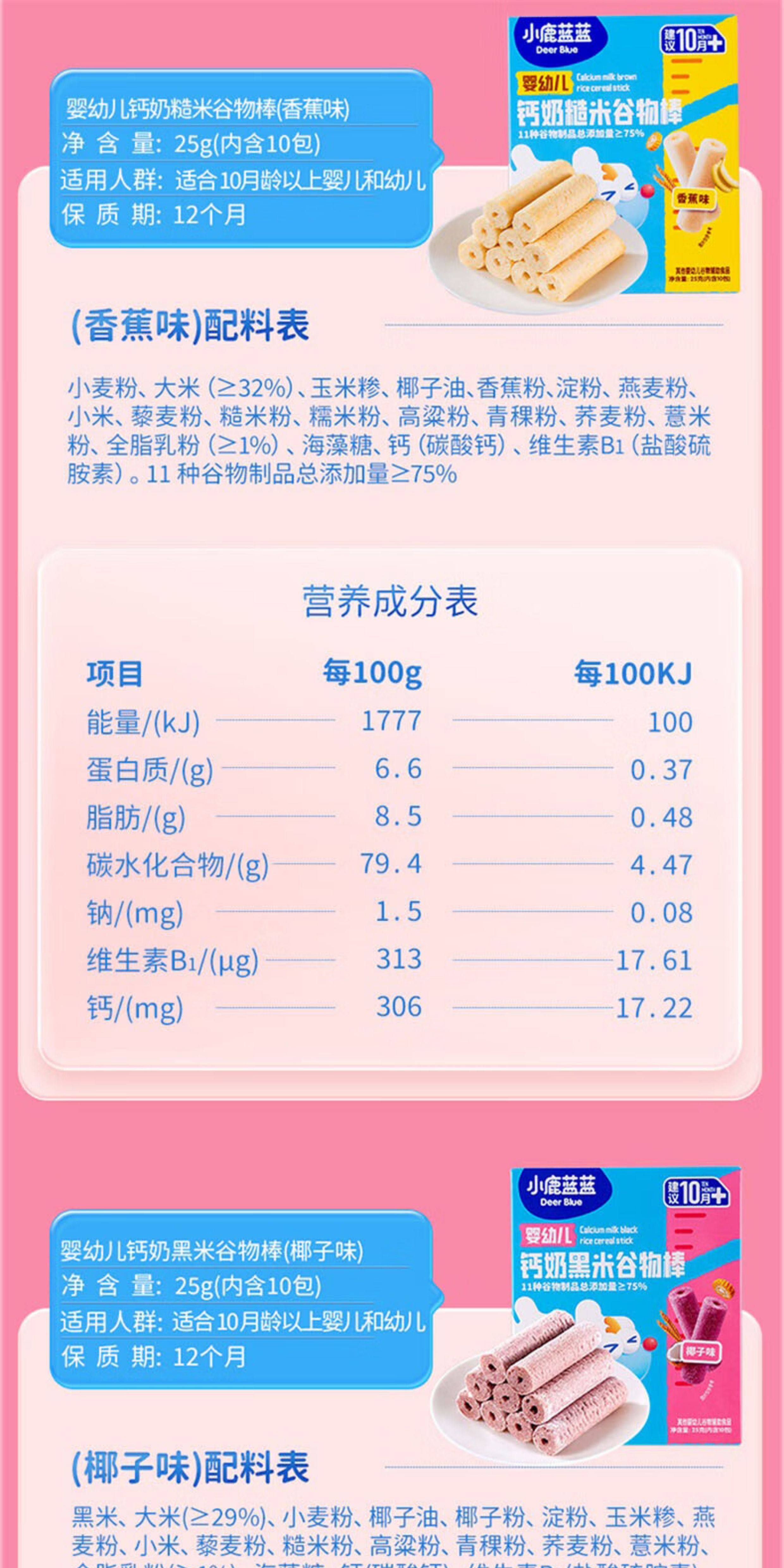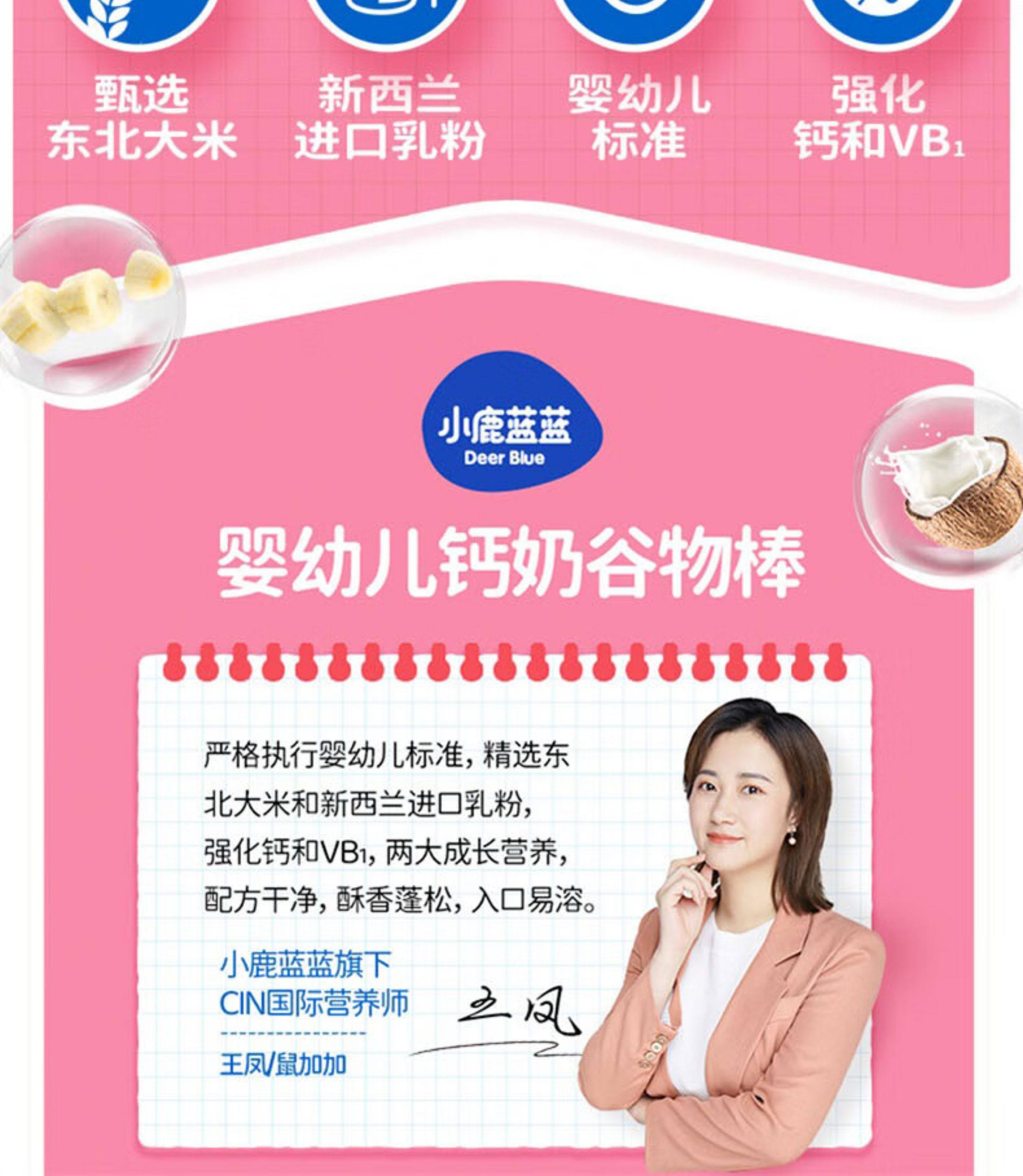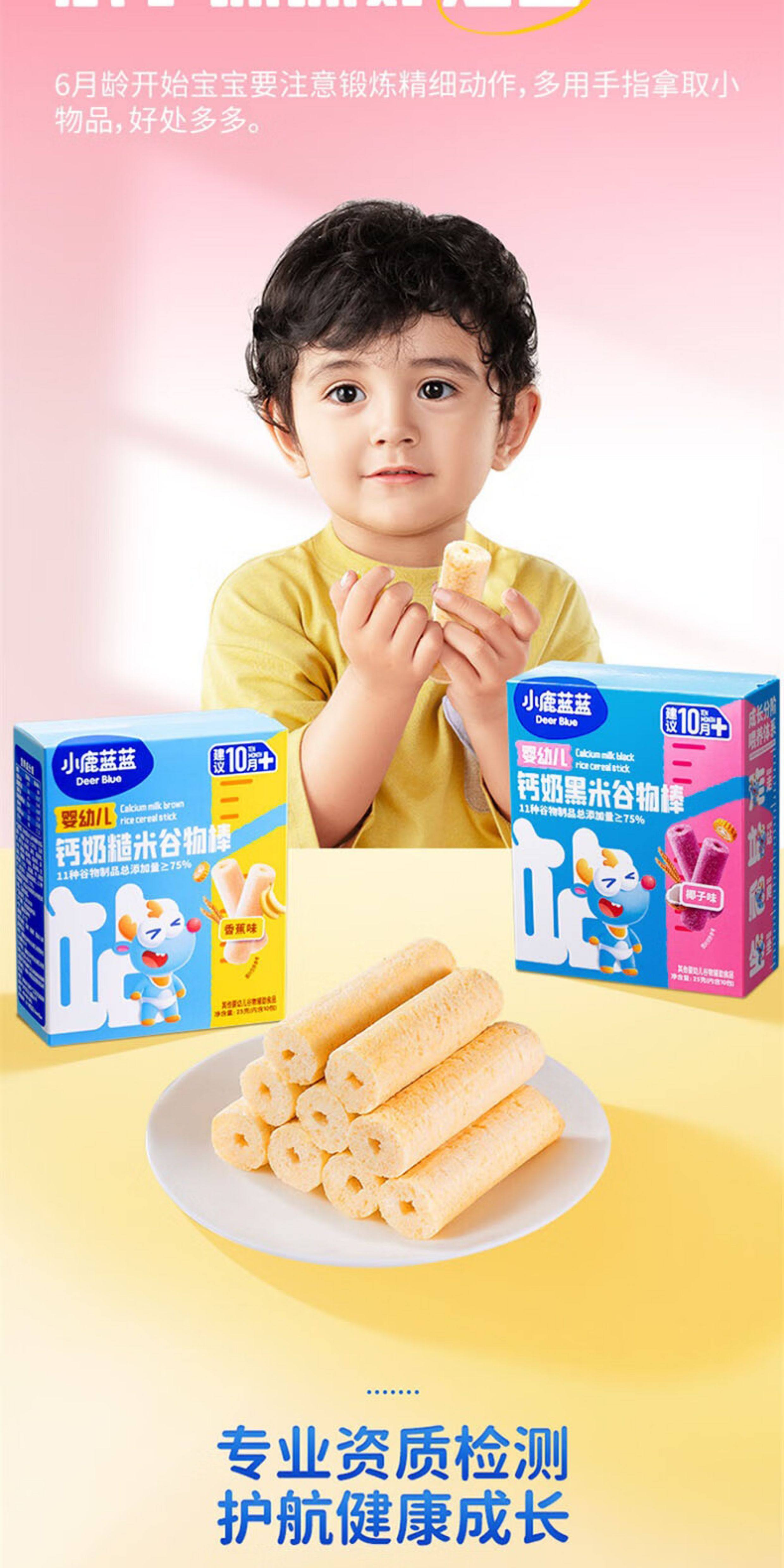 小鹿蓝蓝钙奶谷物棒宝宝零食磨牙米果棒儿童饼干婴儿无添加盐辅食