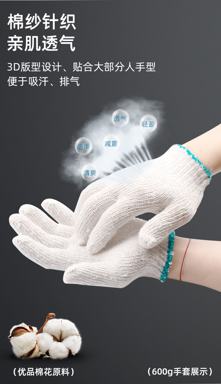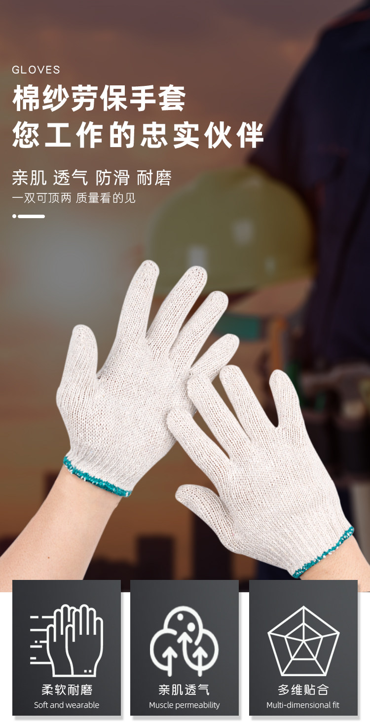 Хлопчатобумажные перчатки для защиты рук, утолщенные, противоскользящие, износостойкие, с нитяным плетением, для мужчин, работающих на строительных площадках.