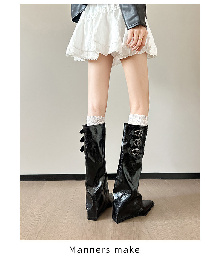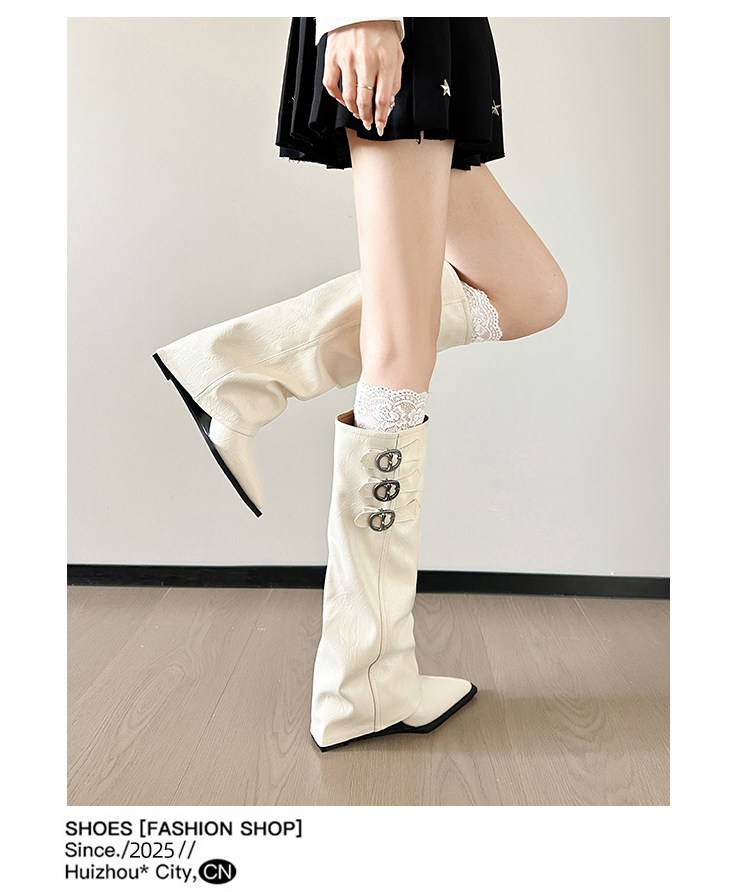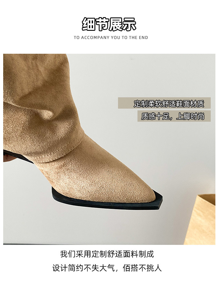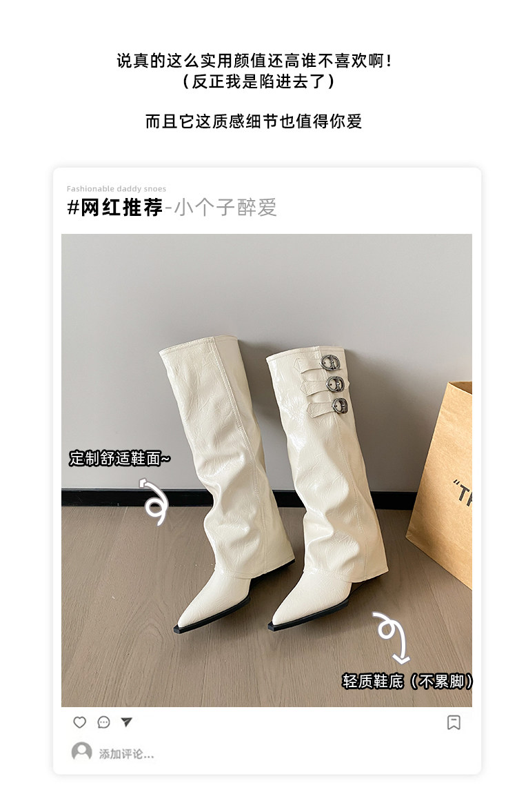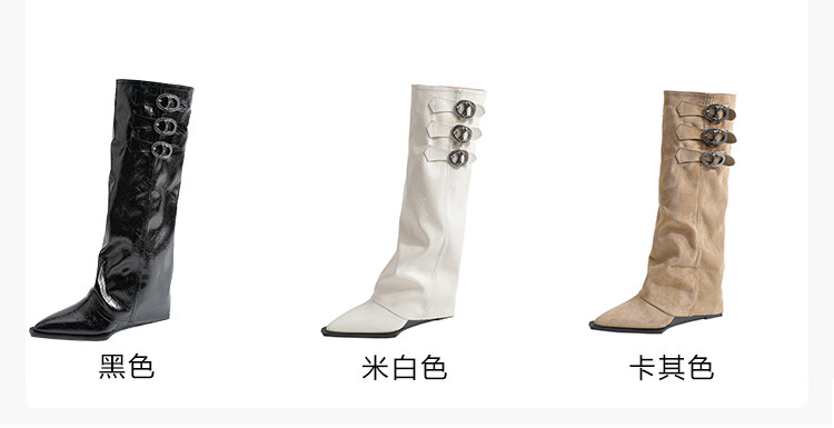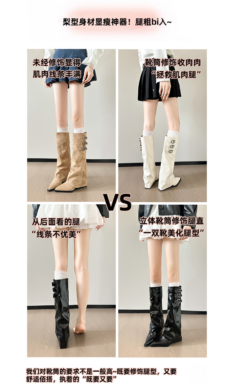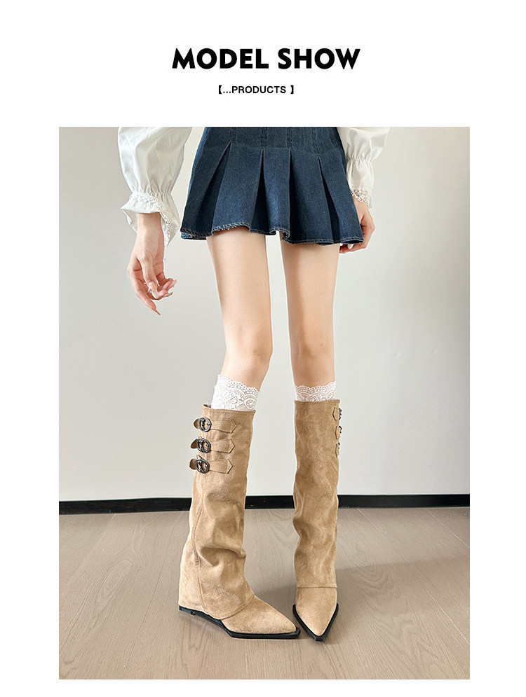 尖头内增高裤管靴坡跟骑士靴女2025新款爆款大筒围长筒靴粗腿加宽