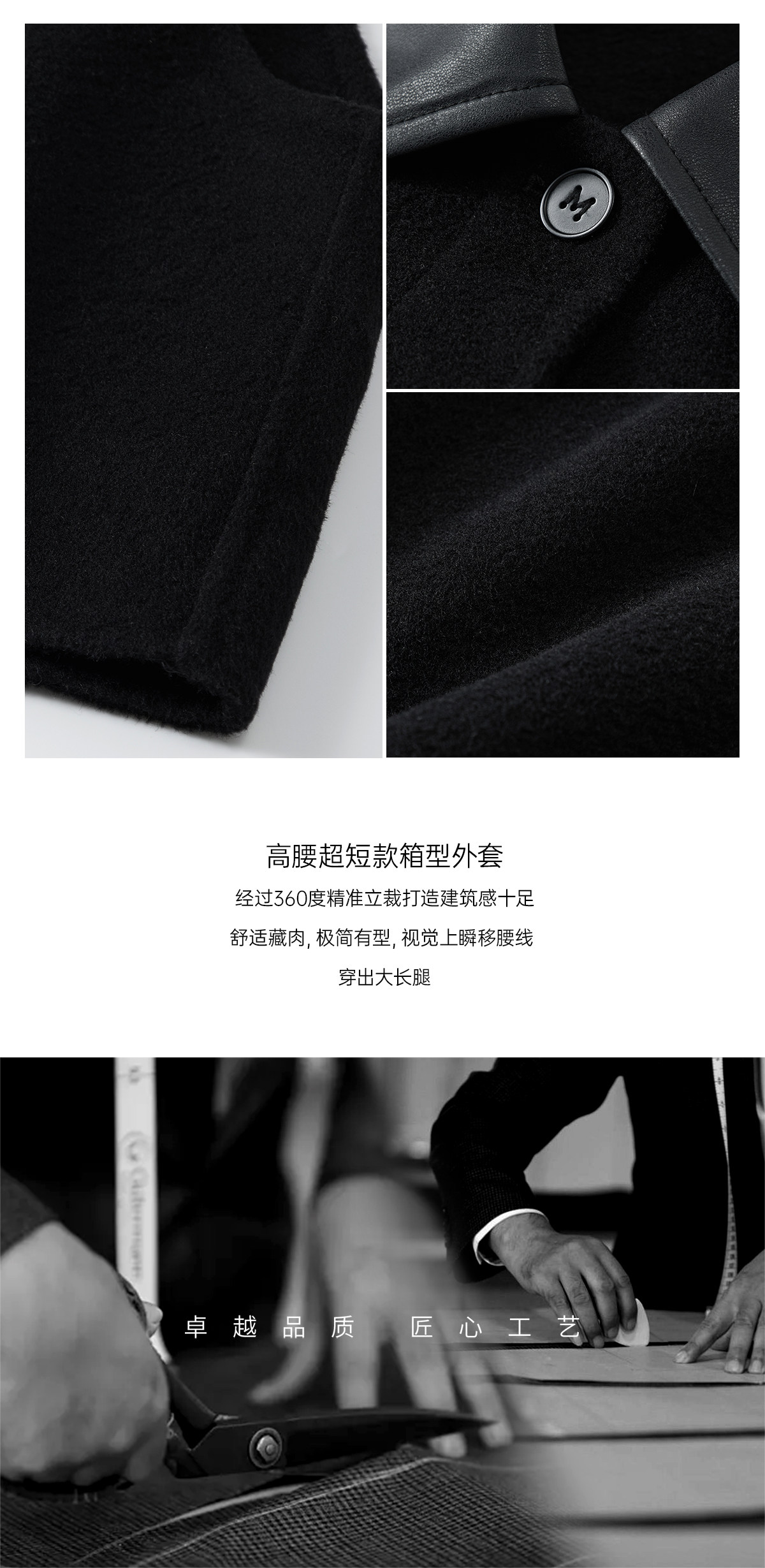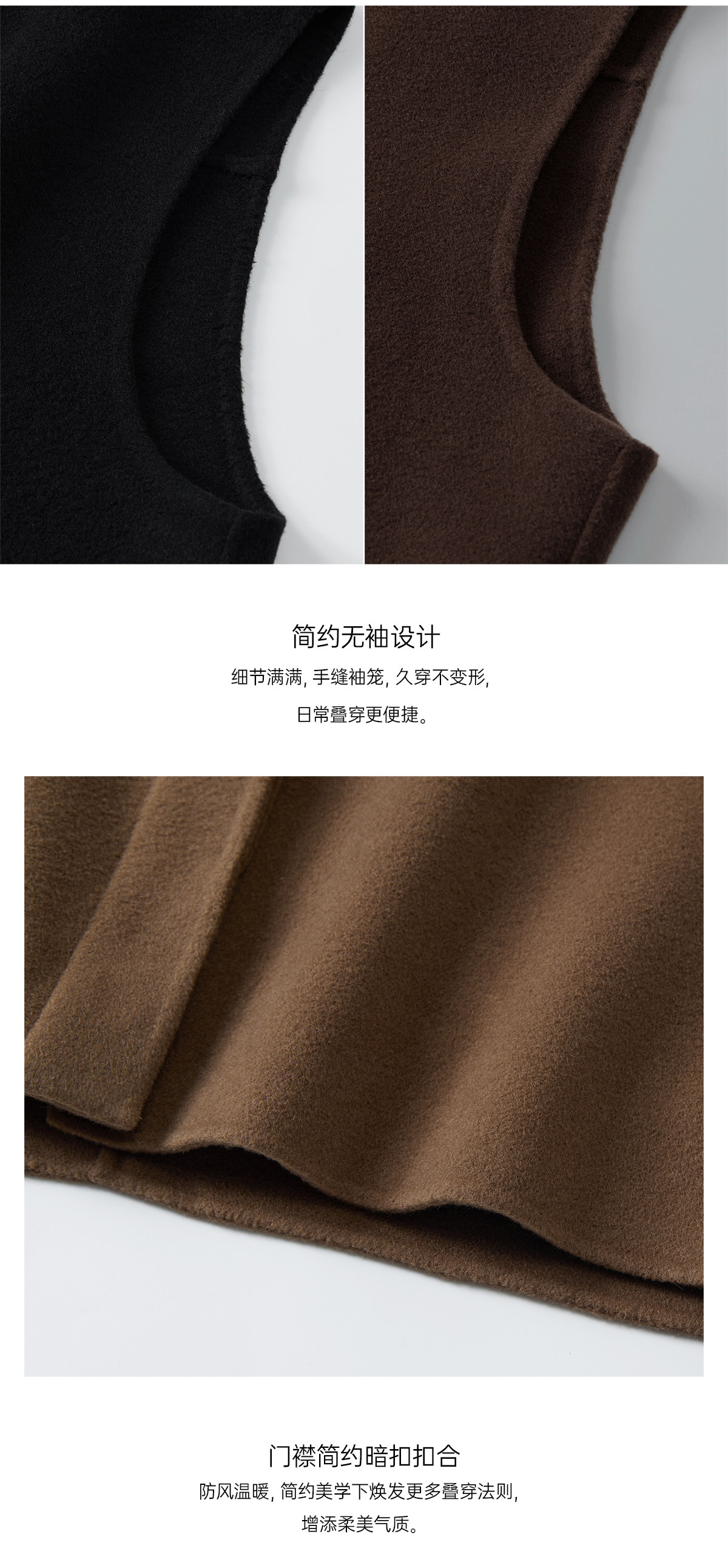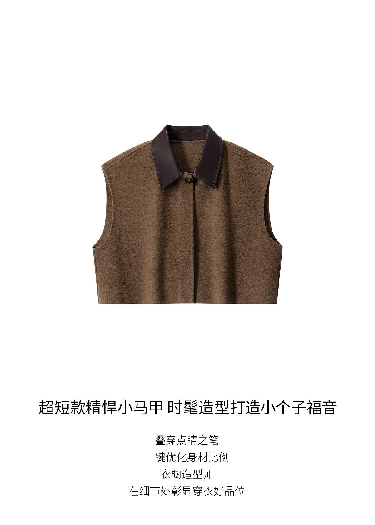 [Raphael]Autumn and Winter Wool Lapel Leather Simple Light Luxury Classic Women's Simple Warm Woolen Vest