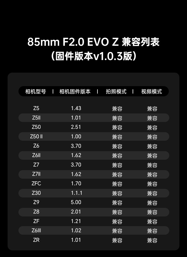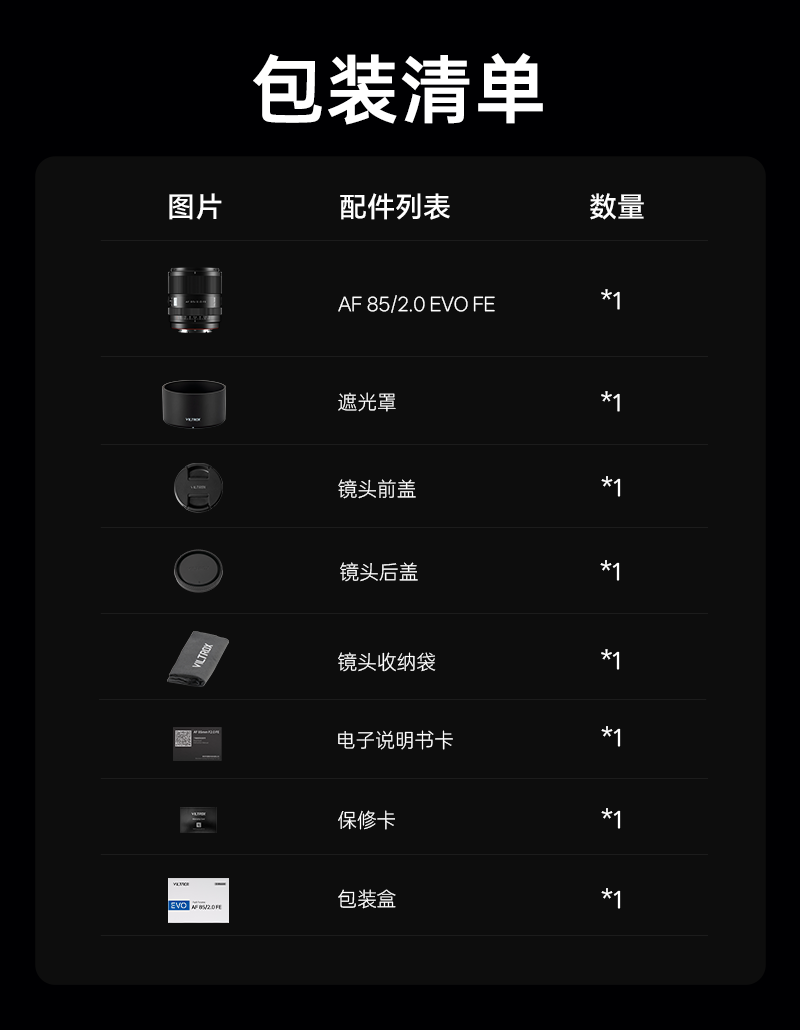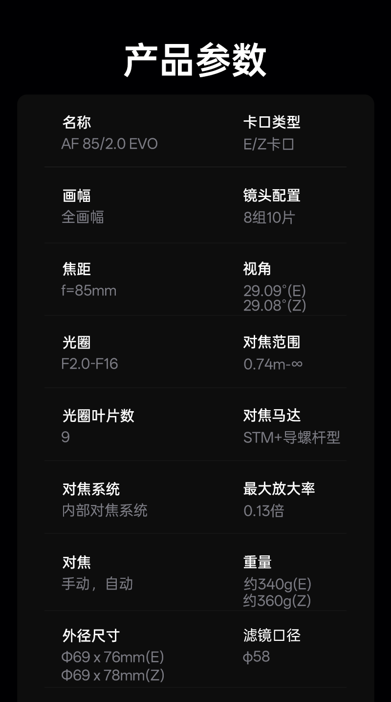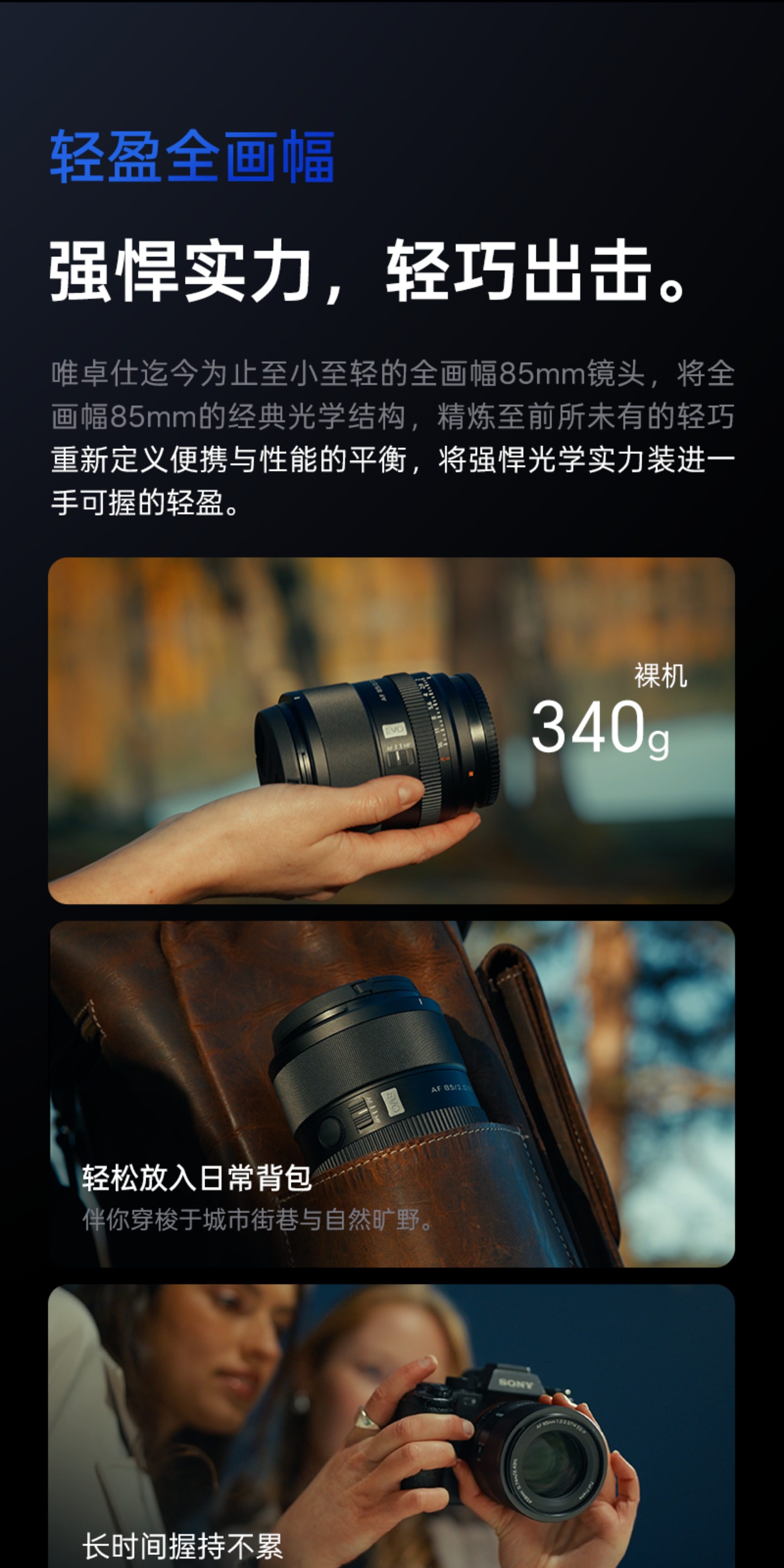 唯卓仕AF 85mm F2.0 EVO 镜头FE/Z微单相机全画幅自动对焦大光圈