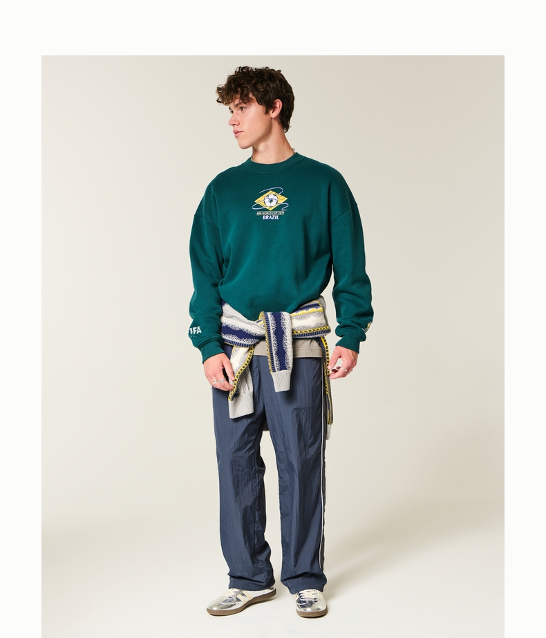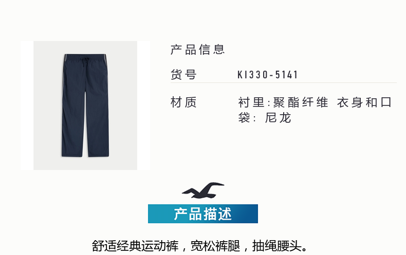 Hollister25 Autumn and Winter New Baggy Style Contrasting Color Loose Straight Sports Casual Pants Men's Clothing 330-5141