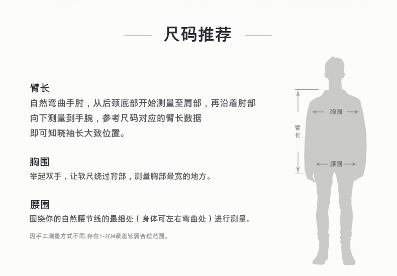 China (cm) 160-165/84-86 165-170 / 88-90 167-172 / 92-96 168-173 / 98-102 170-176 / 106-110